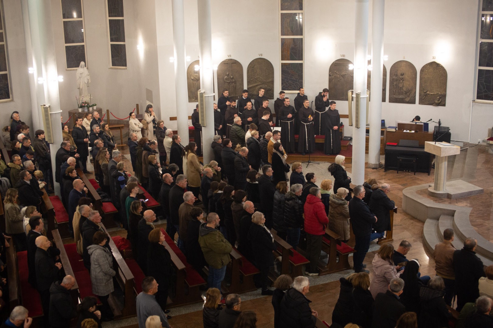 80. obljetnicu ubojstva naše braće franjevaca obilježili smo ovu nedjelju, 9. veljače večernjom svetom misom u našoj samostanskoj crkvi Bezgrješnog začeća BDM. Nakon molitve krunice, bogoslovi su pročitali imena ubijene braće i mjesta njihovog stradanja, prenosi portal Fra3.net.