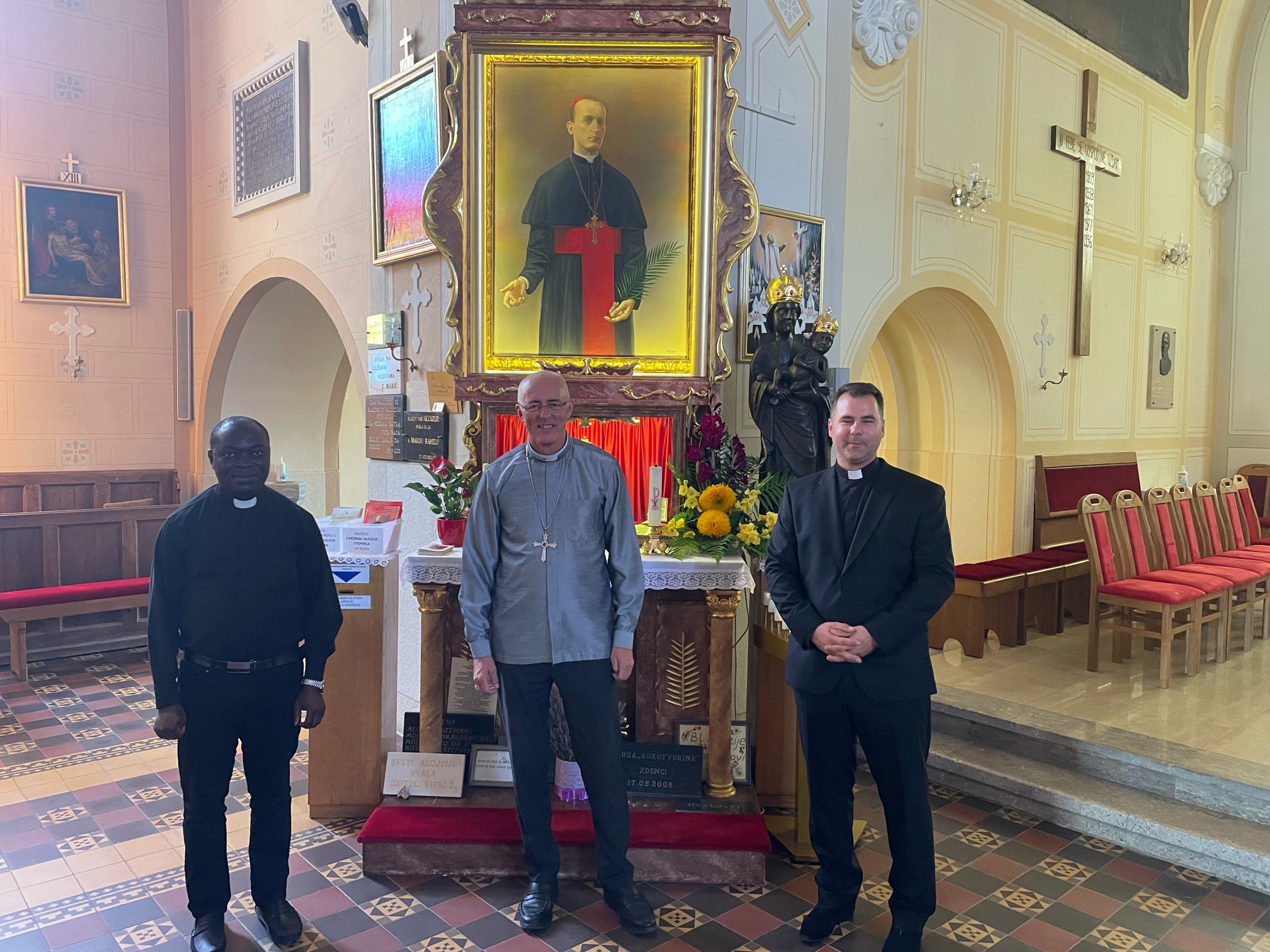 Mons. Giorgio Linqua, apostolski nuncij u RH zajedno s tajnikom apostolske nuncijature u Zagrebu, vlč. Alfredom Rayan D’Souzom te sa svećenikom vlč. Vital-om Otchi-jem koji se nalazi na praksi u Apostolskoj Nuncijaturi u Zagrebu, a rodom iz Obale Bjelokosti posjetili su u subotu, 21. kolovoza 2021. godine kao hodočasnici Nacionalno svetište svetog Josipa, te župe Krašić, Oštrc i Gornje Prekrižje.