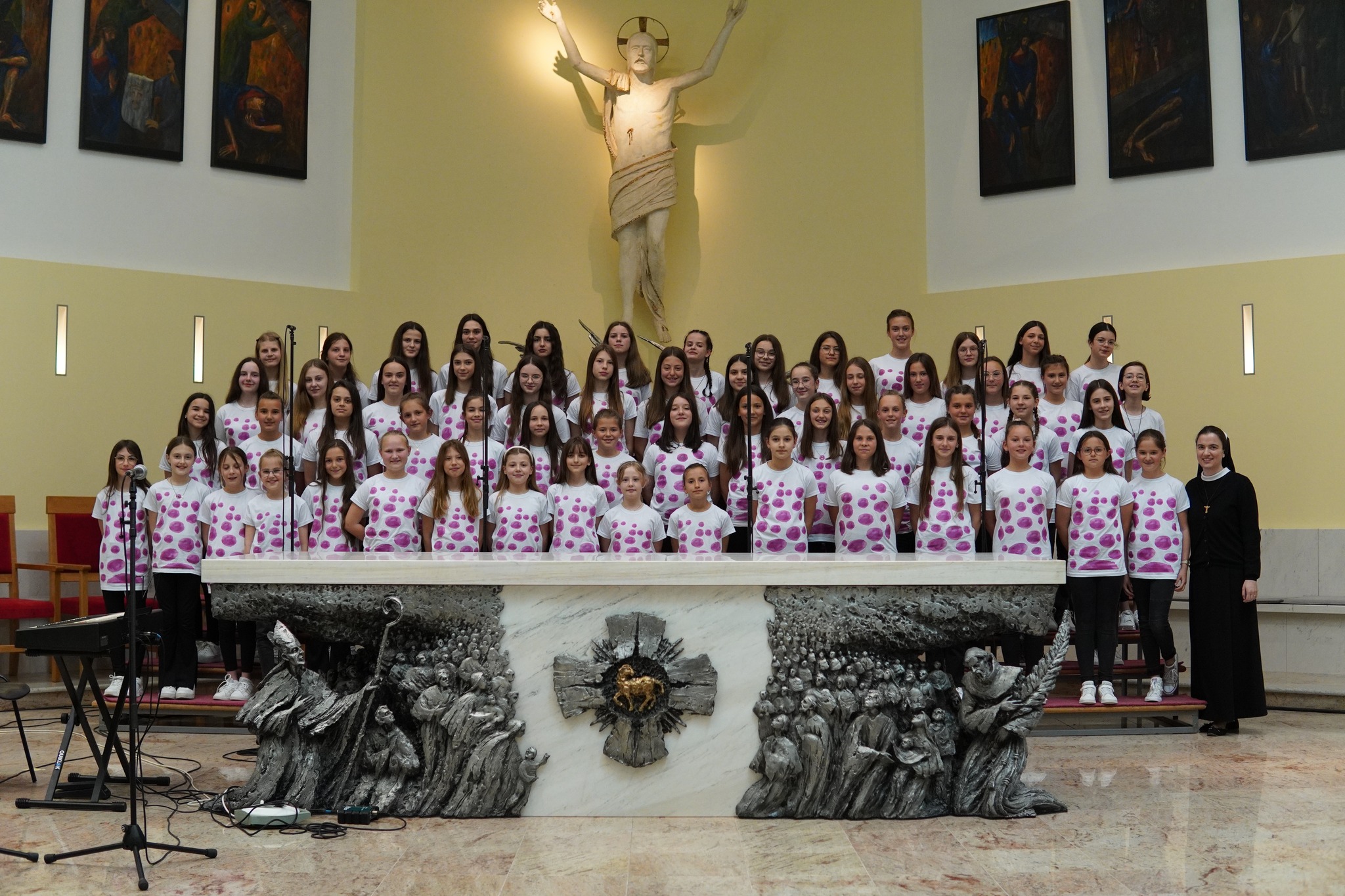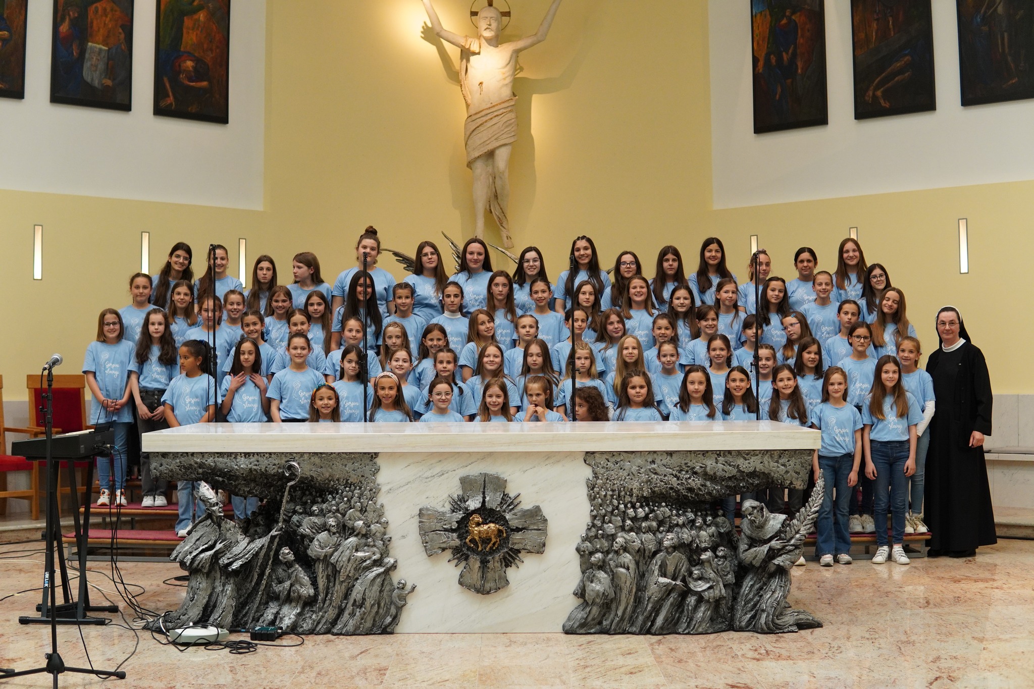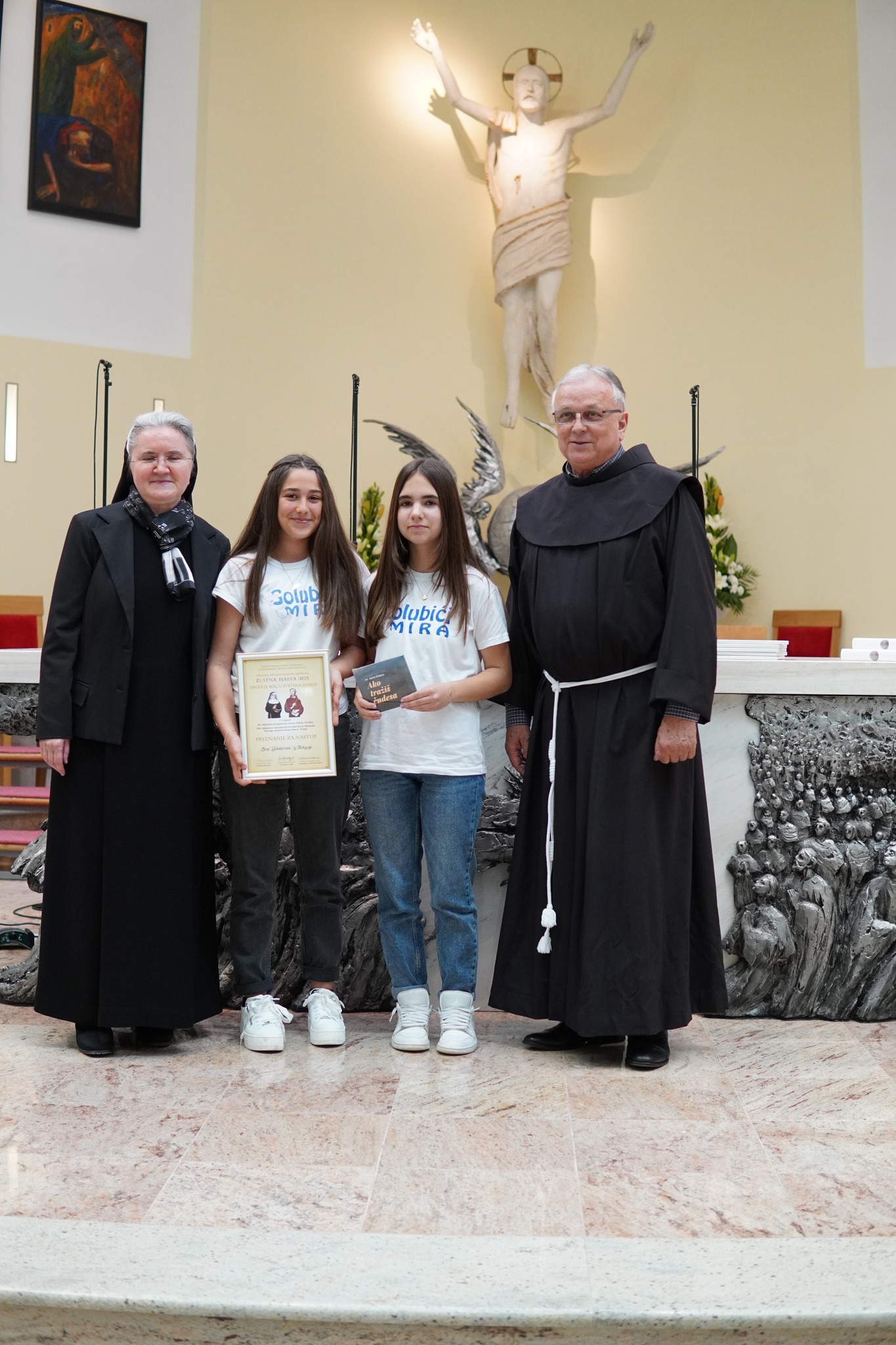 S pjesmom „Mučeniče dragi“, i „Kyrie Eleison“, koju su izvukli iz košarice, nastupili su i članovi dječjeg župnog zbora Golubići mira iz Međugorja. Zbor Golubići mira, koji tijekom školske godine animira misno slavlje nedjeljom u 9 i 30, vodi sestra Irena Azinović, nova pokrajinska povjerenica Zlatne harfe za Hercegovinu. Pjesmu „Mučeniče dragi“, skladao je međugorski župnik fra Zvonimir Pavičić, koji je i sam kao dijete sudjelovao na Zlatnim harfama te je istaknuo kako su ove godine svi zborovi bili jako dobro uvježbani i kako ovi susreti izgrađuju čovjeka, izgrađuju djecu.