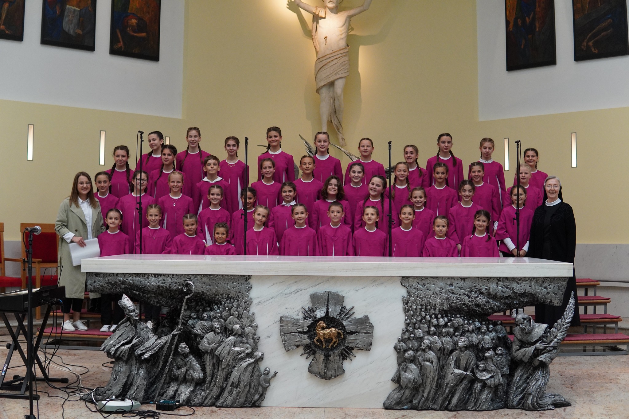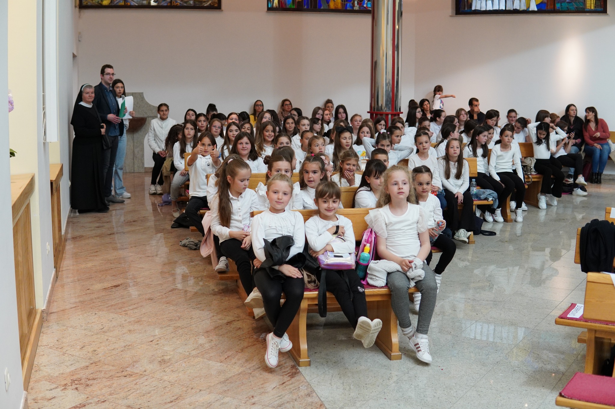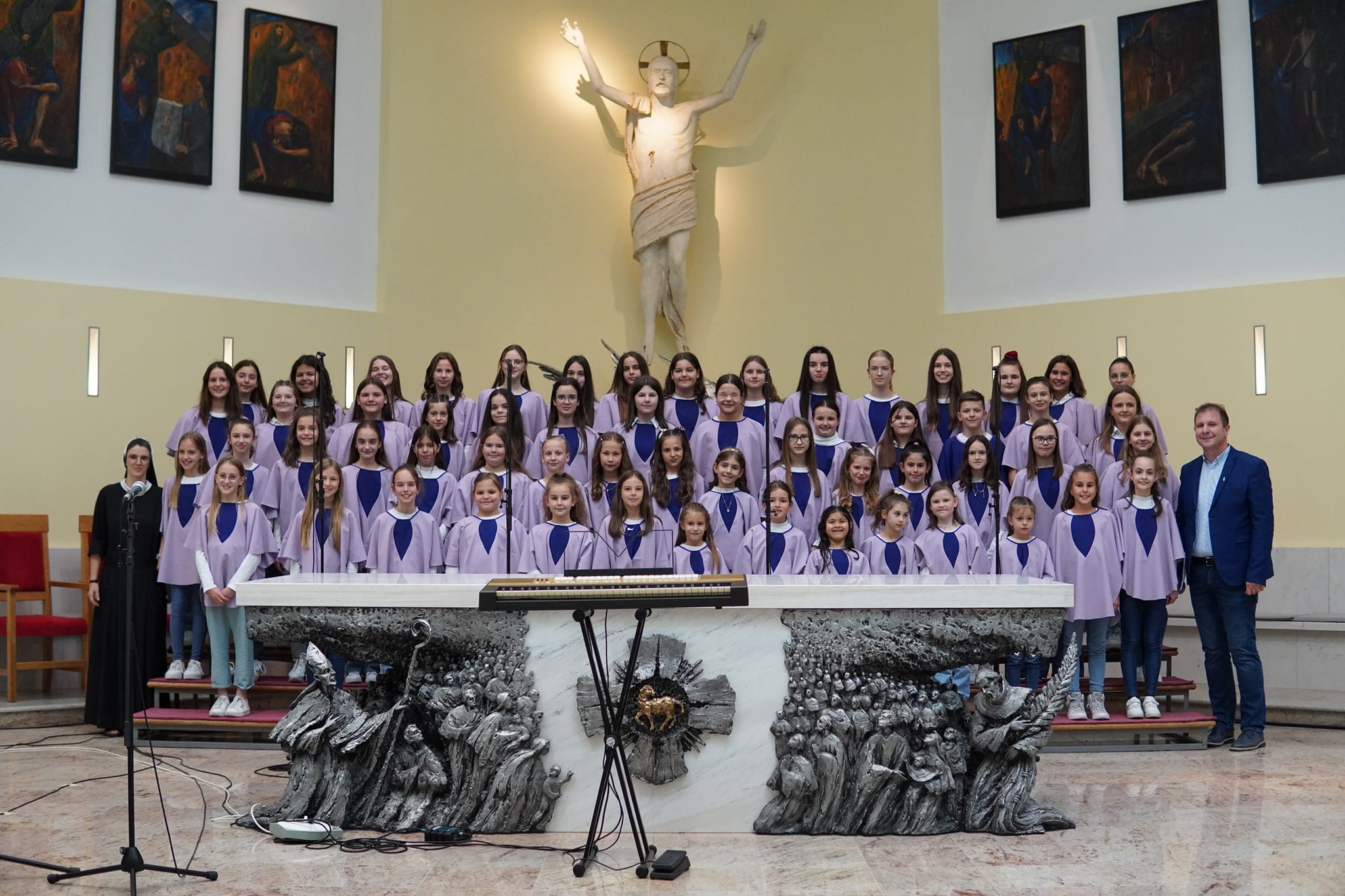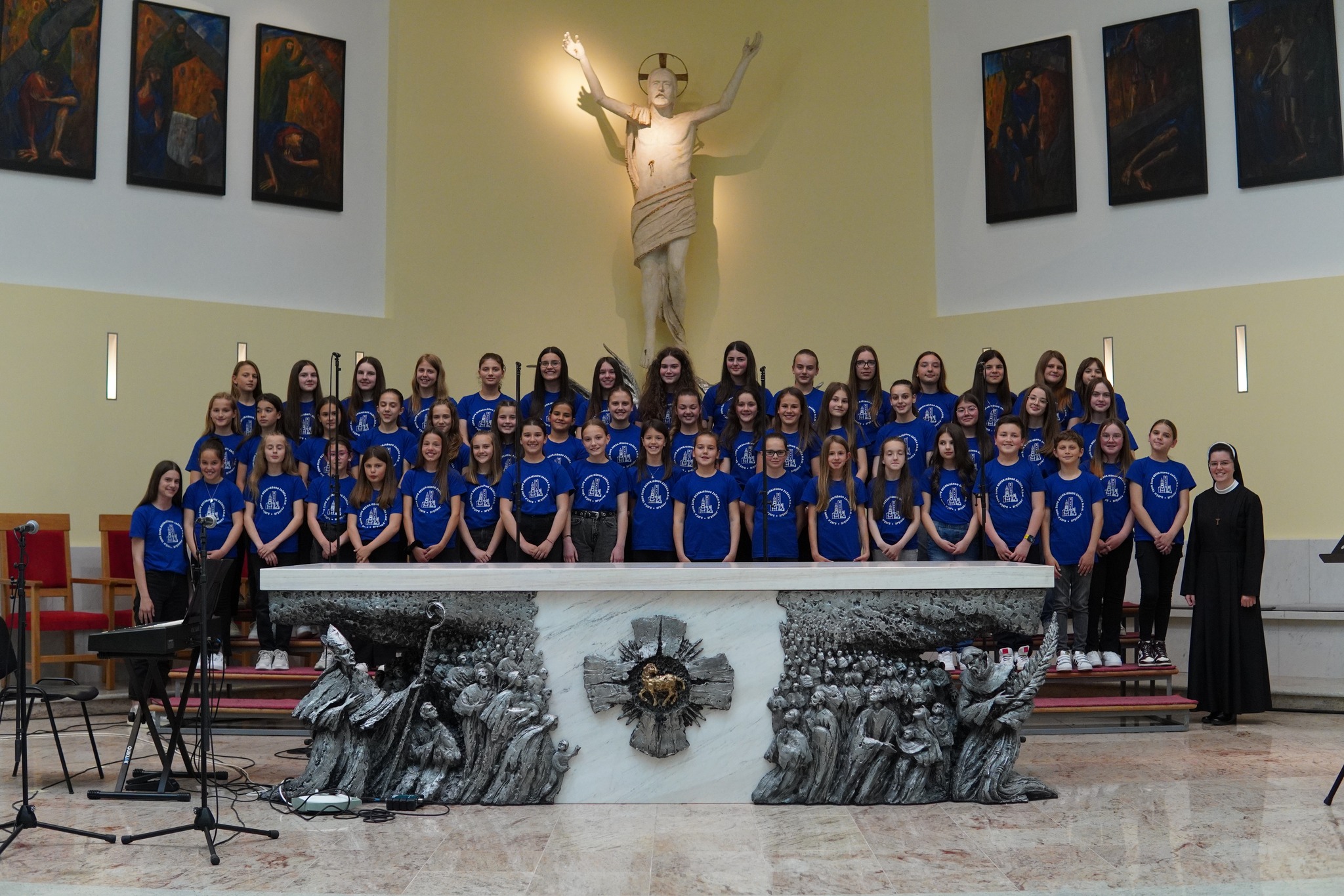 S pjesmom „Mučeniče dragi“, i „Kyrie Eleison“, koju su izvukli iz košarice, nastupili su i članovi dječjeg župnog zbora Golubići mira iz Međugorja. Zbor Golubići mira, koji tijekom školske godine animira misno slavlje nedjeljom u 9 i 30, vodi sestra Irena Azinović, nova pokrajinska povjerenica Zlatne harfe za Hercegovinu. Pjesmu „Mučeniče dragi“, skladao je međugorski župnik fra Zvonimir Pavičić, koji je i sam kao dijete sudjelovao na Zlatnim harfama te je istaknuo kako su ove godine svi zborovi bili jako dobro uvježbani i kako ovi susreti izgrađuju čovjeka, izgrađuju djecu.
