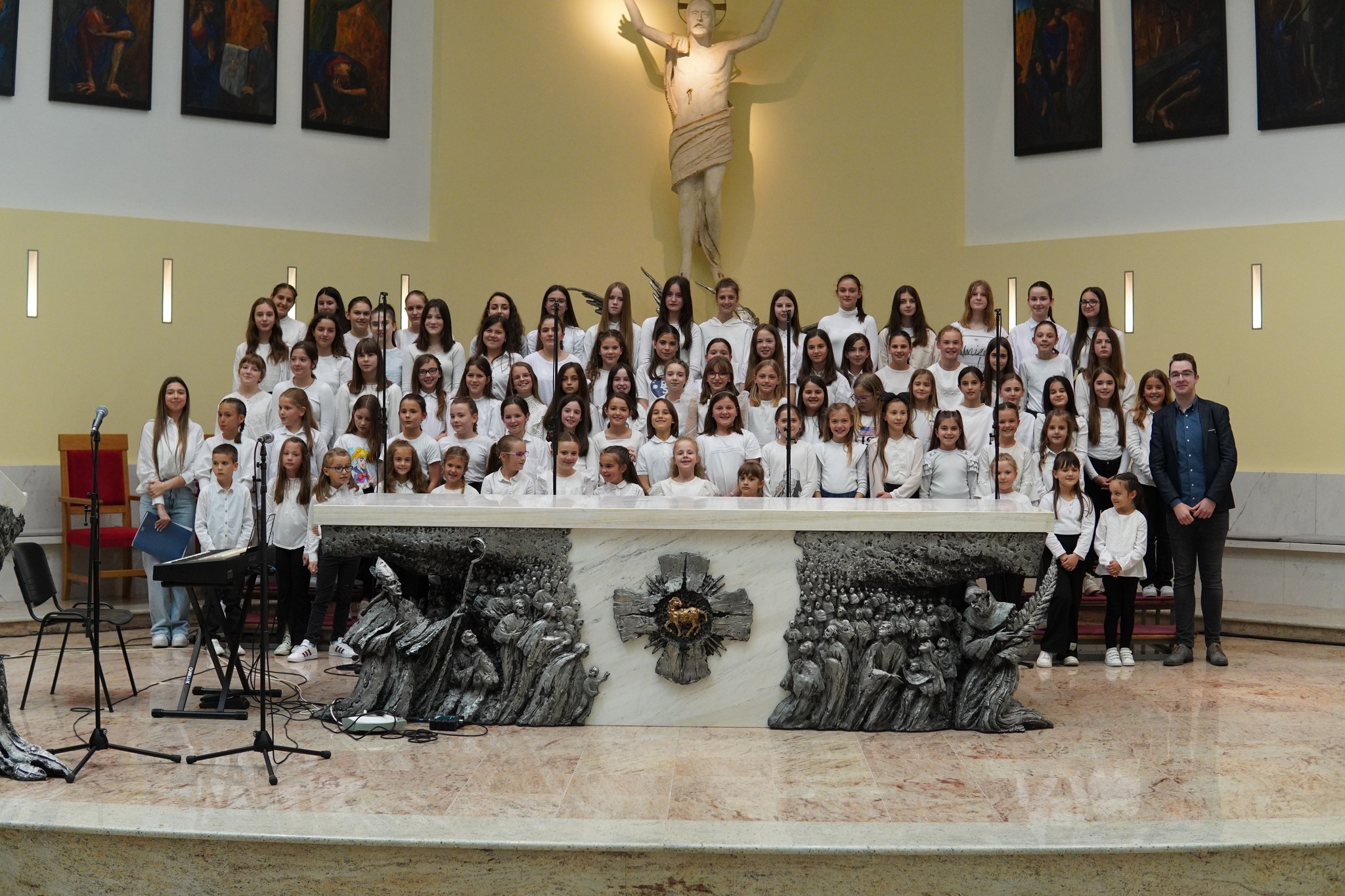 „Mi možda ne vidimo iz naše perspektive, ali ja koji sam bio dijete znam kako su mi se urezali ti događaji, ovi nastupi na Zlatnoj harfi, ta druženja, pripreme… Ne sama Zlatna harfa, nego te pripreme za Zlatnu harfu, učenje novih pjesama, dolazak na probe, učenja drugih glasova, cijeli taj proces, jer Zlatna harfa nije samo jedan dan. Djeca rade više mjeseci, uz sve one pjesme i probe na kojima se pripremaju za nedjeljna slavlja na kojima svi ovi zborovi redovito pjevaju na misi, uspiju naučiti i nove pjesme koje se od njih traže na Zlatnoj harfi. Što se nauči u djetinjstvu, to i ostane i nadam se kako će i ova djeca, koja ovdje sada pjevaju, nastaviti pjevati i kasnije i da će njihov život biti tako lijep i svet da će biti kao nova pjesma Gospodinu“, kazao je međugorski župnik fra Zvonimir Pavičić.