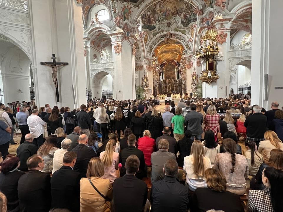 Na kraju svete mise fra Antonio Šakota je zahvalio Presvetom Trojstvu i Gospi, svima nazočnima vjernicima na 56. hodočašću, te biskupu mons. Miji Gorskom, dušobrižnicima u misijama, domaćinima benediktincima, pjevačima, čitačima, ministrantima te svima koji su na bilo koji način pridonijeli u organiziranju i sudjelovanju na 56. hodočašću. Prije završnog misnog blagoslova biskup Mijo je zahvalio fra Antoniu na pozivu. Prenio je vjernicima pozdrave biskupa iz domovine, zahvalio hercegovačkim franjevcima koji djeluju u misijama u Švicarskoj više od pedeset godina, te pozvao na življenje temeljnih vjerskih, uljudbenih i obiteljskih vrijednosti. Istaknuo je koliko je presudno proučavati i poznavati svoju kulturu, jezik i povijest. Potaknuo je na trajno povezivanje naših ljudi u inozemstvu s onima koji su u domovini. Nakon svete mise vjernici i fratri su ostali u ugodnom razgovoru ispred bazilike.