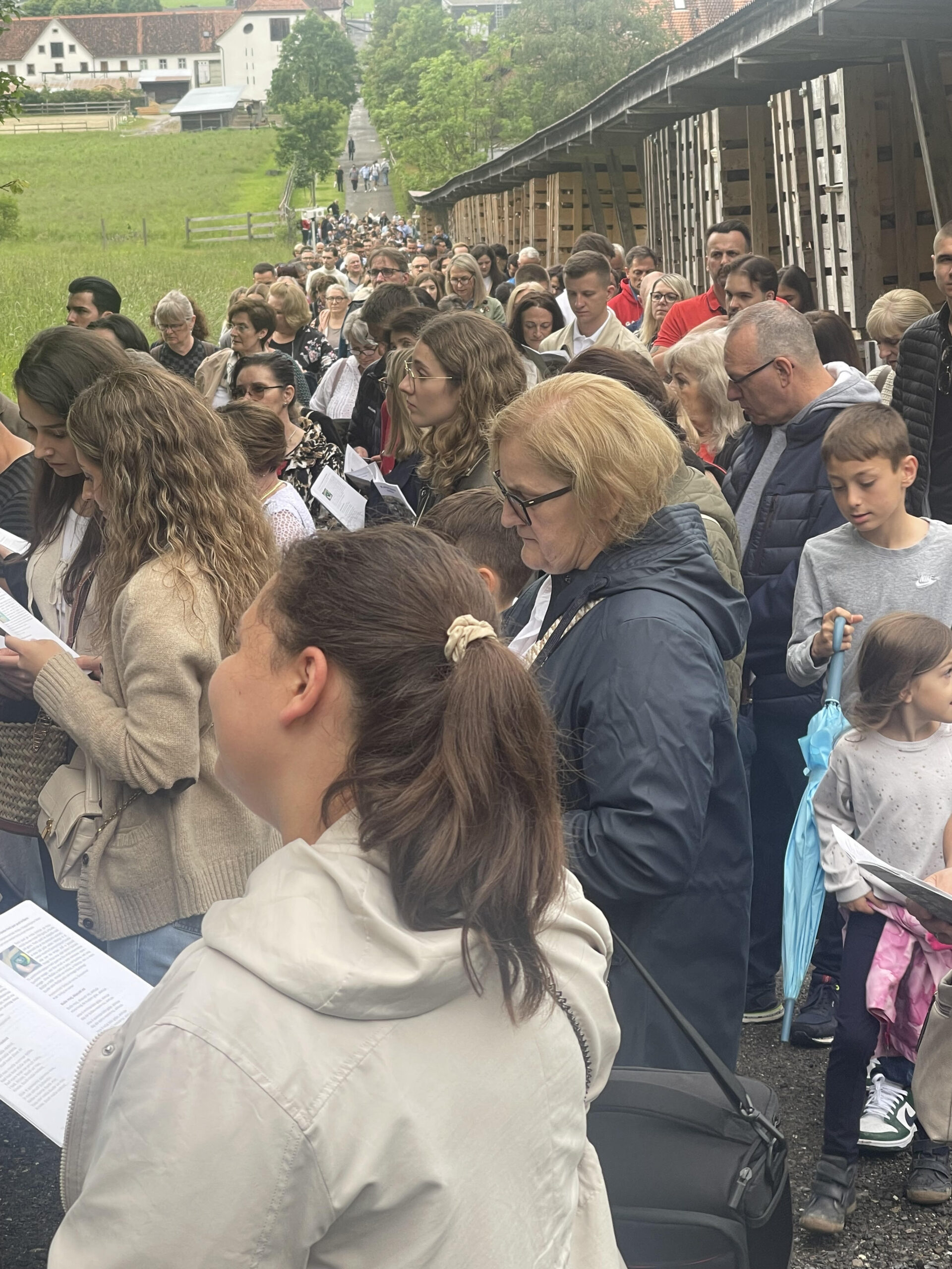 Ove godine bilo je 56. molitveno-pokorničko hodočašće u svetište Majke Božje u Einsiedelnu 8. i 9. lipnja 2024. Vjernici iz svih dvanaest hrvatskih katoličkih misija u Švicarskoj počeli su se okupljati pred Gospinom bazilikom u subotu 8. lipnja 2024. oko 14 sati. Bila je jaka kiša. Svećenici, koji djeluju u misijama u Švicarskoj, su bili na raspolaganju vjernicima za svetu ispovijed i duhovni razgovor u kapelici do bazilike od 15,30 h. Puk i dušobrižnici su se okupili s kišobranima u ruci prije 17 sati za molitvu križnoga puta uz Kalvariju, koja je u blizini svetišta. I upravo kad je počela molitva križnog puta, koju je predvodio zagrebački pomoćni biskup mons. Mijo Gorski, prestala je kiša. Uz biskupa Miju, sudjelovali su u predvođenju molitve pojedinih postaja fra Antonio Šakota i predstavnici misija, a pjevanje predvodili su pjevači okupljeni iz misija. Na molitvi križnog puta sudjelovalo je oko dvije tisuće vjernika. Tekst postaja, koji je napisao fra Goran Azinović, tiskan je kao mala knjižica. Na Kalvariji Biskup je biranim riječima ohrabrio nazočne na kršćanski život, te istaknuo važnost pobožnosti i obiteljske molitve za duhovni život.
