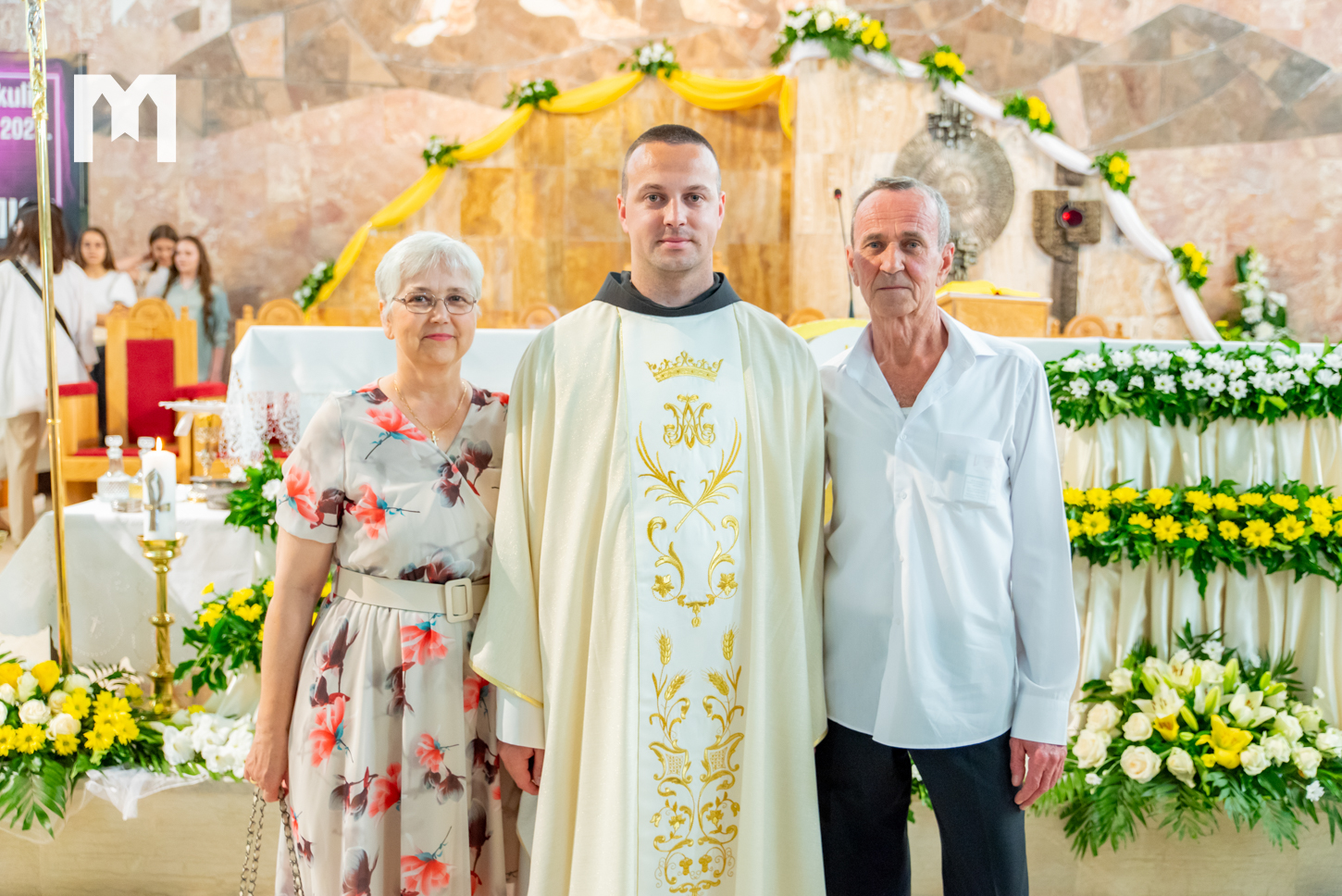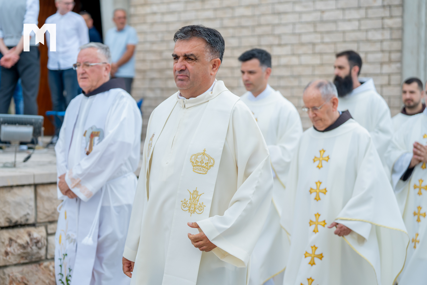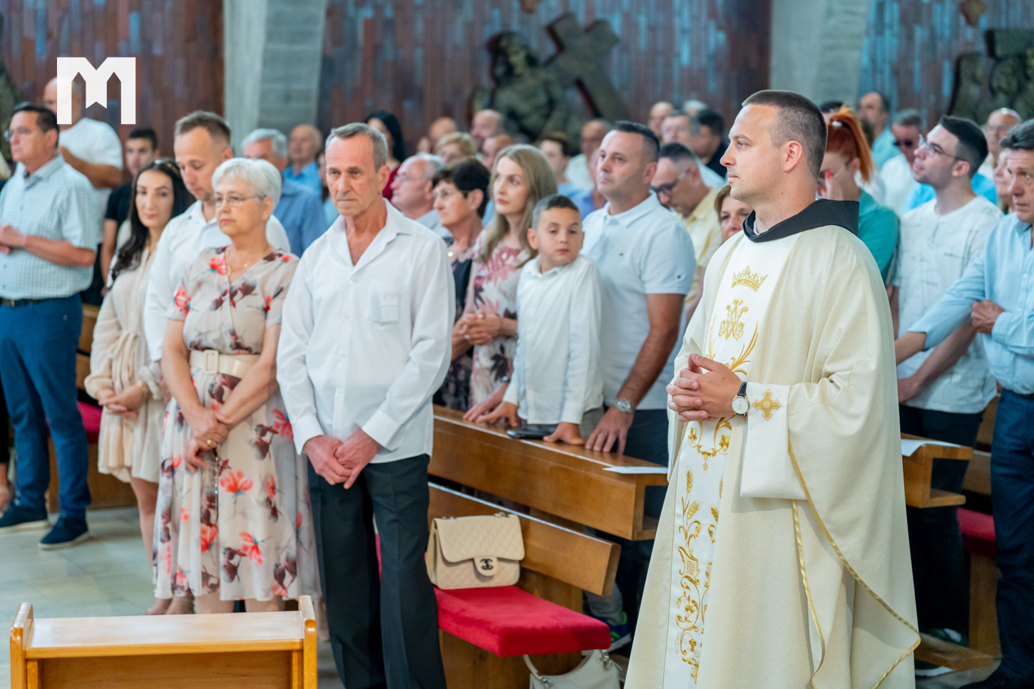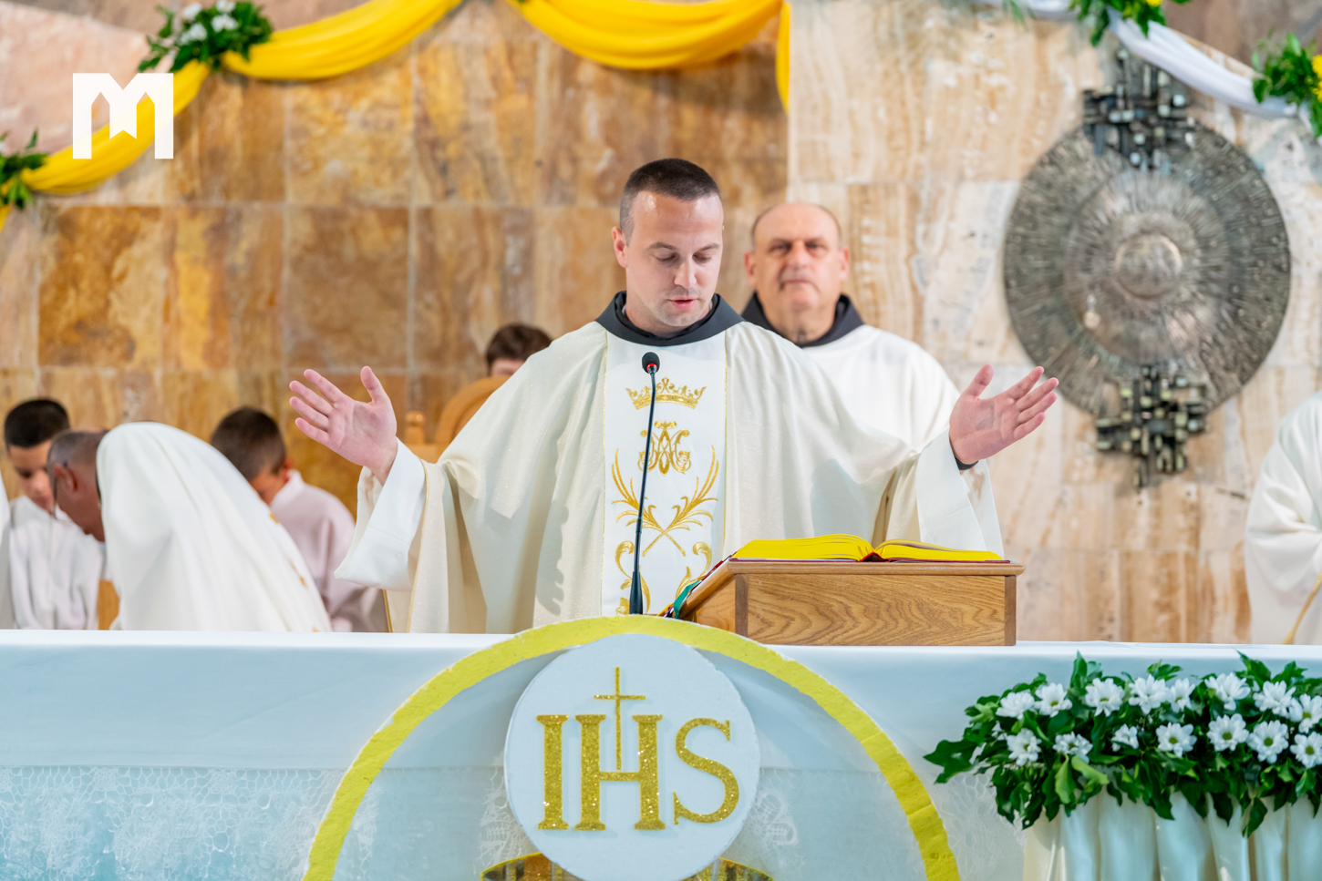 „Dragi fra Marine, imao si danas posebnu duhovnu privilegiju da ovdje možeš među nama, Bogu hvala zdrav i duhovno i tijelom, slaviti Gospodina i svoju mladu misu. Prišli su ti tvoji roditelji, otac i majka, stavili su ruke na tebe. One ruke koje su te prve dočekale kada si došao na ovaj svijet, one ruke koje su te kao dječačića i bebu presvlačile, one ruke koje su te odgajale, one ruke kad su ti ćaća i mater sklapali ruke i učili moliti. Što možemo reći, nego slavim te Bože i zahvaljujemo ti. Dragi mladomisniče, pitano je jesi li dostojan, a baš danas vidimo u Evanđelju koje je predivno otpjevao njegov rođak, naš starosjedilac fra Stanko Banožić kako se pjeva je li dostojan, a to znači ne samo čestitošću života i moralno duhovnim odlikama ćudoređa, nego ljubiš li više Isusa nego li oca i majku, onu majku koja te je odgojila i ruke na te položila, onoga ćaću koji je ovdje u prvom redu crkve svoje. Ljubiš li više Krista nego one koji su po krvi tvoji? Ako jesi, kaže Isus, dostojan si mene”, kazao je fra Mario Knezović, te se zahvalio na Božjem pozivu, ali i na fra Marinovom odazivu.