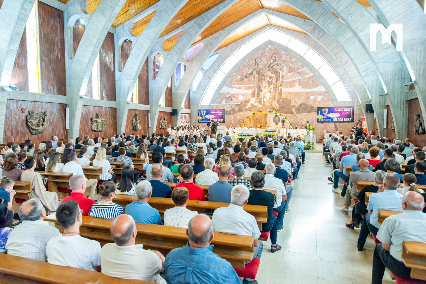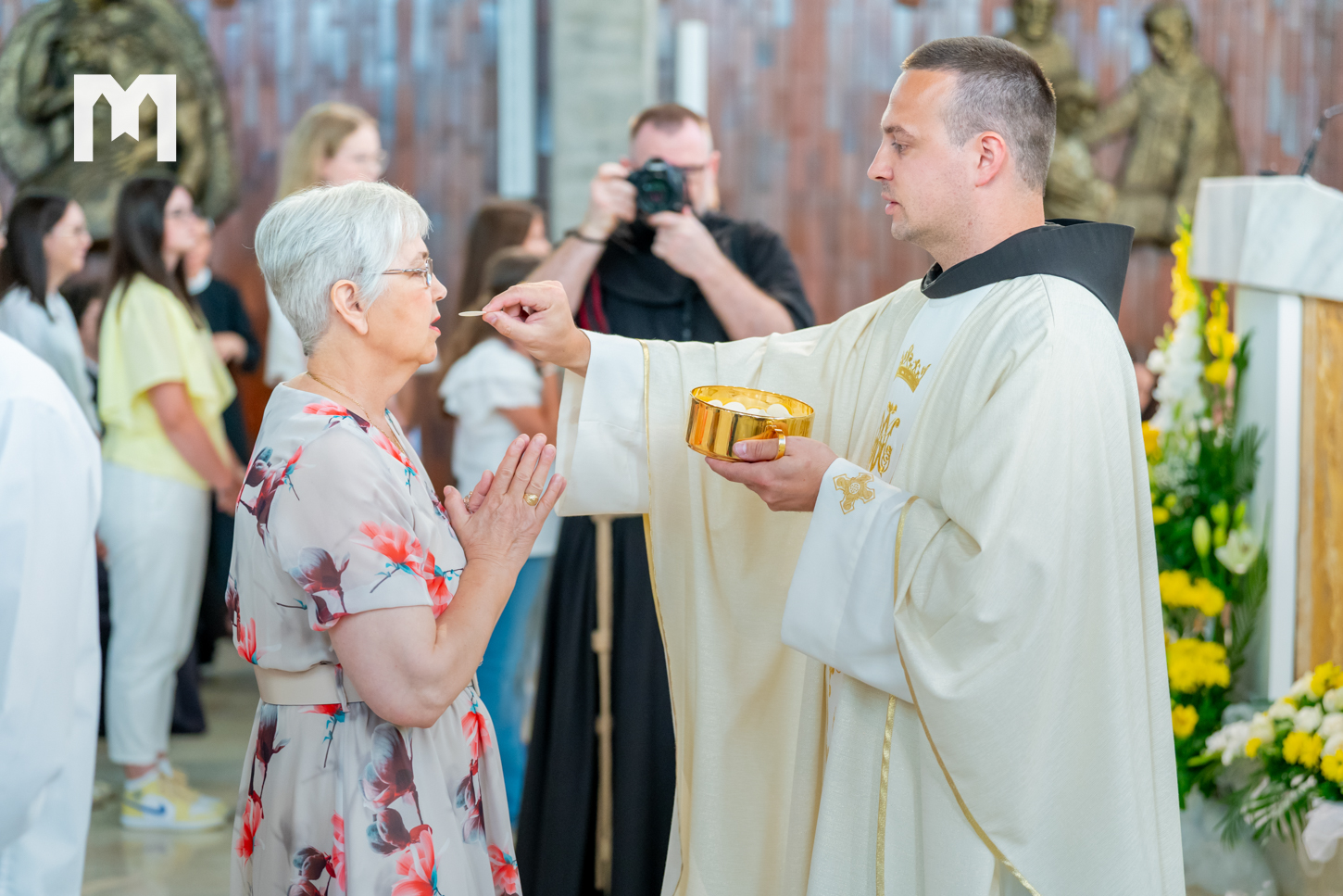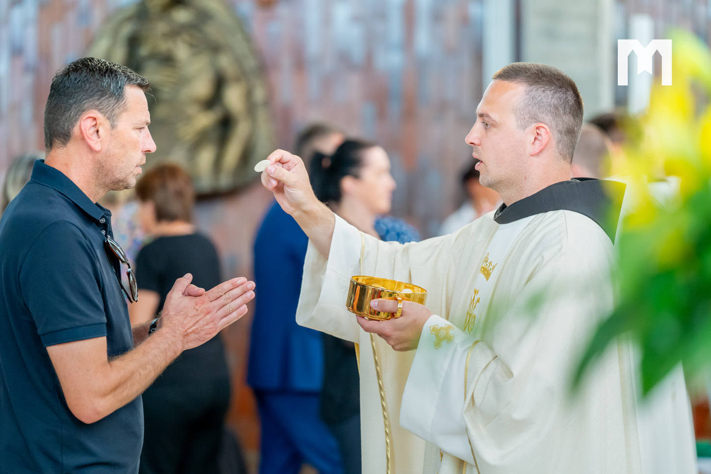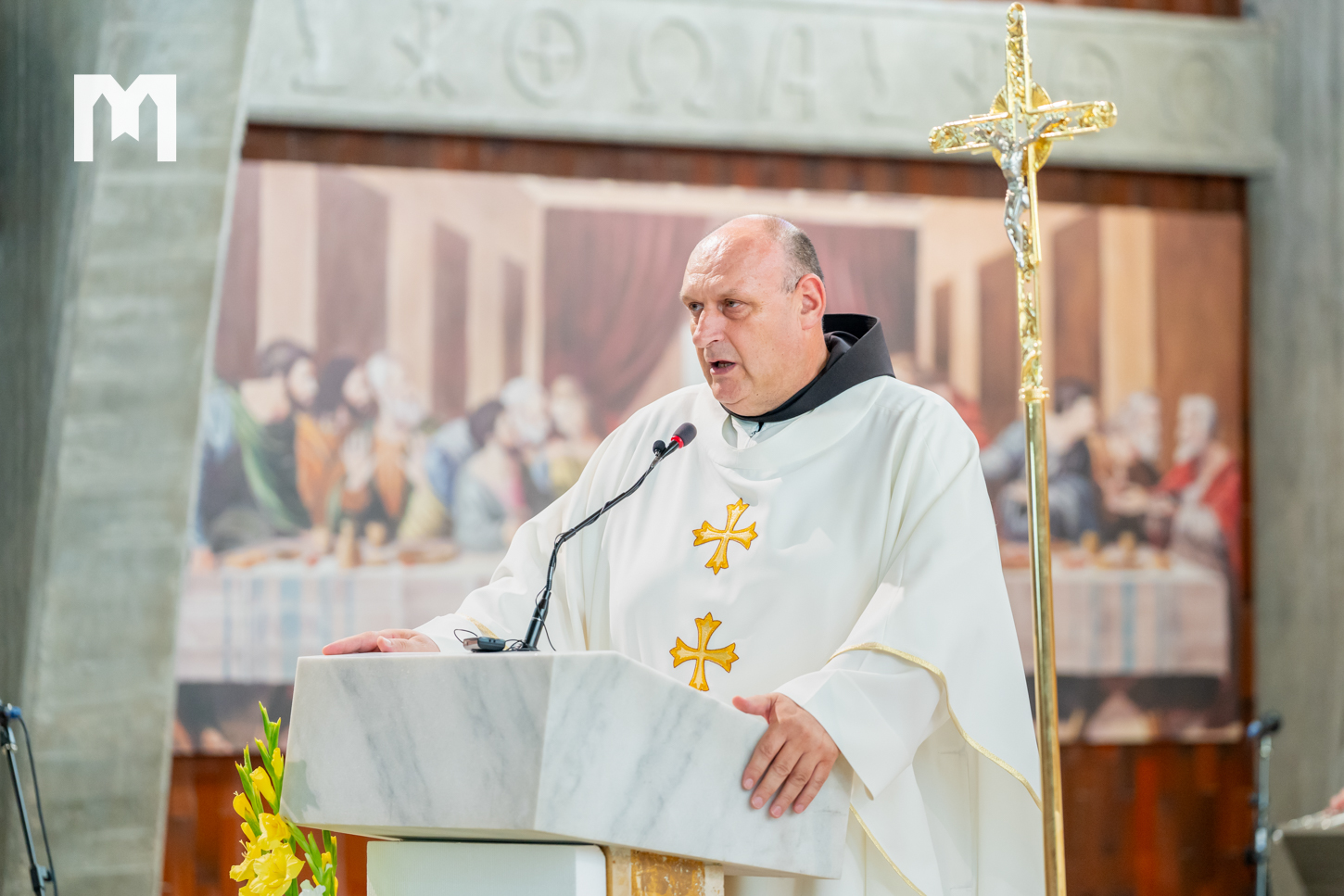 „Dragi fra Marine, imao si danas posebnu duhovnu privilegiju da ovdje možeš među nama, Bogu hvala zdrav i duhovno i tijelom, slaviti Gospodina i svoju mladu misu. Prišli su ti tvoji roditelji, otac i majka, stavili su ruke na tebe. One ruke koje su te prve dočekale kada si došao na ovaj svijet, one ruke koje su te kao dječačića i bebu presvlačile, one ruke koje su te odgajale, one ruke kad su ti ćaća i mater sklapali ruke i učili moliti. Što možemo reći, nego slavim te Bože i zahvaljujemo ti. Dragi mladomisniče, pitano je jesi li dostojan, a baš danas vidimo u Evanđelju koje je predivno otpjevao njegov rođak, naš starosjedilac fra Stanko Banožić kako se pjeva je li dostojan, a to znači ne samo čestitošću života i moralno duhovnim odlikama ćudoređa, nego ljubiš li više Isusa nego li oca i majku, onu majku koja te je odgojila i ruke na te položila, onoga ćaću koji je ovdje u prvom redu crkve svoje. Ljubiš li više Krista nego one koji su po krvi tvoji? Ako jesi, kaže Isus, dostojan si mene”, kazao je fra Mario Knezović, te se zahvalio na Božjem pozivu, ali i na fra Marinovom odazivu.