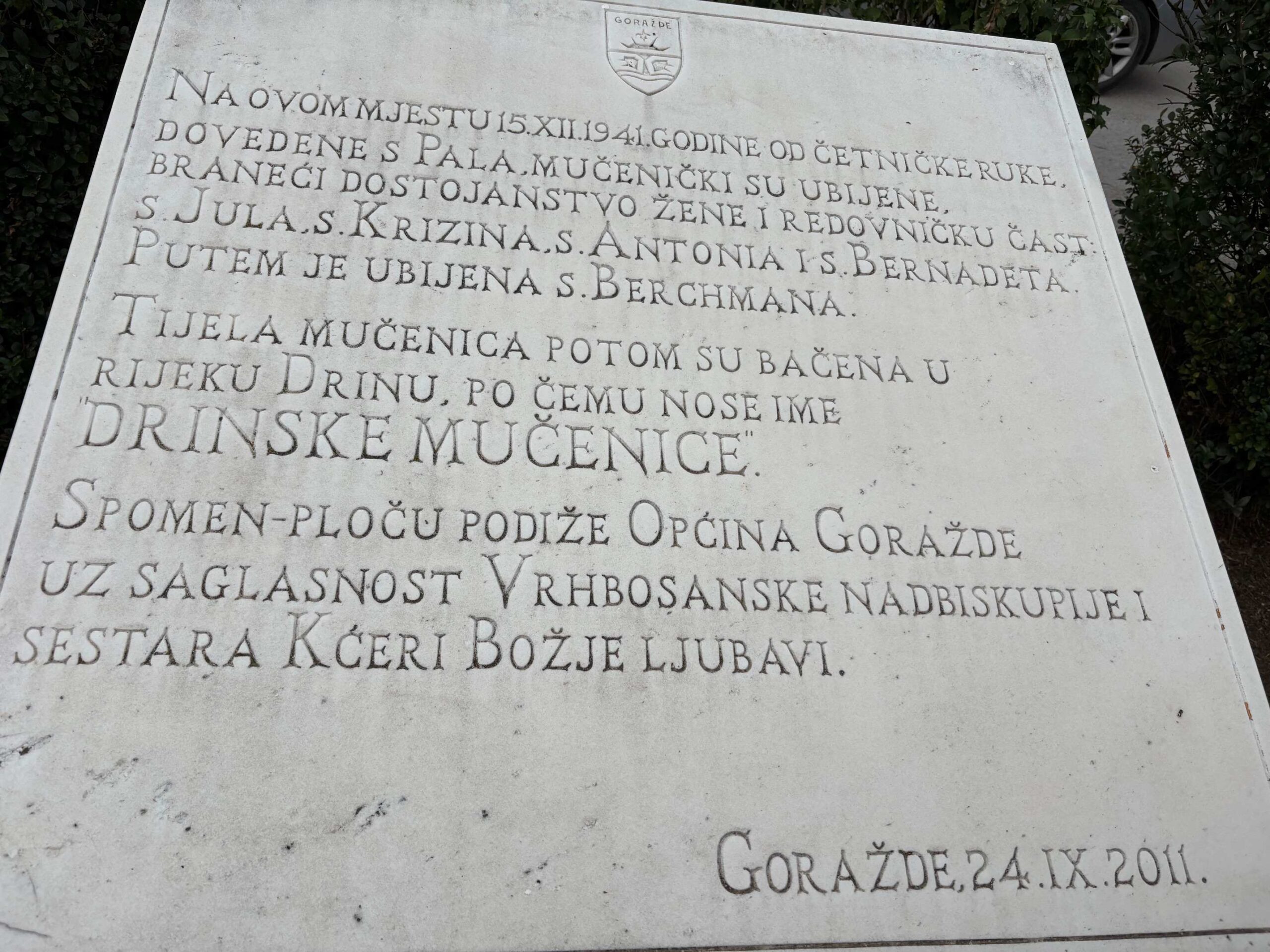 A spomendan Drinskih mučenica u Goraždu, mjestu njihovog stradanja proslavljen je dva dana ranije, u subotu. „Zamolio sam provincijala naše Bosne Srebrene fra Zdravka Dadića da predvodi ovo sveto misno slavlje i to ne slučajno. Prve temelje katoličanstva posijali su fratri upravo u ovim krajevima gdje je u prošlosti bilo 28 crkava i samostana“, kazao je župnik don Josip Tadić, koji u emisiji kratko govori o župi i stradanju sestara. Kratko je govorio i fra Zdravko Dadić, jer smo emisiju pripremili kao svojevrsno hodočašće Putevima bl. Drinskih mučenica.