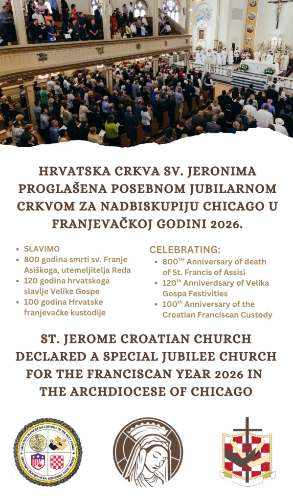 Uzevši u obzir sve bitne obljetnice, nadbiskupija Chicago je hrvatsku crkvu sv. Jeronima proglasila jubilejskom crkvom za Nadbiskupiju Chicago u franjevačkoj godini 2026.