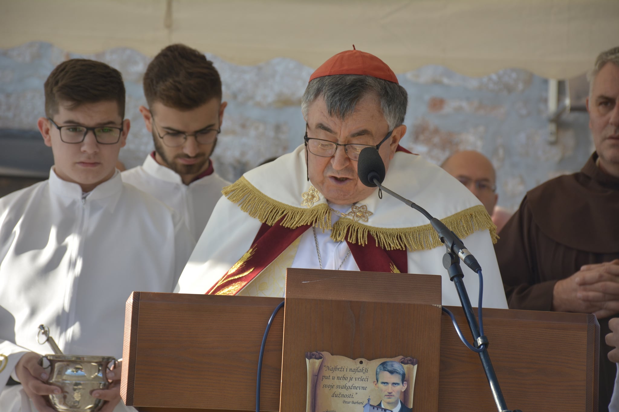 Sveto misno slavlje ispred rodne kuće sluge Božjeg Petra Barbarića predvodio je kardinal Puljić u koncelebraciji provincijala Hercegovačke franjevačke provincije fra Miljenka Šteke, generalnog vikara Vrhbosanske nadbiskupije mons. Slađana Ćosića, generalnog vikara hercegovačkih biskupija don Nikole Menala, klobučkog župnika fra Roberta Jolića, rektora Nadbiskupskog sjemeništa Petar Barbarić u Travniku preč. Željka Marića – organizatora te brojnih drugih svećenika.