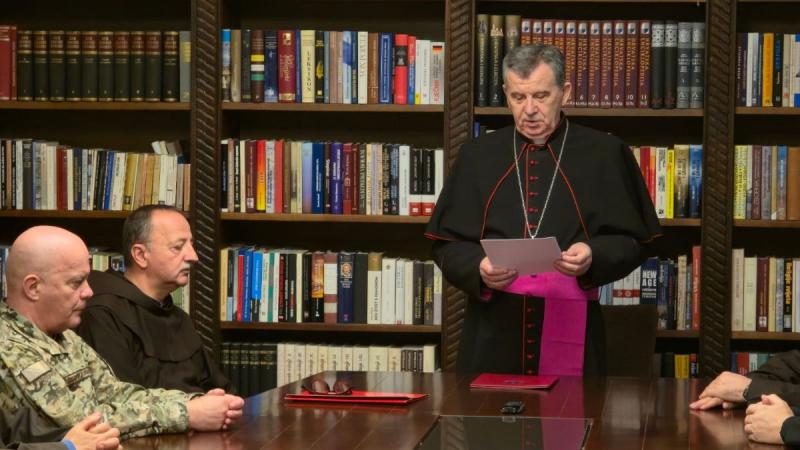 Pozdravni govor vrhbosanskog nadbiskupa i dosadašnjeg apostolskog upravitelja Vojnog ordinarijata u BiH mons. Tome Vukšića održan u prigodi imenovanja novog vojnog ordinarija mons. Mire Relote održan na svečanosti u Nadbiskupskoj rezidenciji u Sarajevu u petak 21. studenog prenosimo u cijelosti.