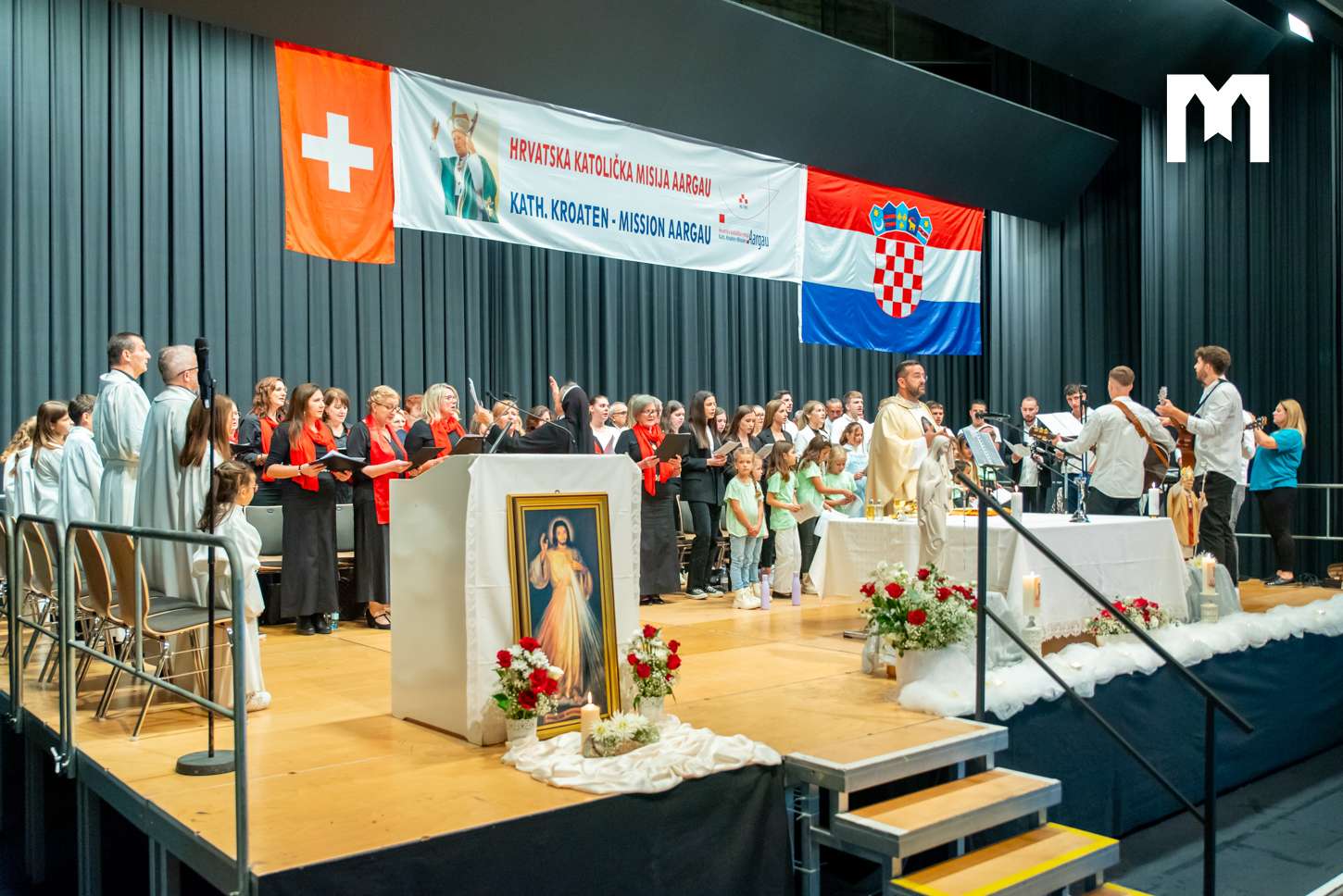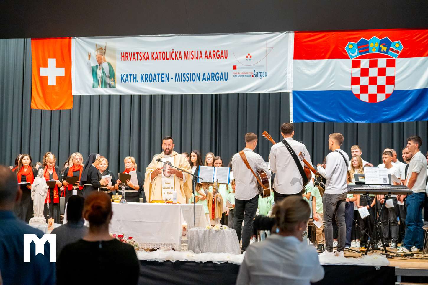 Svetu misu predslavio je fra Sretan Ćurčić, uz koncelebraciju fra Nike Leutara voditelja HKM Aargau i don Šimuna Doljanina. Na misi su pjevali misijski zborovi – Zbor mladih, Veliki zbor i Dječji zbor Hrvatske katoličke misije Aargau.