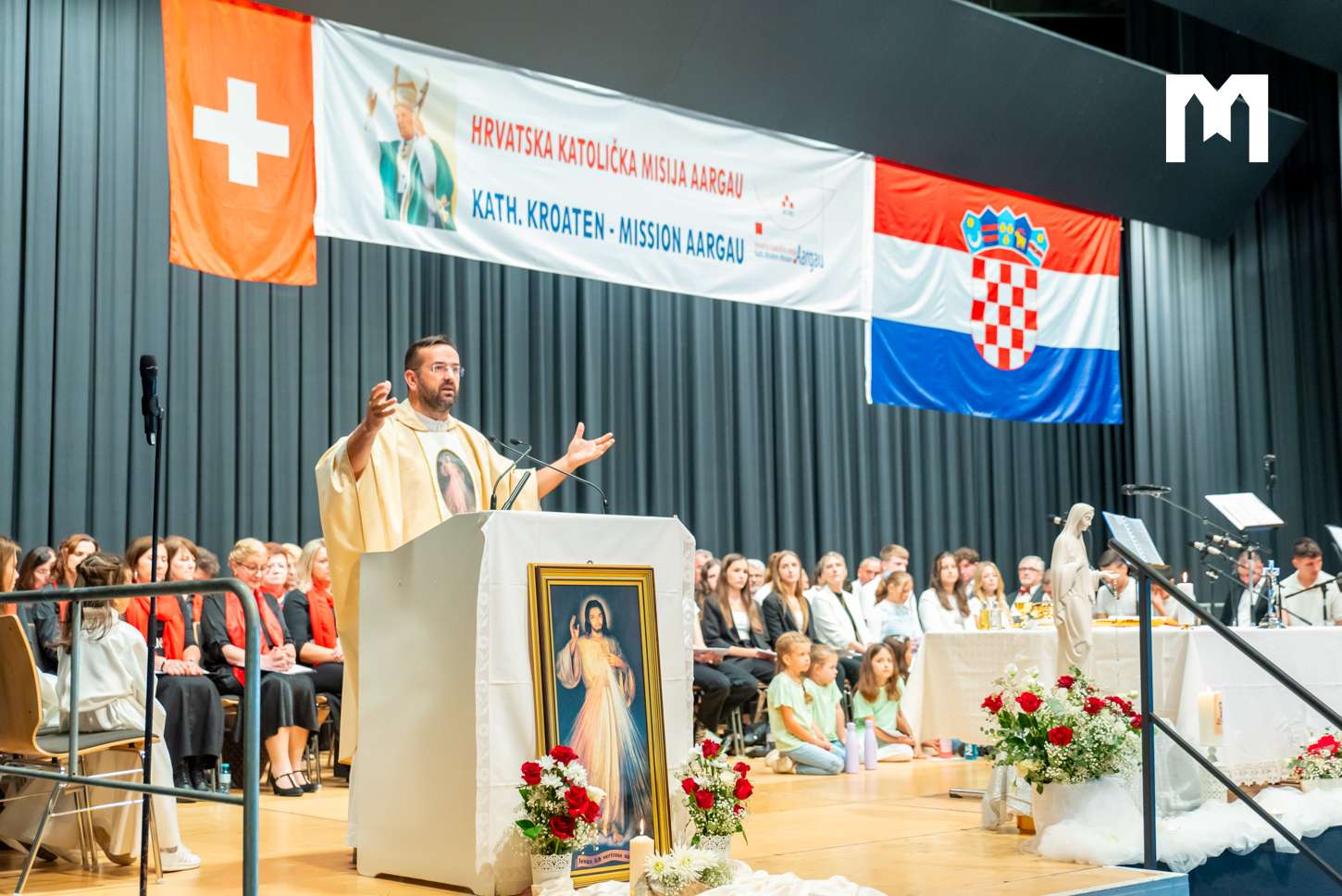 ”Stoga, ne stojmo gladni i žedni, a stojimo na izvoru života, a to je sveta misa”, poziv je vjernicima kojim je svoju propovijed zaključio fra Sretan Ćurčić, a na kraju je svima zahvalio fra Niko Leutar, voditelj HKM Aargau.