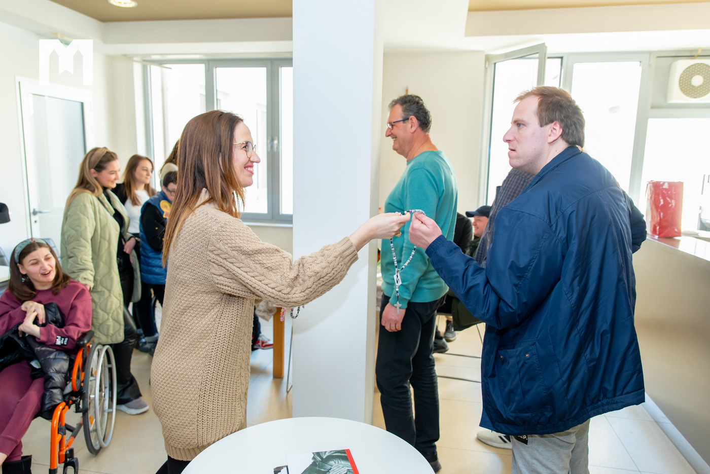 “Volim slušati radio, a najviše pjesme Mate Bulića. U Centru su mi najbolji prijatelji David, Petra, Ivana, Matea i Patricija. Volim ići na izlete, svako jutro kada dođem upitam hoćemo li igdje danas ići”, kazala je Lucija. Nakon razgovora, druženje se nastavilo u radijskim prostorijama. Glavna urednica Sanja Pehar zatim je podijelila Gospine krunice svim djelatnicima i korisnicima Udruge, te im zahvalila što su nas posjetili, a što su nam još kazali dragi gosti možete poslušati u audiozapisu.