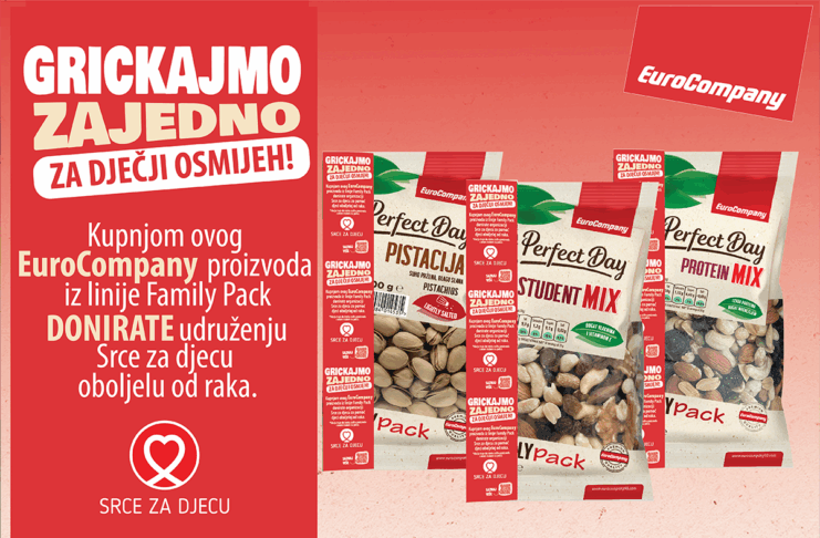 U suradnji s Udruženjem Srce za djecu oboljelu od raka BiH EuroCompany99, regionalni lider u kategoriji orašastih plodova, suhog voća i zdravih snackova, pokreće društveno odgovornu kampanju „Grickajmo zajedno za dječji osmijeh“, posvećenu djeci oboljeloj od raka i njihovim obiteljima u Bosni i Hercegovini.