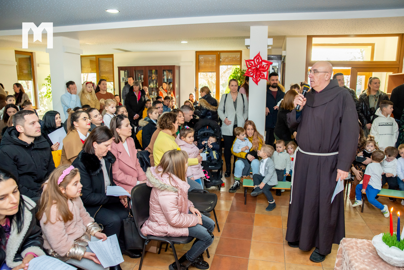 „To je nešto što je nama tako blisko i drago, i ne samo to, već Bog dolazi kako bi nam donio spasenje. Čovjek nakon prvog grijeha nije mogao sam doći do svog Oca nebeskog, zato Otac šalje svoga Sina Isusa Krista. Mi to otajstvo slavimo u Božiću, ali ujedno pripremamo se i za drugi Isusov dolazak. To je otajstvo, to je tajna da se Bog utjelovljuje. Svatko od nas ima potrebu razumjeti to otajstvo, a sveti Franjo je to učinio uprizorenjem jaslica u Grecciu, te će se dogodine slaviti 800 godina od toga čina. Danas ćemo vidjeti kako to čine naša djeca iz vrtića, a oni na svoj način doživljavaju otajstvo Božića i interpretiraju ga i tumače”, kazao je fra Dragan zahvalivši se svima na dolasku, kao i tetama odgajateljicama, te svima koji su pomogli da se ova priredba organizira, te je još svima zaželio sretan i blagoslovljen Božić.