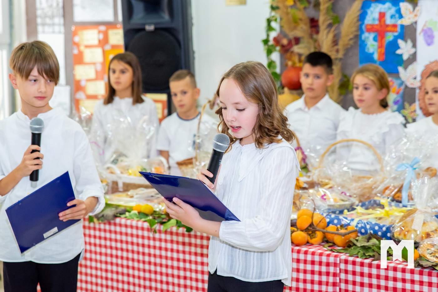 „Danas smo se okupili da Bogu dragom zahvalimo na svim ovim plodovima zemlje, na radu ruku čovječjih, a ovih plodova ima mnoštvo i u vašim razredima. Možemo vidjeti koliko mi bogatstvo imamo, kao i u ovoj pjesmi što smo pjevali, da je naša Hercegovina puna plodova, i to raznoraznih. Zato smo danas došli ovdje kako bi dragom Bogu zahvalili i toga se spomenuli. Mi također moramo biti svjesni da nas je Bog stvorio na svijetu, a da na svijetu ima mnoštvo vaše generacije, djece i mladih, koji nemaju ovoliko bogatstvo u plodovima zemlje. Ima mnogo onih koji umiru od gladi. Zato mi dragom Bogu zahvaljujemo za ono što imamo, ali isto tako ga danas ovdje molimo za one koji nemaju. Molimo ga da mi vidimo one koji isto tako nemaju – ako ima nekih susjeda, ako ima netko iz rodbine, ako mi uvidimo u svom životu da netko nema kruha, da nema dovoljno hrane”, kazao je fra Ivan, te naglasio kako moramo biti zahvalni Bogu na darovima koje nam je dao, ali isto tako da moramo primijetiti i pomoći onima koji kruha nemaju.