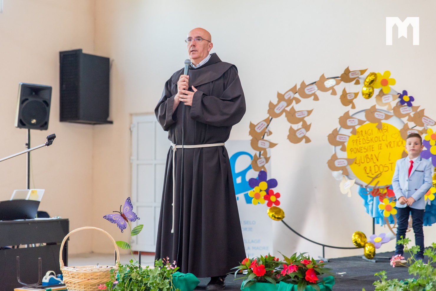 ”Kažu da je najgora mana u čovjeka nezahvalnost, kada ne znamo biti zahvalni. Ono što mi možemo učiniti prema svojoj majci i prema Nebeskoj Majci jest izraziti zahvalnost za ponos, za strpljenje, za žrtvu, za temelje koje nosimo u svome srcu, u svome biću. Danas će nam djeca pokušati pokazati put kako u prigodi Majčina dana biti zahvalni svojoj majci, a i Nebeskoj Majci. Djeca to najbolje rade jer su ona spontana i neiskvarena, a rade to iz srca, onako kako znaju. Tete iz vrtića su danas također važne, jer da nije teta, ne bi ove proslave ni bilo. Budimo, dakle, zahvalni i tetama na njihovom trudu, radu i nastojanju, jer vrtić nije samo čuvanje djece, nego je i škola. To je predškolski odgoj gdje se djeca odgajaju i uče. Mi veliki nemojmo zaboraviti, iako možda nemamo svi sada zemaljsku majku, moliti za svoju majku, iskazati joj zahvalnost. Posebno zahvalimo našoj Nebeskoj Majci, jer sve ono što imamo i što jesmo dugujemo njezinom ‘Da’. Jer po njezinom ‘Da’ je došlo spasenje na ovaj svijet, a po tome smo i mi spašeni”, kazao je fra Dragan Ružić.