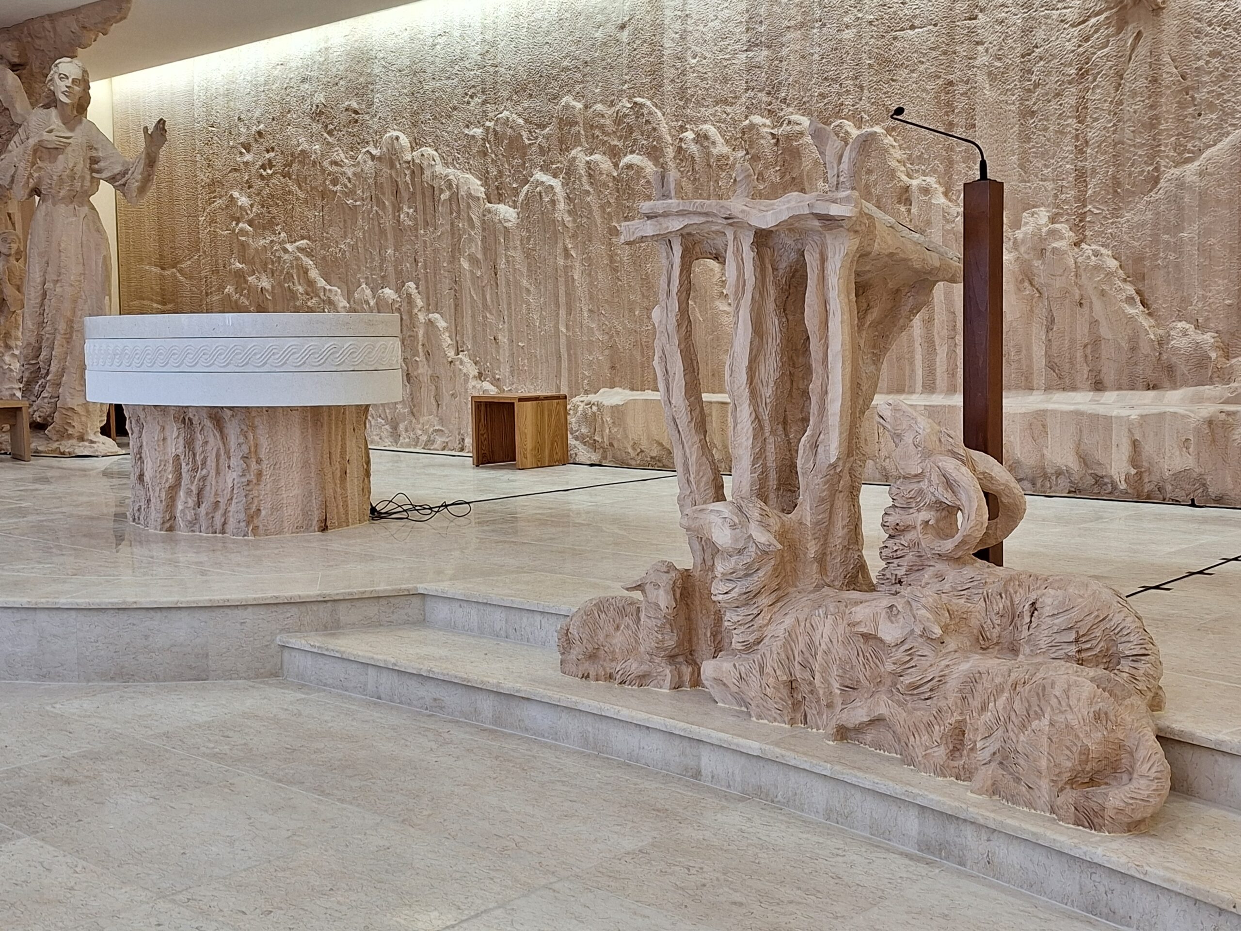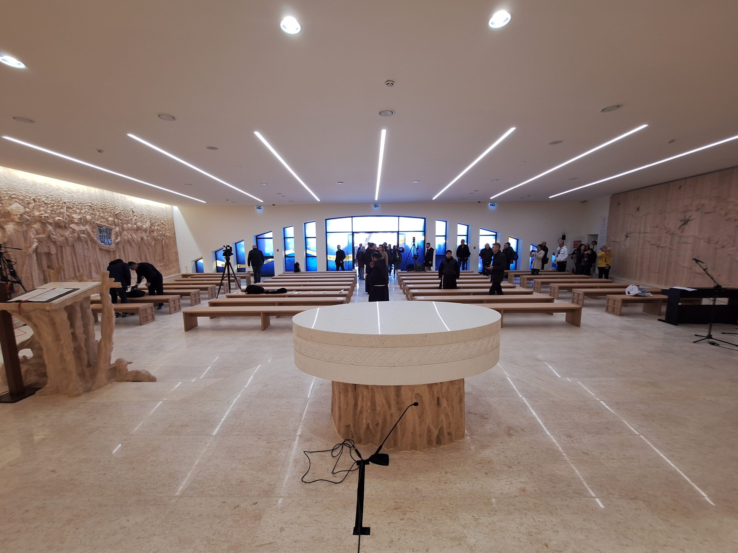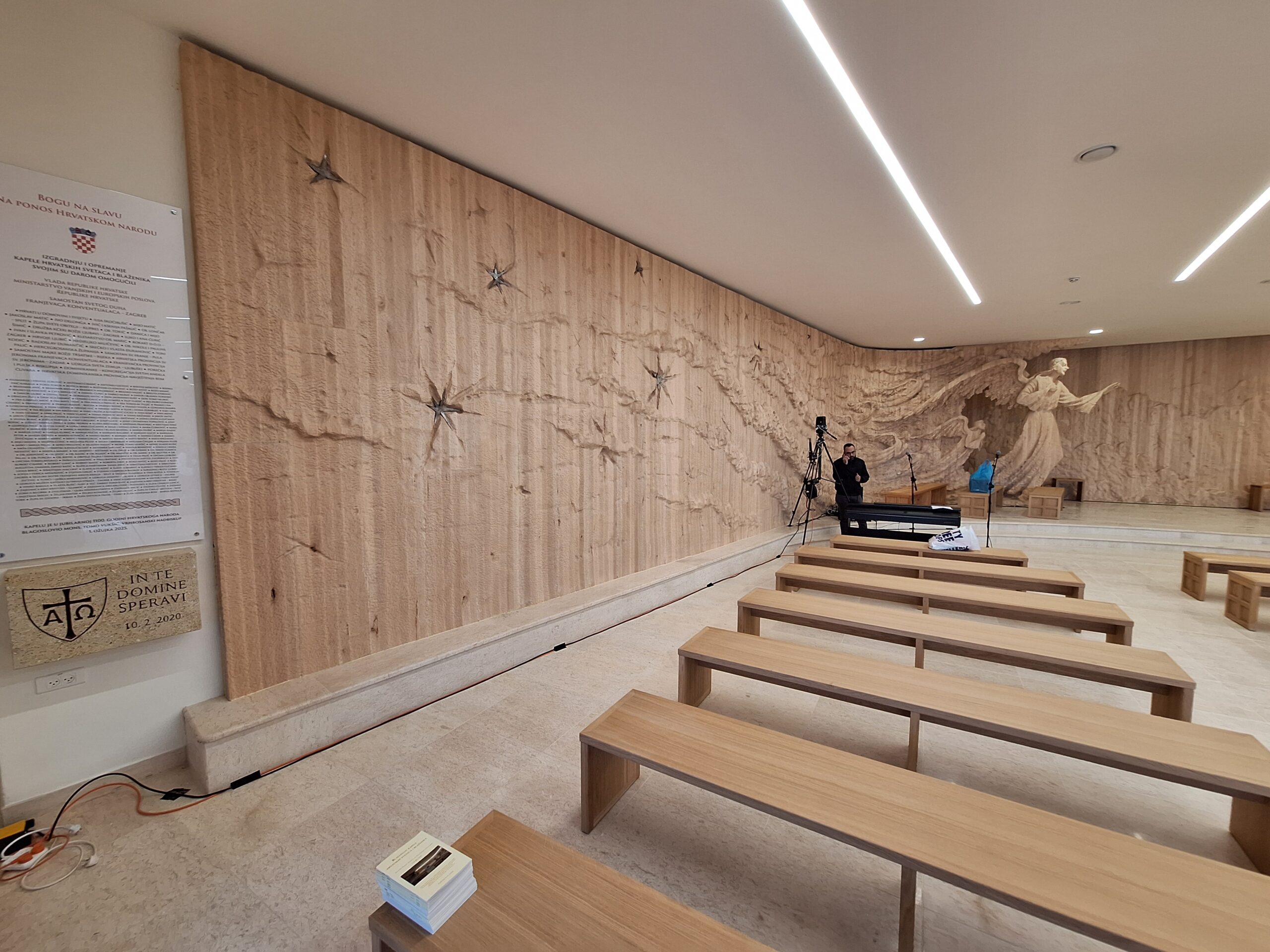 Ambon je zamišljen kao jasle. Jasle su mjesto, odnosno element iz kojeg se hrani stado, ovce, a narod se hrani riječju Božjom”, pojašnjava Skočibušić, a otvaranej kapele trebalo je biti prošle godine, ali je odgođena pa je otvorena u ovoj Jubilarnoj godini kojoj je geslo ”Hodočasnici nade”, a hrvatski narod u ovoj betlehemskoj kapeli prikazan je kao hodočasnički narod.