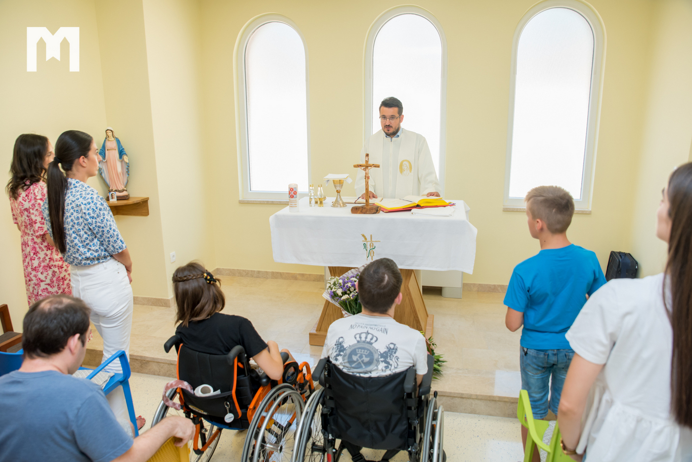 Svetu misu u 11h u kapelici u Centru predslavio je fra Goran Azinović koji je za naš program naglasio kako mi često kada pomažemo tada pomažemo svojim bližnjima, a da je sestra Muriel primjer Isusove poruke kako treba drugima pomoći, ne samo bližnjima.