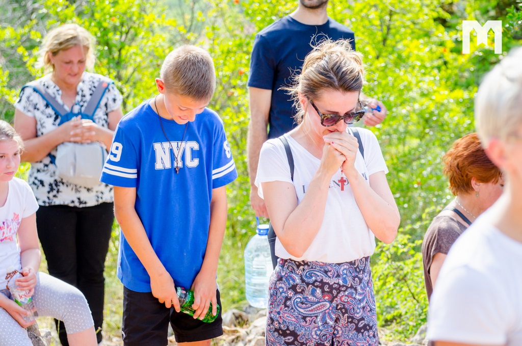 Krenulo se i ove nedjelje u 15 sati ispred crkve Krista Kralja u Čitluku. U molitvi i pjesmi hodočasnička staza duga 8 km nastavila se preko Krehina Graca, Vionice i Bijakovića do Podbrda. Svoju blizinu i ljubav hodočasnicima su, kao i svake nedjelje, iskazali župljani međugorske župe dočekujući ih ispred svojih kuća i nudeći im osvježenje i kolače. Zaustavili smo se kod obitelji Ostojić, a Ljubica je, uz osvježenje, primila i nas.
