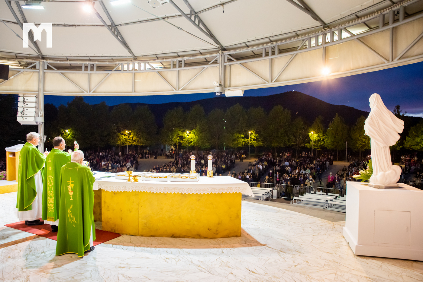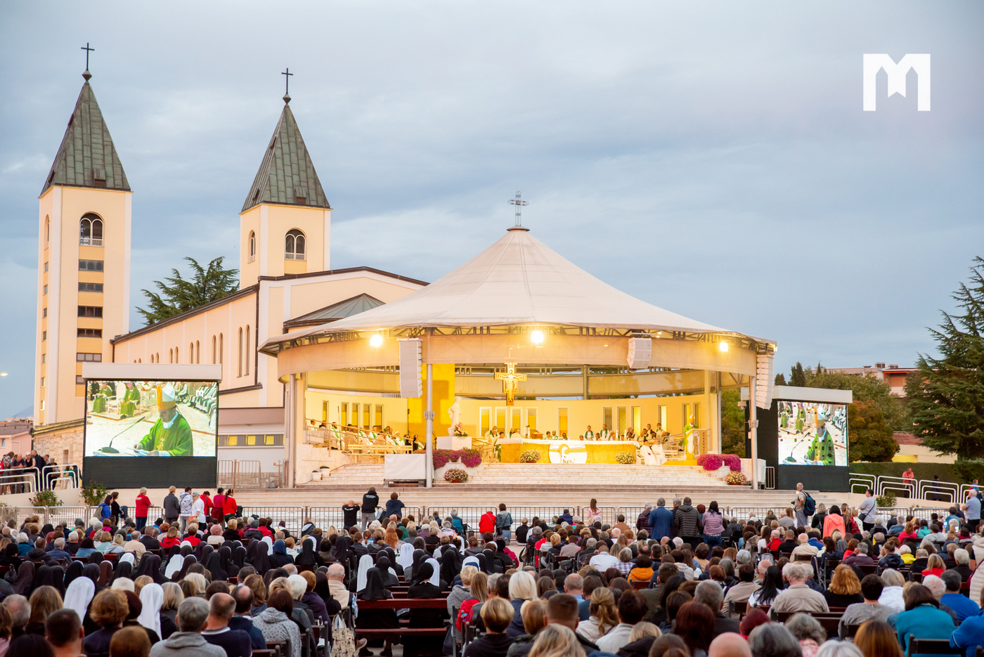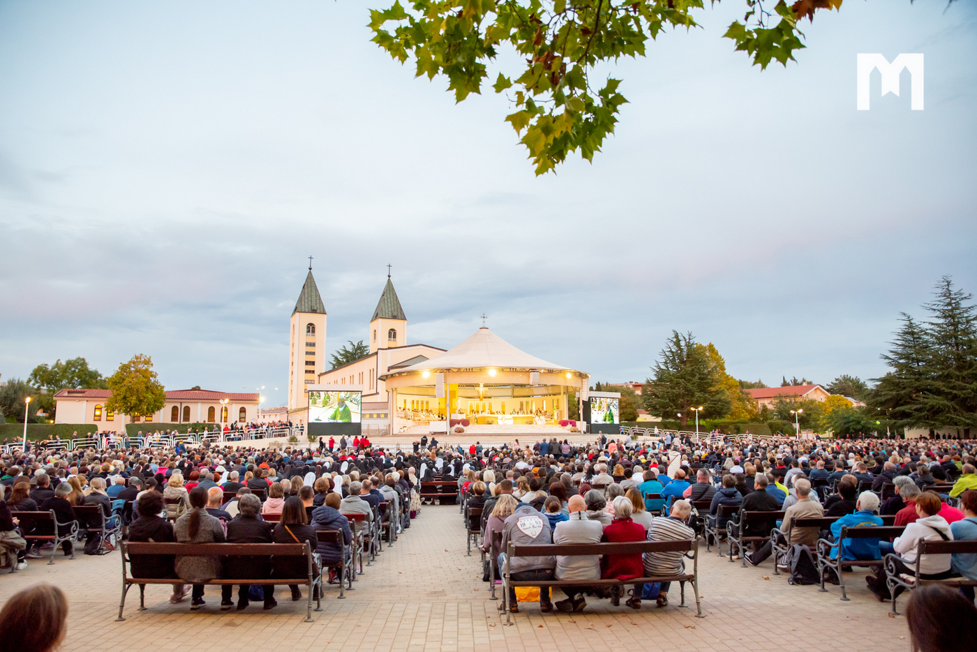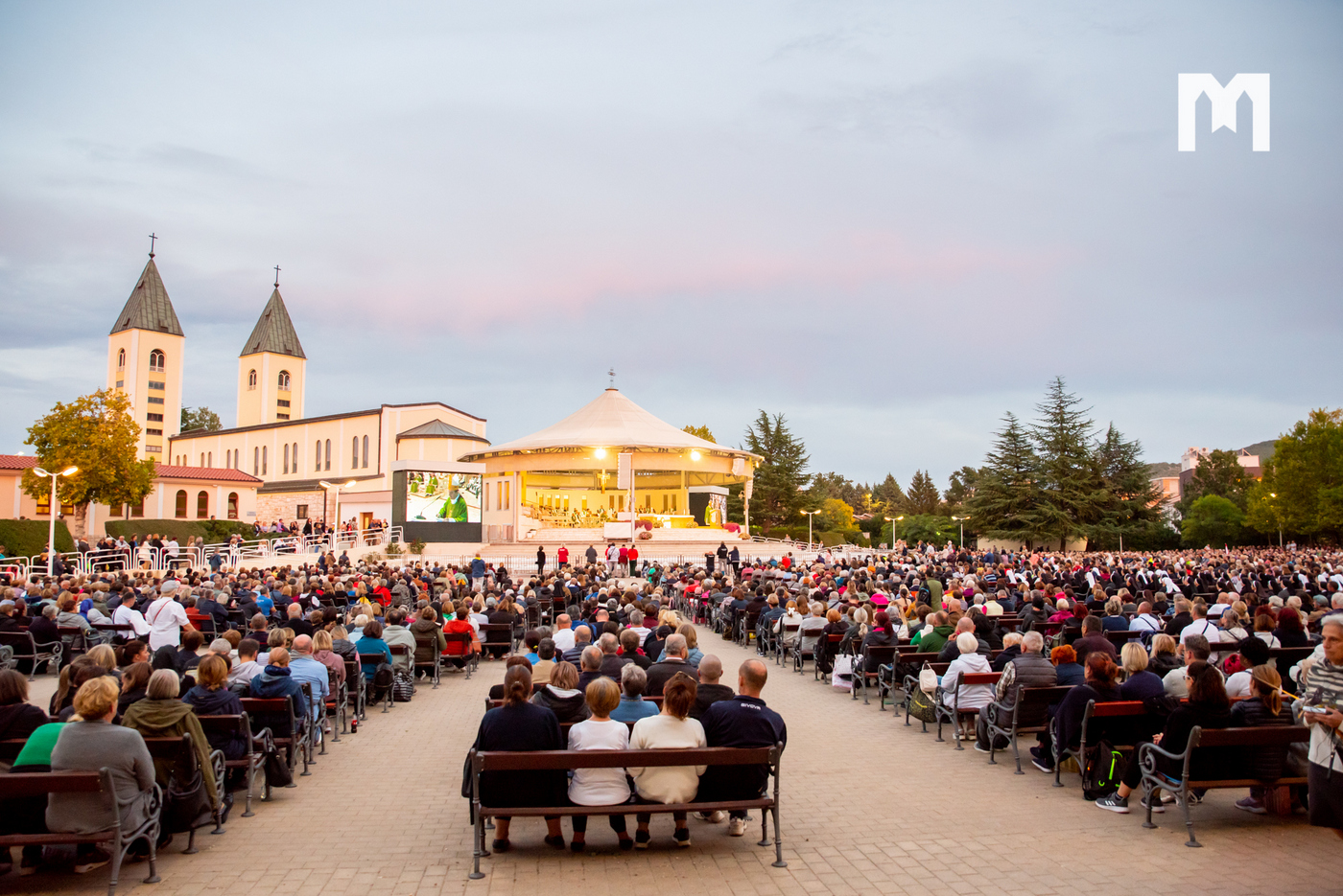 Drugog dana 14. Mariološko-marijanskog nacionalnog kongresa na temu ‘Međugorje kao doprinos novoj evangelizaciji’ večernju svetu misu na vanjskom oltaru crkve sv. Jakova u Međugorju predslavio je biskup mostarsko-duvanjski i apostolski upravitelj trebinjsko-mrkanski mons. Petar Palić. Prije mise, kao i svaku večer, molila se krunica koju je predmolio fra Marin Mikulić.
