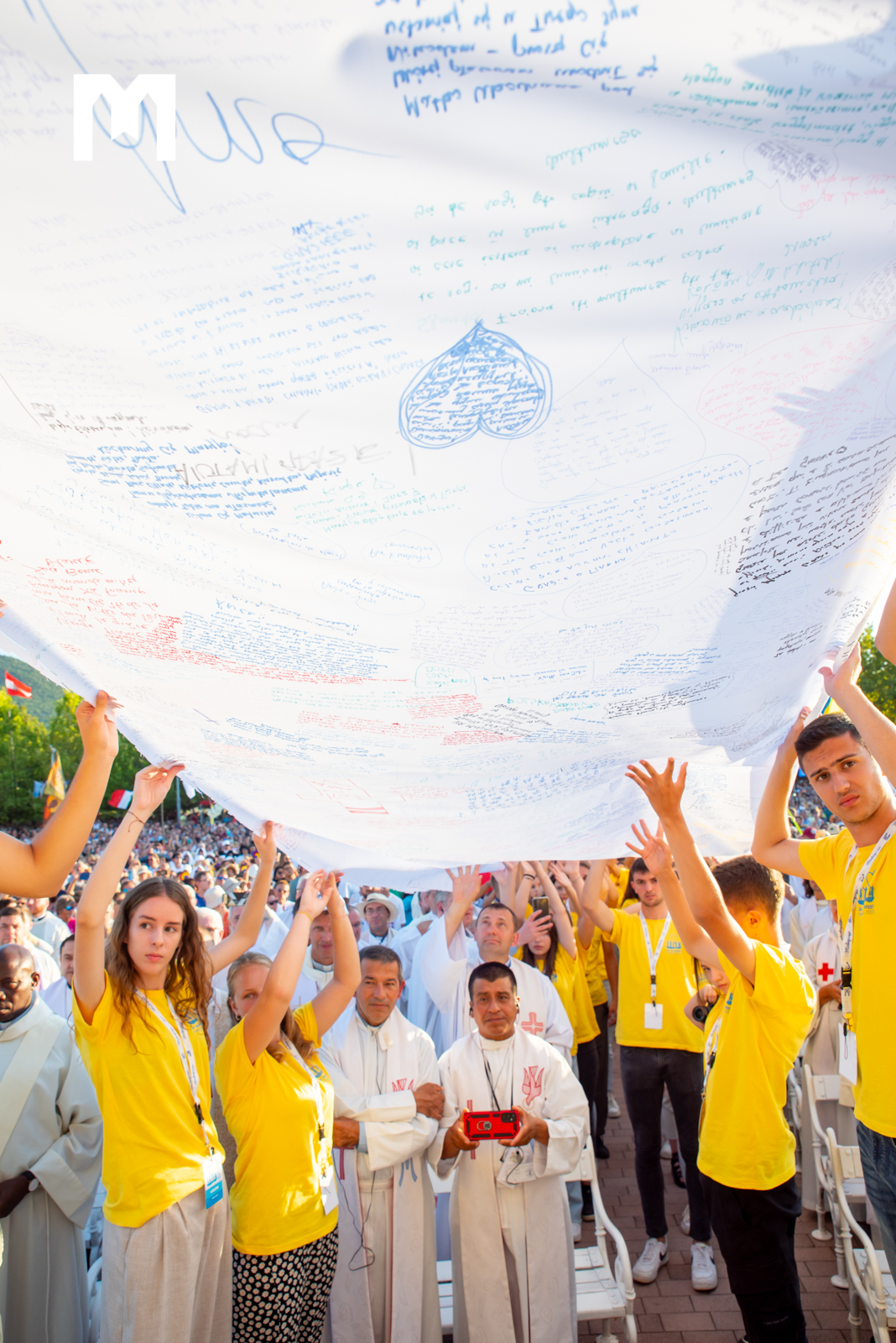 Prije mise na oltar je prineseno sto metara dugo platno na kojem su mladi posljednjih dana ispisivali svoje molitve.