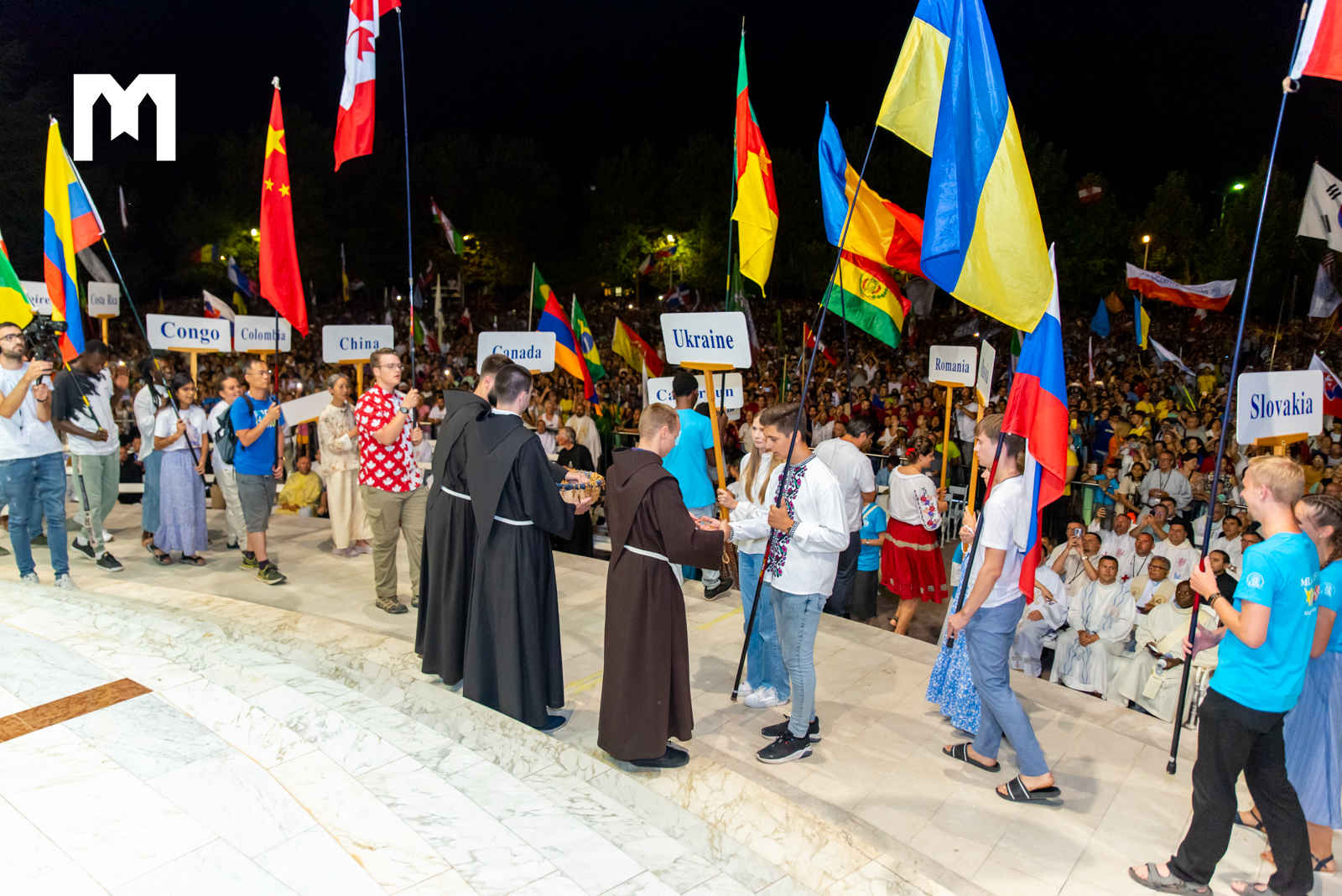 Nakon mise uslijedilo je Klanjanje pred Presvetim, a dan je završio poslanjem u kojem su predstavnici svih zemalja na dar dobili krunicu, a pozivajući ih da prihvate krunice fra Zvonimir Pavičić im je rekao da budu evangelizatori u svojoj obitelji, svom gradu, svojoj zemlji…