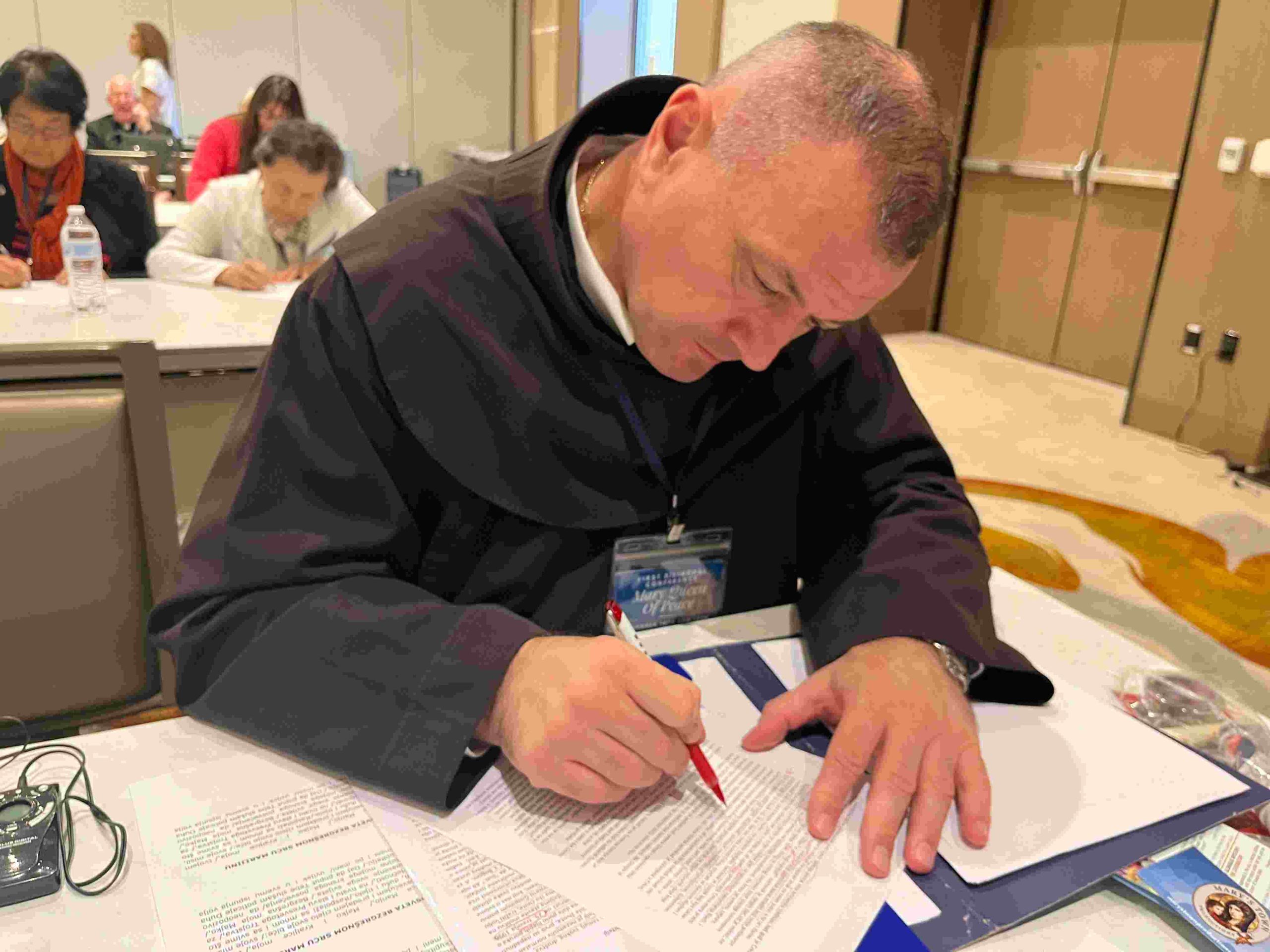 ”Dragi prijatelji, hvala vam za ova dva dana. Osobito sam sretan zbog ove radionice koja je generirala mnoge nove ideje. Sva evangelizacija sažeta je u jednu rečenicu, a to je “privođenje čovjeka izvoru ljubavi” koji je Bog. A tko je našao Boga, našao je sve. To je cilj evangelizacije, a onda postoje različita sredstva, različite skupine, različite duhovnosti, kao lijepi mozaik, kao cvijeće u vrtu, i što više cvijeća bude, to će vrt biti ljepši. Ali cilj je uvijek isti: dopustiti da me Božja ljubav dotakne, susresti živoga Boga. Djevica nas je pohodila i pozvala da sve što radimo činimo iz ljubavi. Ona nas želi osposobiti za borbu protiv zla i grijeha. Međugorje nije u Međugorju nego tamo gdje si ti, gdje širiš poruke Djevice, gdje prepoznajem svoje grijehe i odričem ih se svakodnevno, tamo se događa Međugorje, događa se milost, događa se novo nebo i nova zemlja. Zakon molitve je zakon vjere. Tko puno moli, puno vjeruje. Tko malo moli, malo vjeruje. Pozivam vas da počnete moliti i postiti za ovaj novoosnovani centar kako bi se Djevičina poruka proširila diljem Sjedinjenih Država jer će odavde imati veliki utjecaj u cijelom svijetu. Ali nije moguće da milost intervenira ako žrtva nije prinesena. Tako je bilo u Starom i Novom zavjetu. Isus je prinio žrtvu za nas, ali se od nas očekuju i male svakodnevne žrtve”, kazao je fra Danko, koji je govoreći o Međugorju kazao kako se ”u Međugorju čovjek ponovno rađa”.