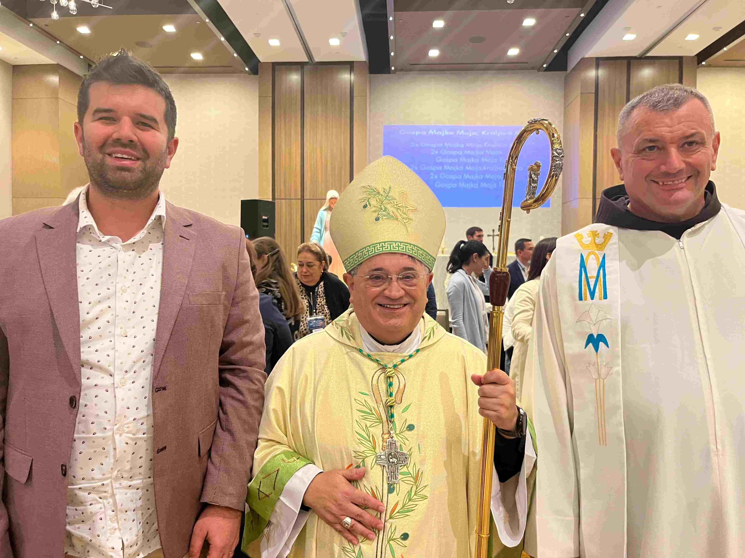 “Draga moja braćo i sestre, danas slavimo XXXIII. nedjelju kroz godinu, posljednju nedjelju kroz godinu jer je iduća nedjelja Nedjelja Krista Kralja. Ali ova nedjelja nije sasvim obična nedjelja jer sudjelujemo na konferenciji “Marija Kraljica mira”. Sve je počelo u Međugorju gdje je šestero mladih ljudi reklo da je vidjelo Djevicu Mariju. Tijekom godina uvijek se postavljalo pitanje jesu li ukazanja autentična ili ne. No, Crkva je razborito istraživala radnje i događaje koji su se tamo događali i nikada se nije izjašnjavala ni za ni protiv. Ali jedna od stvari koju sam uvijek pitao mnoge ljude koji su išli na to hodočasničko mjesto je njihovo iskustvo tamo. Njihov odgovor je da su pronašli neopisiv mir i susret s Gospodinom, koji ih je naveo da promijene svoj život i ozbiljnije se pozabave kršćanskim životom. Nisam bio tamo, ali sam čuo svjedočanstvo mnogih ljudi koji su na tom mjestu našli mir i obraćenje. I zato slavimo ovu konferenciju Djevice Kraljice mira. Želim vas podsjetiti da je jedan od temelja za provjeru vjerodostojnosti ukazanja naše Majke Marije to što Ona ne traži ništa za nju, nego nas podsjeća da činimo ono što njezin Sin od nas traži. To znači da živimo svoj poziv svetosti koji smo primili na dan krštenja”, poručio je mons. Delgado.