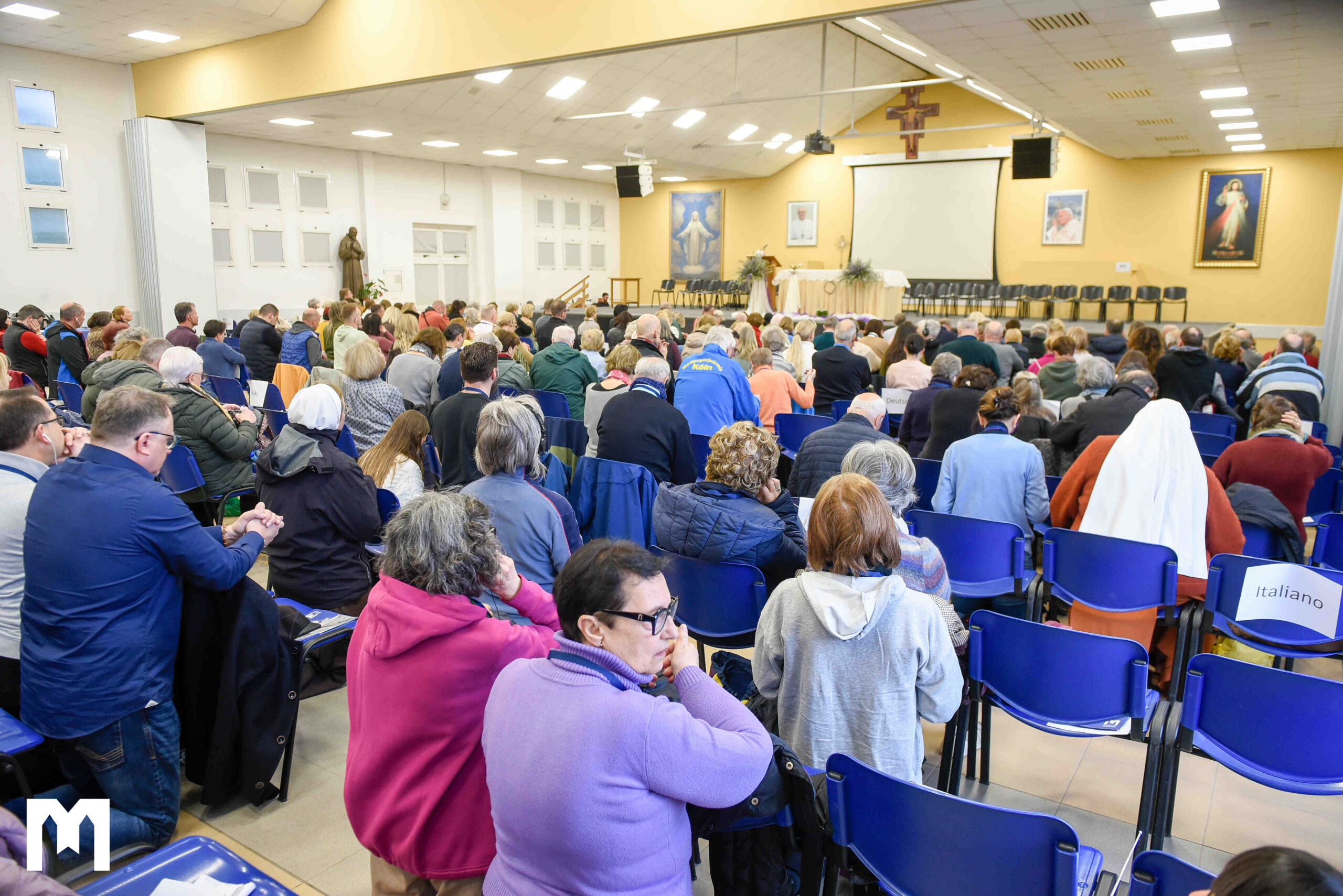 Nakon registracije sudionika apostolski vizitator s posebnom ulogom za župu Međugorje nadbiskup Aldo Cavalli predslavio je svetu misu s nakanom za sve žrtve ratova u Ukrajini i Svetoj zemlji i uspostavu pravednoga mira.