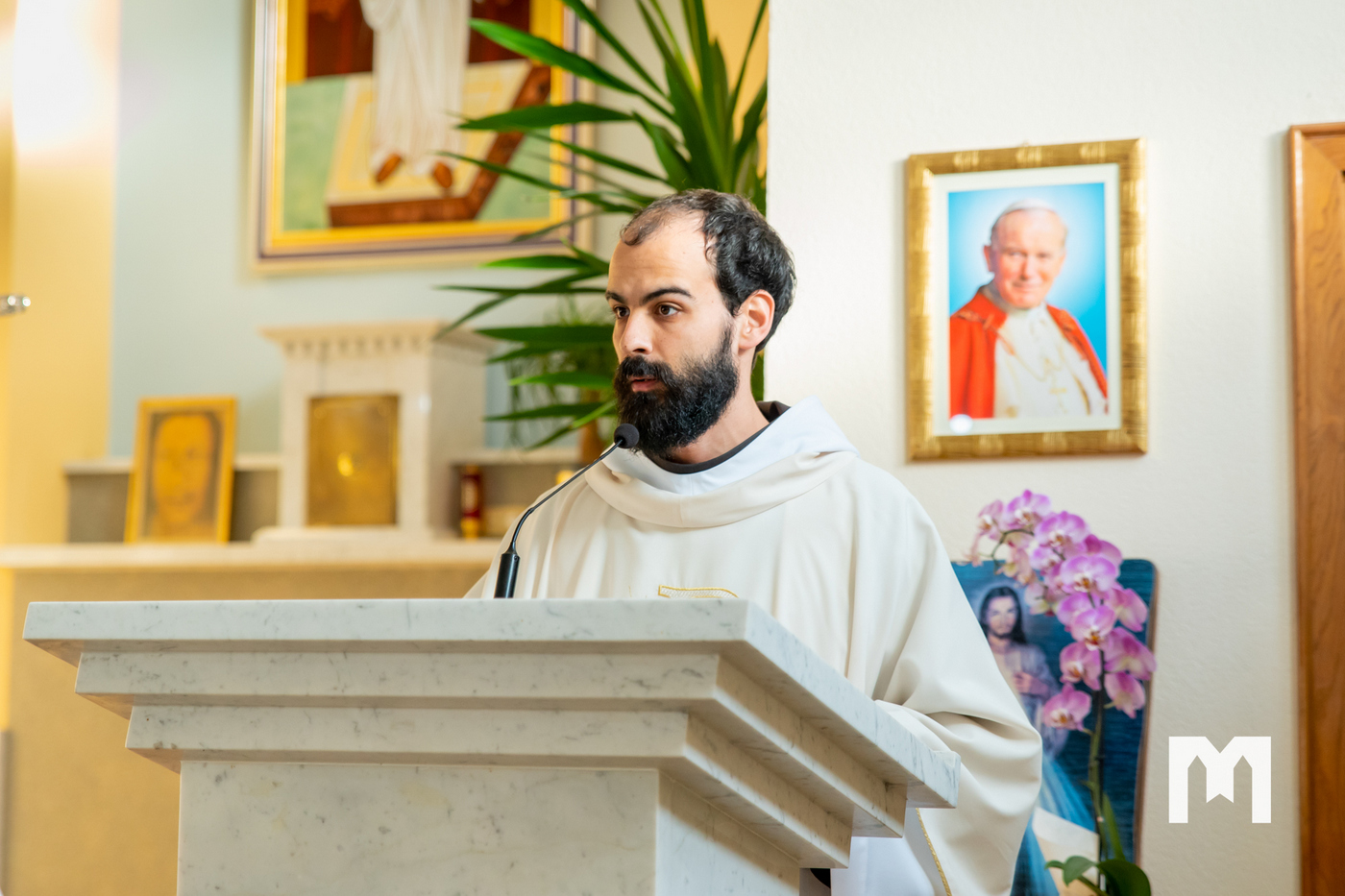 Župljanin Ljubo Jovanović govorio nam je o mjestu i njegovoj povijesti u kojoj je svoje mjesto našlo i štovanje Milosrdnog Isusa, te kako je crkva sagrađena 2000. godine, a iste te godine sv. Ivan Pavao II. je proglasio Faustinu svetom, a također te godine je proglasio i svetkovinu Božjeg Milosrđa. Govorio je i o povijesti slike Milosrdnog Isusa koja se nalazi u crkvi, a koja je bila presudna za kanonizaciju svete Faustine Kowalske. Kako se ta kanonizacija uz čudesno posredstvo slike Milosrdnog Isusa dogodila, te što su nam sve kazali hodočasnici jutros u Šurmancima, poslušajte u audiozapisu.