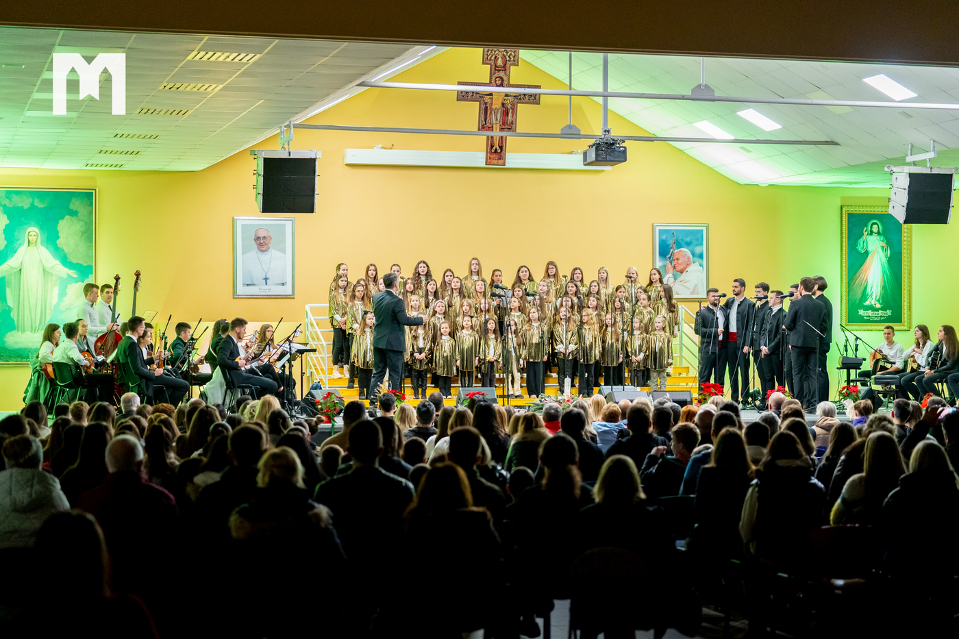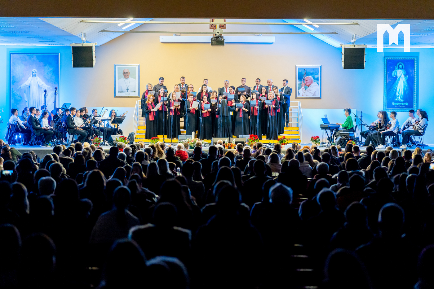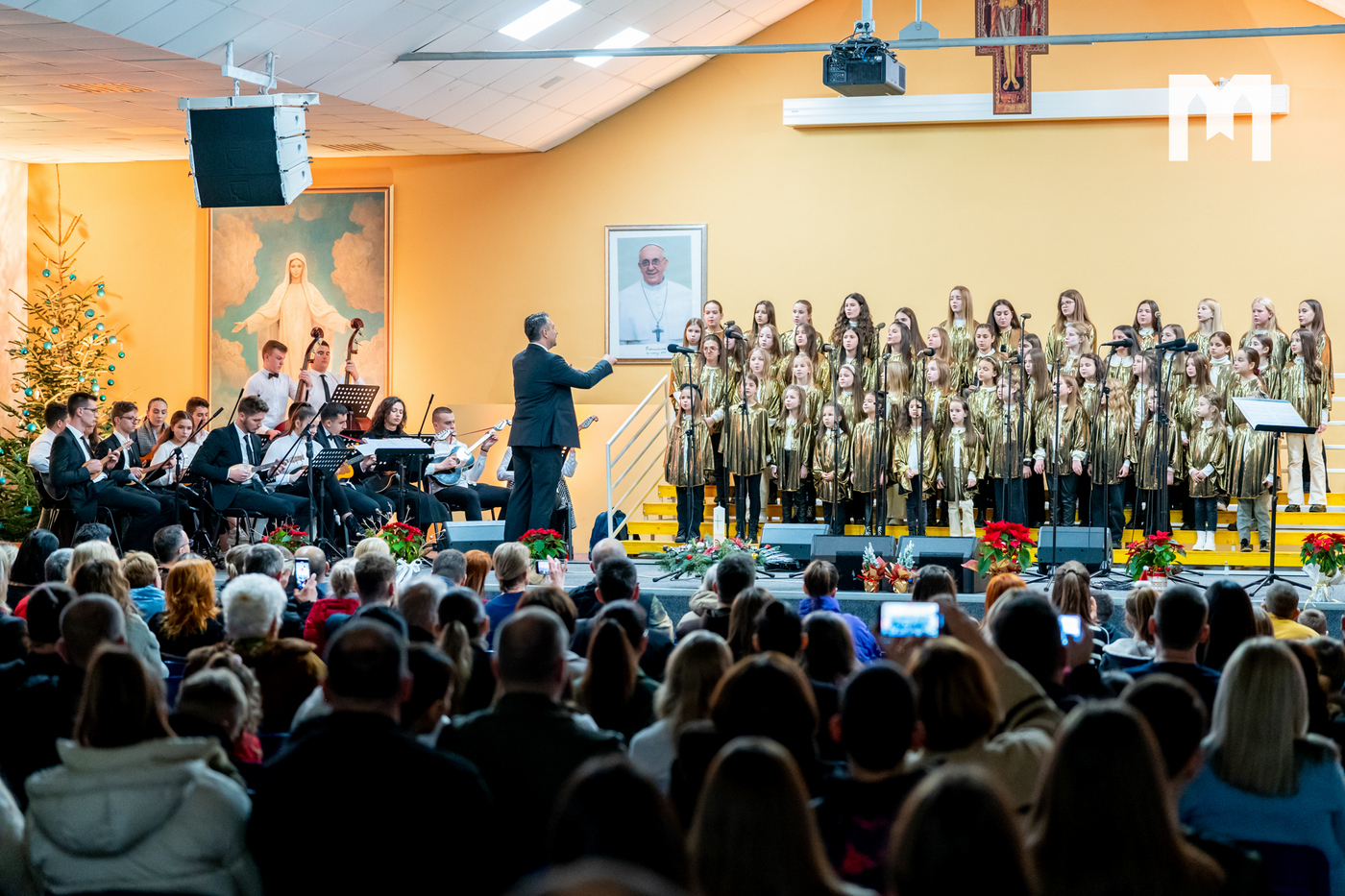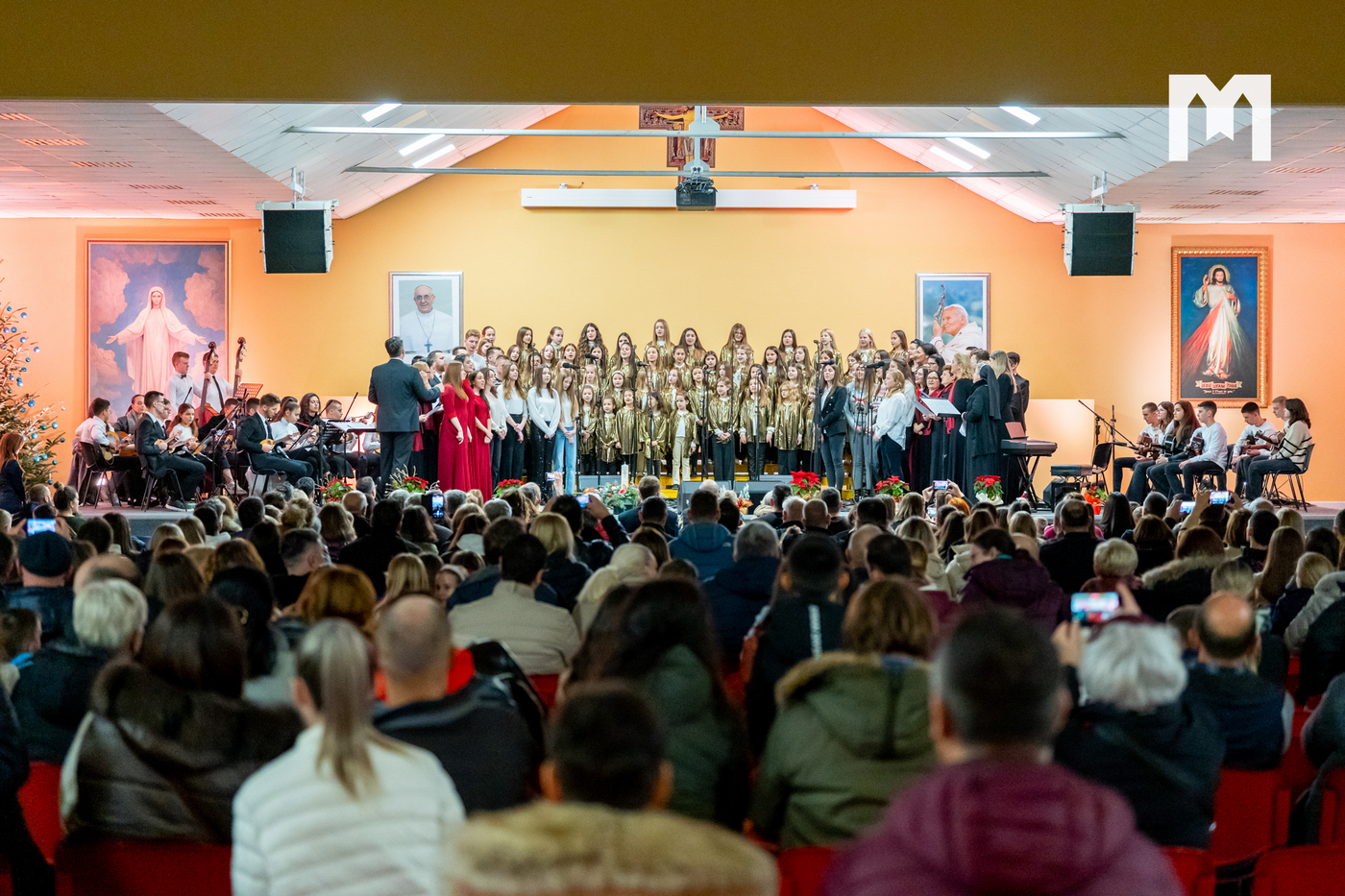 U četvrtak 29. prosinca u dvorani sv. Ivana Pavla II. u Međugorju održan je veliki svečani božićni koncert. Bio je to zapravo župni koncert na kojem su nastupili zborovi, sekcije i klape koji djeluju u međugorskoj župi. U prepunoj dvorani nastupili su veliki međugorski župni zbor „Kraljica Mira” i mali župni zbor „Golubići mira” koje vodi s. Irena Azinović, zatim glazbena sekcija Frame Međugorje, muška klapa „Concordia”, ženska klapa „Mir”, Tamburaški orkestar „Misericordia” iz Šurmanaca pod vodstvom profesora Davora Markote, gitaristi, te brojni solisti. Na početku večeri okupljenima se obratio međugorski župnik fra Zvonimir Pavičić koji je na početku svima zaželio sretan i blagoslovljen Božić, zahvalio se župljanima na velikom odazivu, a zatim im i uputio nekoliko riječi.