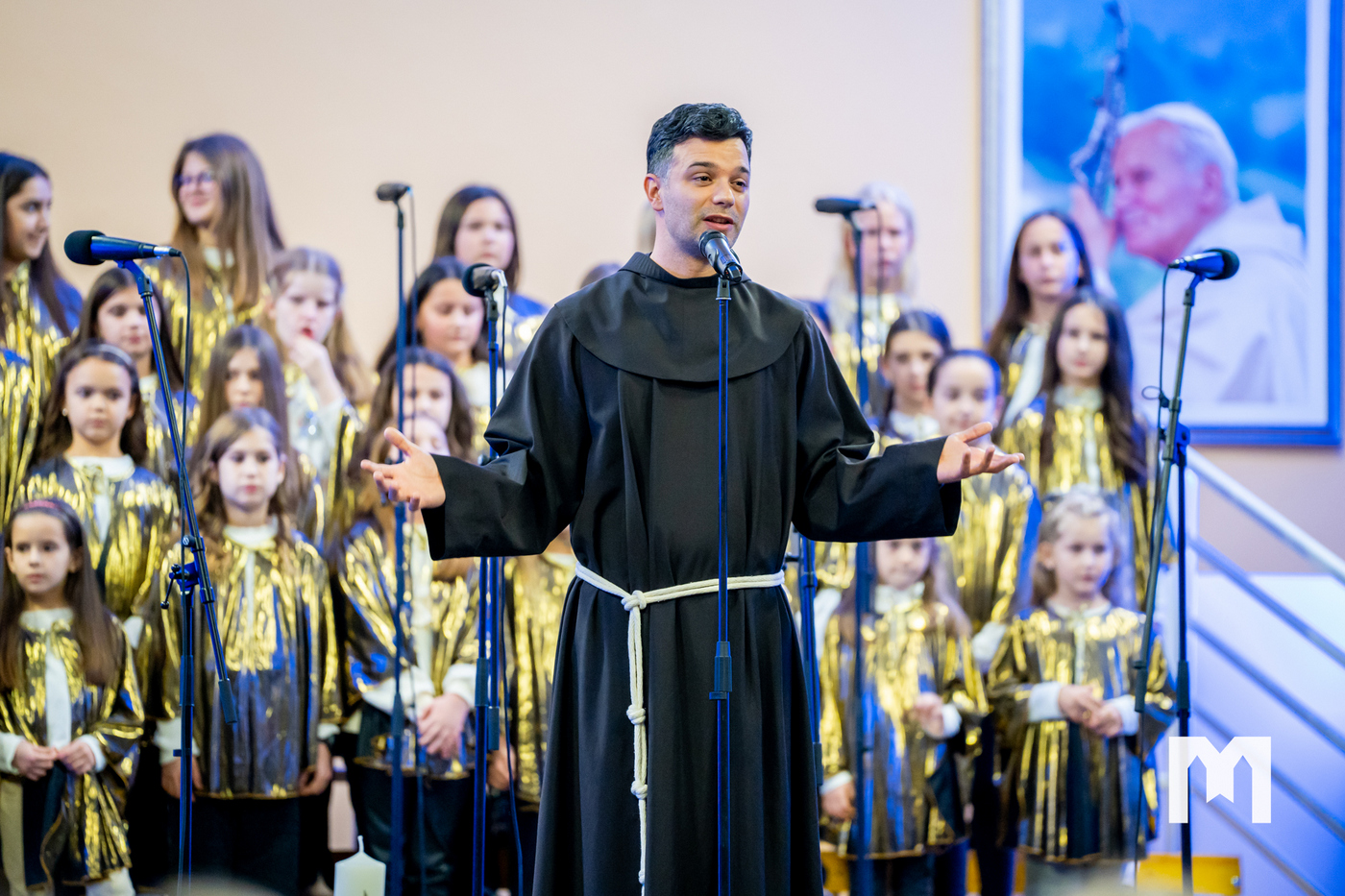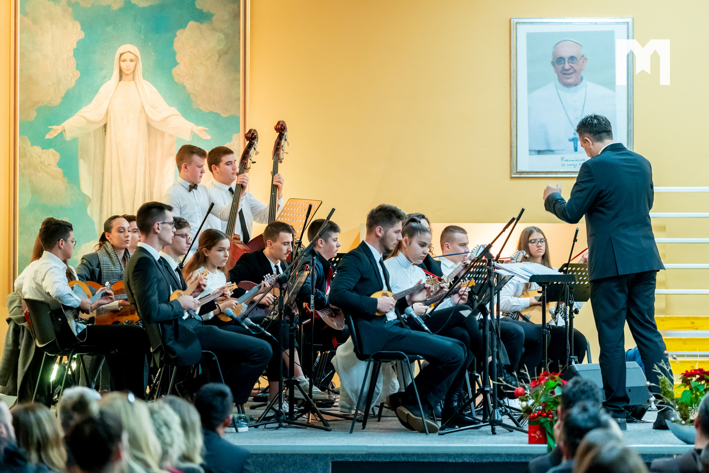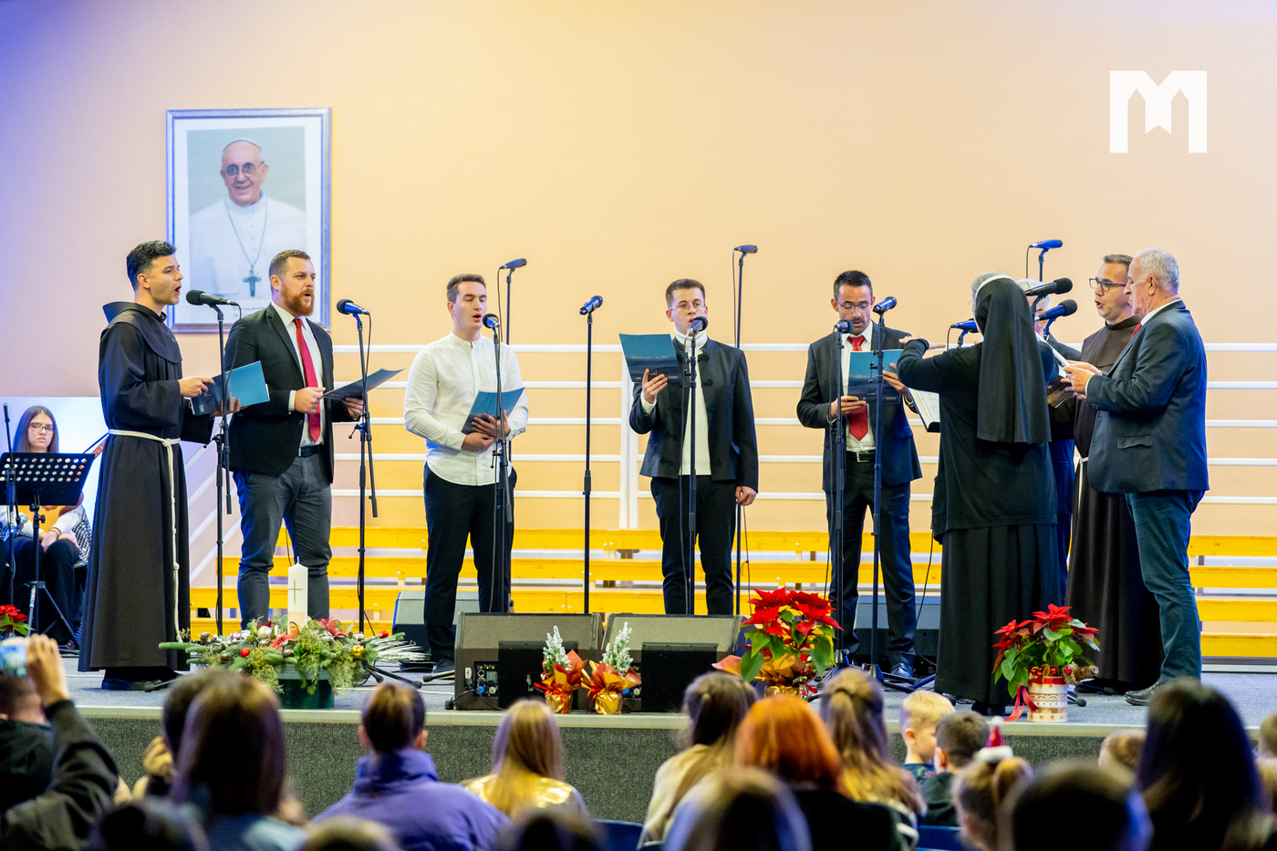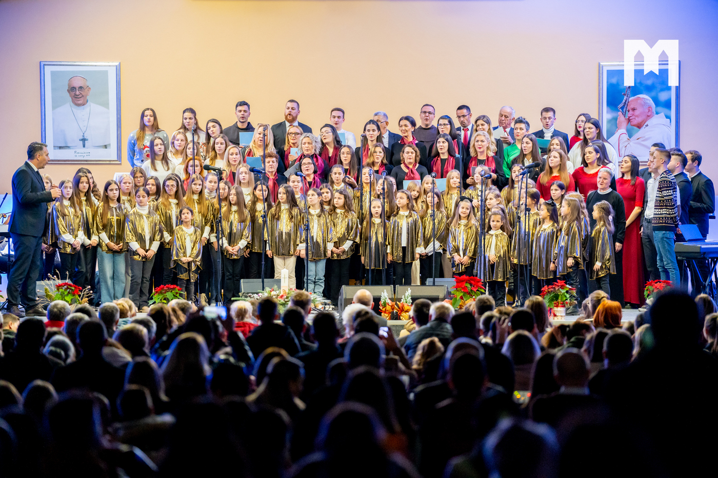 U četvrtak 29. prosinca u dvorani sv. Ivana Pavla II. u Međugorju održan je veliki svečani božićni koncert. Bio je to zapravo župni koncert na kojem su nastupili zborovi, sekcije i klape koji djeluju u međugorskoj župi. U prepunoj dvorani nastupili su veliki međugorski župni zbor „Kraljica Mira” i mali župni zbor „Golubići mira” koje vodi s. Irena Azinović, zatim glazbena sekcija Frame Međugorje, muška klapa „Concordia”, ženska klapa „Mir”, Tamburaški orkestar „Misericordia” iz Šurmanaca pod vodstvom profesora Davora Markote, gitaristi, te brojni solisti. Na početku večeri okupljenima se obratio međugorski župnik fra Zvonimir Pavičić koji je na početku svima zaželio sretan i blagoslovljen Božić, zahvalio se župljanima na velikom odazivu, a zatim im i uputio nekoliko riječi.