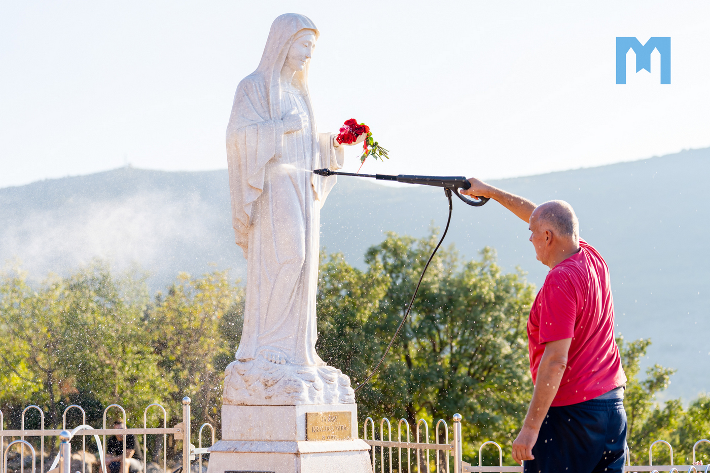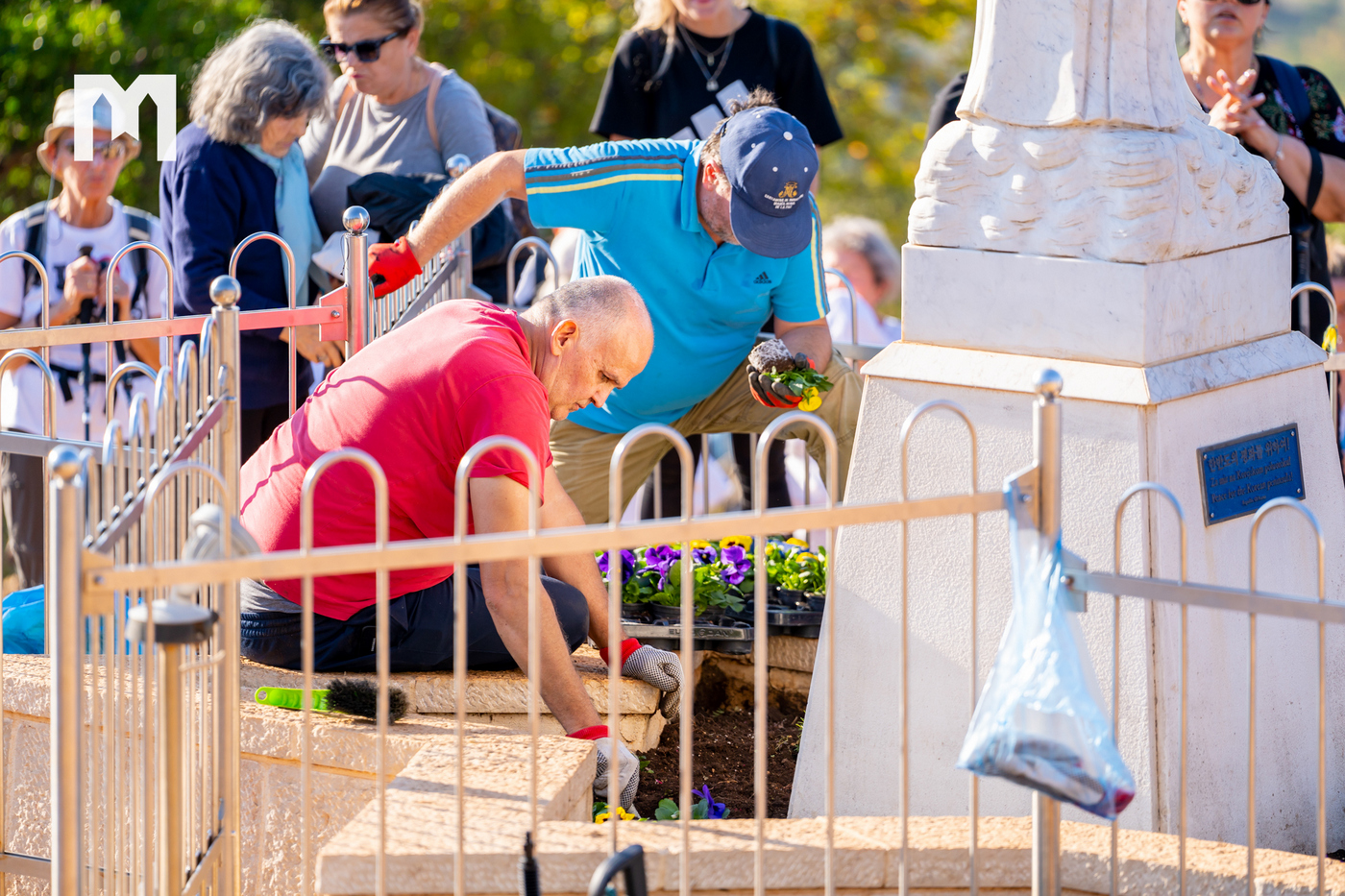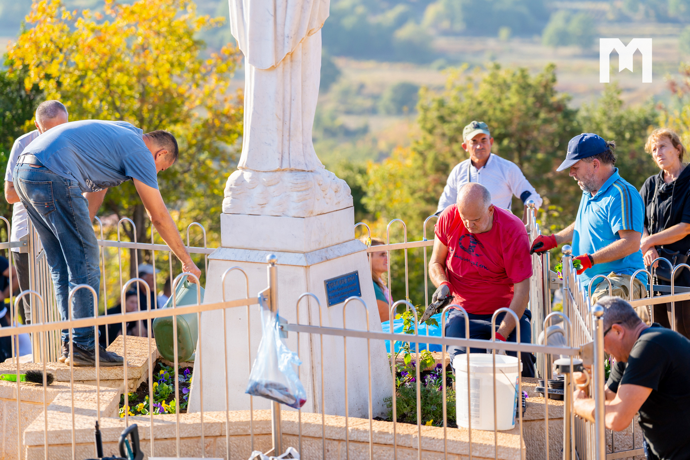 „Zadnji put kad smo sjedili gledali smo Gospin kip, a inače znamo kako odraditi posao oko cvijeća, no toga puta vidjeli smo područje oko kipa i sam kip kako su prljavi, što je i logično jer godinama sam kip kao kip nije čišćen. Tada smo došli na ideju da sa ovim akumulatorskim vodenim peračem, a koji se jako dobrim pokazao, očistimo Gospin kip, te kamen oko Gospina kipa. Kada smo vidjeli da je poslije toga kip bio prelijep i čist, sebi smo dali zadatak da to činimo i češće s vremena na vrijeme, kako bi Gospin kip izgledao onako kako bi i trebao izgledati. Bogu hvala, nama trojici, Borisu, Ini i meni je milost da možemo otići gore, zadržati se 3-4 sata, posaditi cvijeće, izmoliti koju krunicu, a osjećati se pored Gospe je milosno. Malo ću se našaliti i reći kako ovo cvijeće koje gore sadimo ima sreću u odnosu na ostale sadnice da ga je zapalo da bude baš kod Gospe”, kazao je Zvonimir, te još jednom naglasio da je Udruga uvijek spremna pomoći za što god treba vezano za održavanje Brda ukazanja i čišćenja Gospina kipa, a nadaju se da će se jednom naći i trajno rješenje oko vode i zalijevanja cvijeća oko Gospina kipa jer se to do sada uvijek radilo ručno.