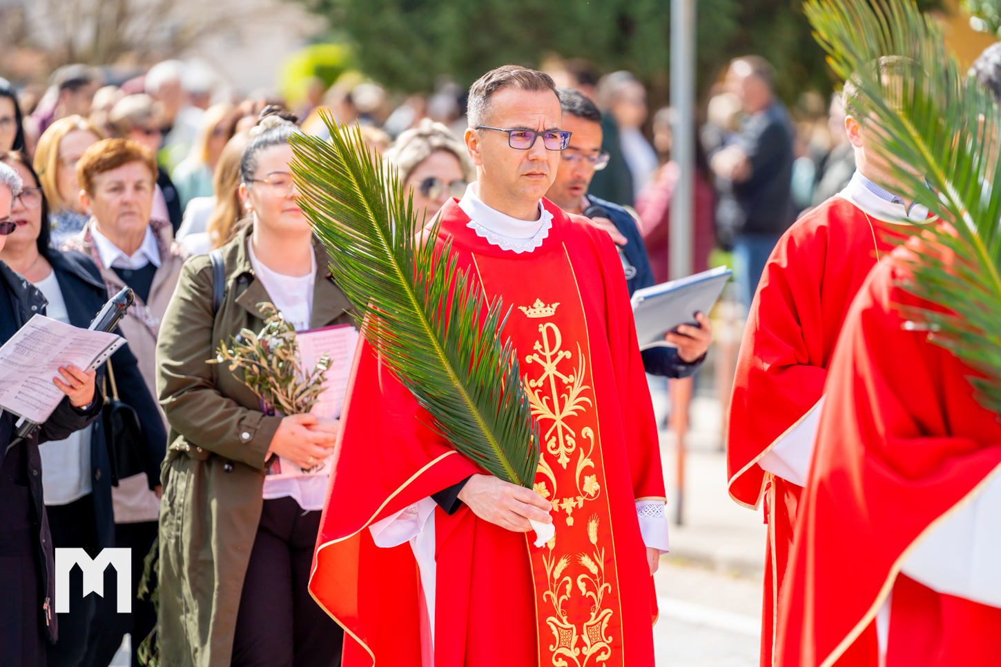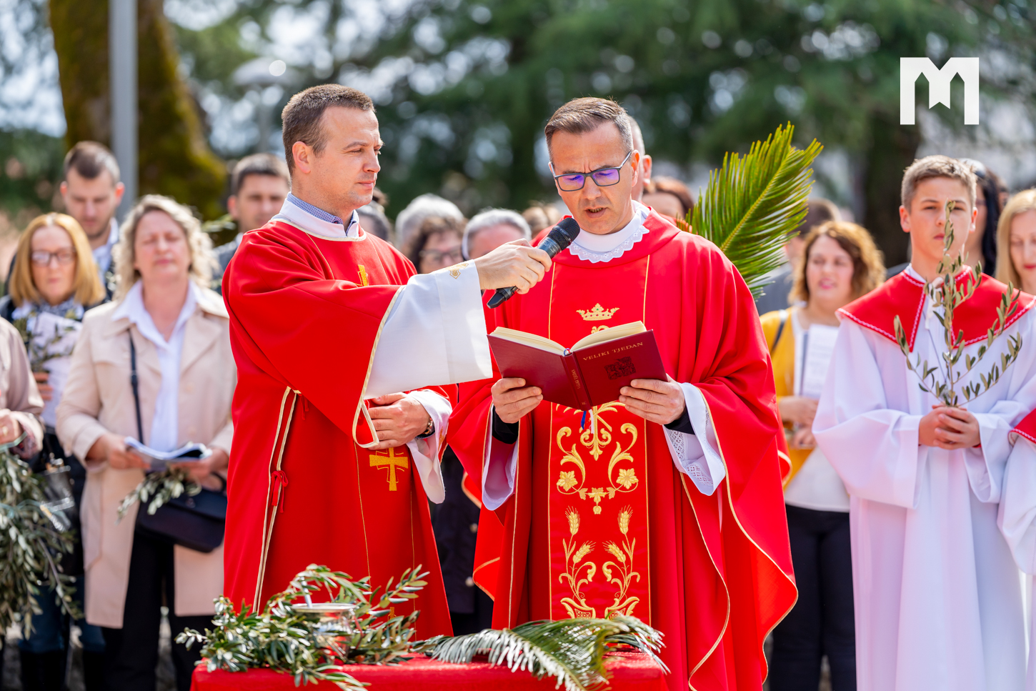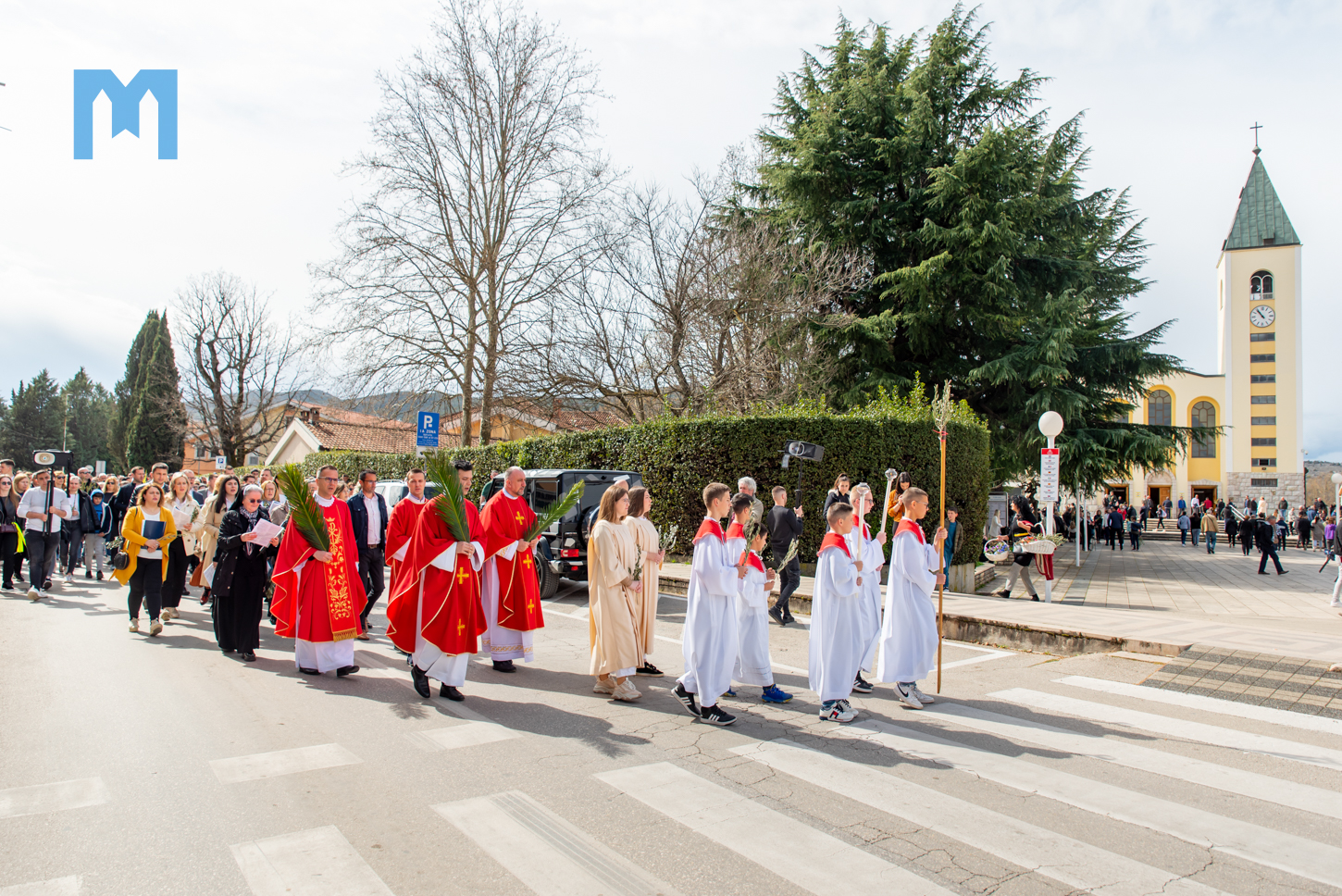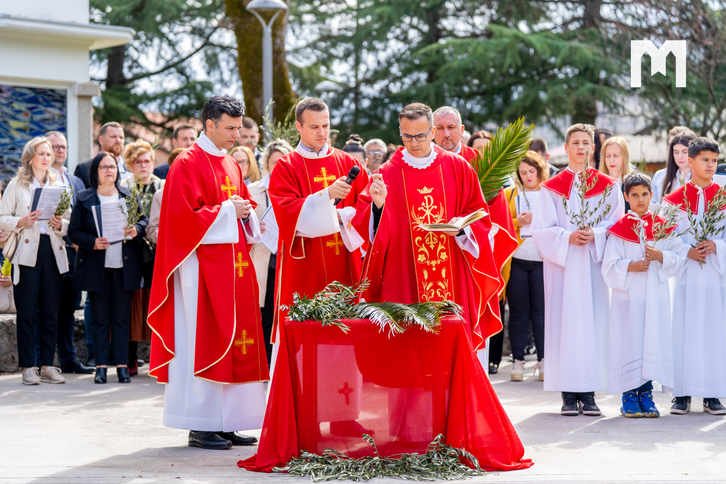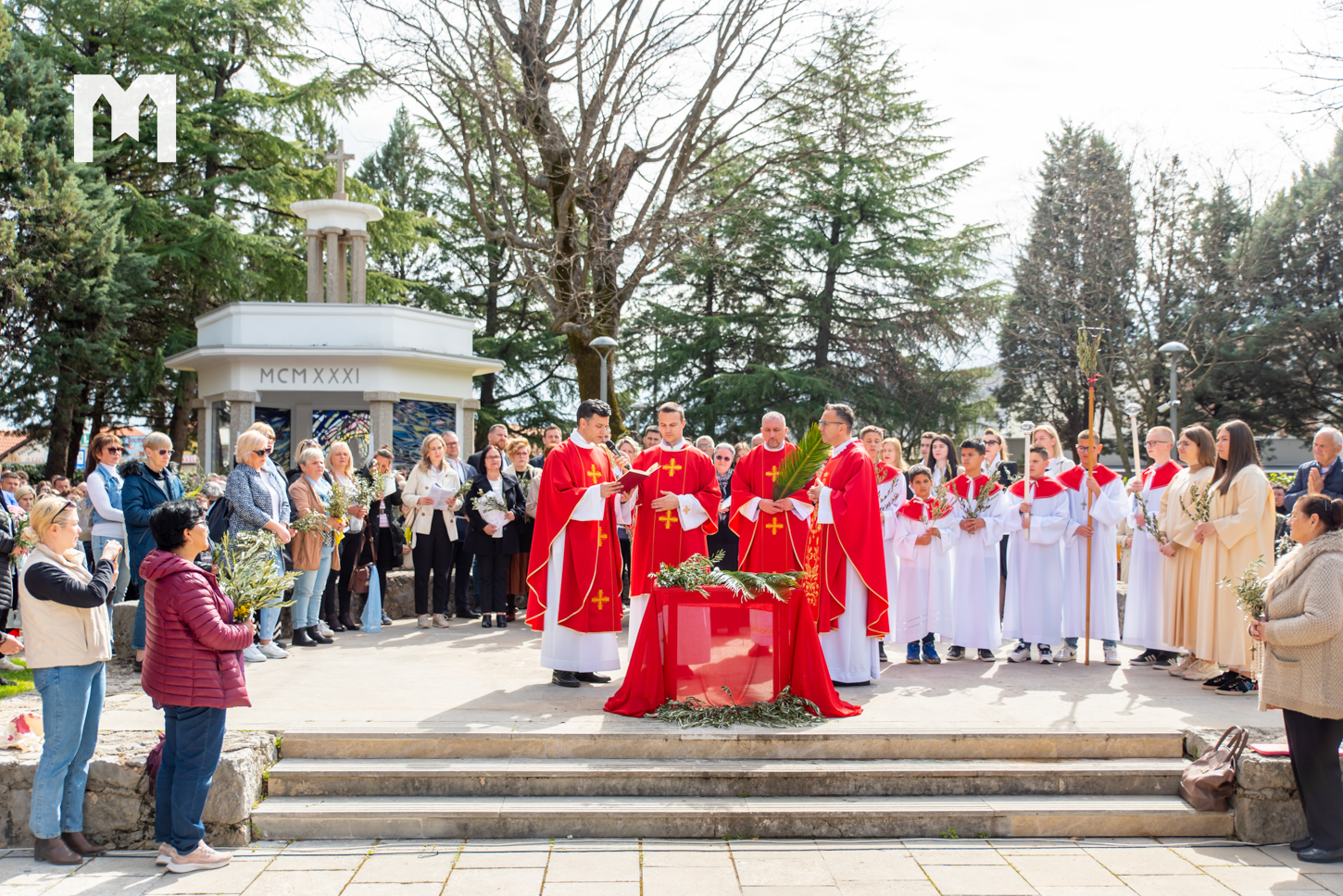 Danas je u Međugorju svečano proslavljena Cvjetnica – Nedjelja Muke Gospodnje, kojom smo ušli u Veliki tjedan. Obred blagoslova grančica bio je na temeljima stare crkve u 10:45 sati, odakle su se svećenici, župljani i brojni hodočasnici u procesiji uputili prema vanjskom oltaru crkve sv. Jakova gdje je u 11 sati proslavljena svečana sveta misa. Svetu misu predslavio je međugorski župni vikar fra Jure Barišić uz koncelebraciju međugorskog župnika fra Zvonimira Pavičića i drugih svećenika. Muku Gospodina našega Isusa Krista pjevali su fra Jure Barišić i fra Zvonimir Pavičić uz članove međugorskog župnog zbora „Kraljica Mira” koji djeluju pod vodstvom s. Irene Azinović. Prigodnu propovijed kazao je đakon fra Marin Mikulić koji je istaknuo da smo u današnjem obredu blagoslova grančica čuli poklike iz Matejeva evanđelja „Hosana sinu Davidovu, blagoslovljen koji dolazi u ime Gospodnje”, a samo nekoliko minuta poslije u Muci po Mateju čuli smo „Raspni ga, raspni”.