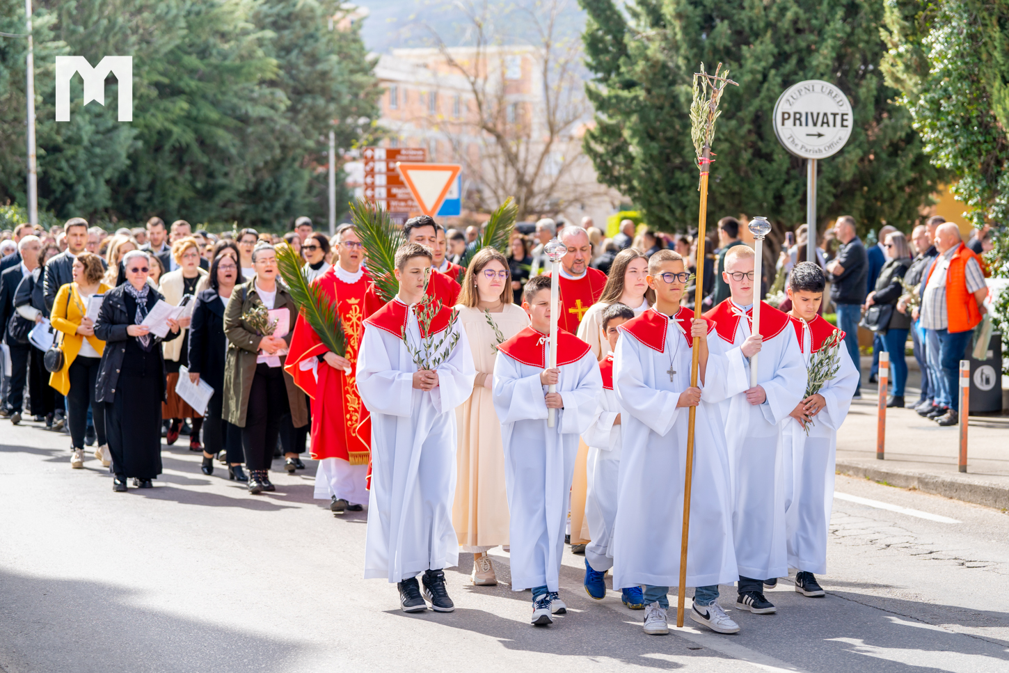 „Muka i smrt Kristova je put do sreće, do pobjede nad našim grijehom i pobjede nad zlom. Stoga nas Isus i poziva da uzmemo svoj životni križ i da ga poput njega nosimo do kraja, jer je u križu jedino spas. Braćo i sestre, možda nas Muka koju smo čuli danas na Cvjetnicu potakne da više ne griješimo, te da počnemo cijeniti neizmjernu Kristovu žrtvu za sve nas. Možda ćemo ozbiljnije shvatiti riječi ‘Bože moj, Bože moj, zašto si me ostavio?’, ali kao riječi upućene od Boga nama ‘Čovječe, čovječe, zašto si me ostavio?’. Ako tako ga često ostavljamo i tako ga se često puta zastidimo, pokušajmo danas biti ponosni što smo uz njega, ne bježati od njega i ne skrivati se u strahu što je Isus pogledao u trenutku naše izdaje, što je upravo baš nas pogledao. On nam pruža novu šansu. Iskoristimo je. Pokajmo se i krenimo za Isusom, jer poslije Velikoga petka i muke dolazi Uskrs”, kazao je fra Marin Mikulić u svojoj propovijedi.