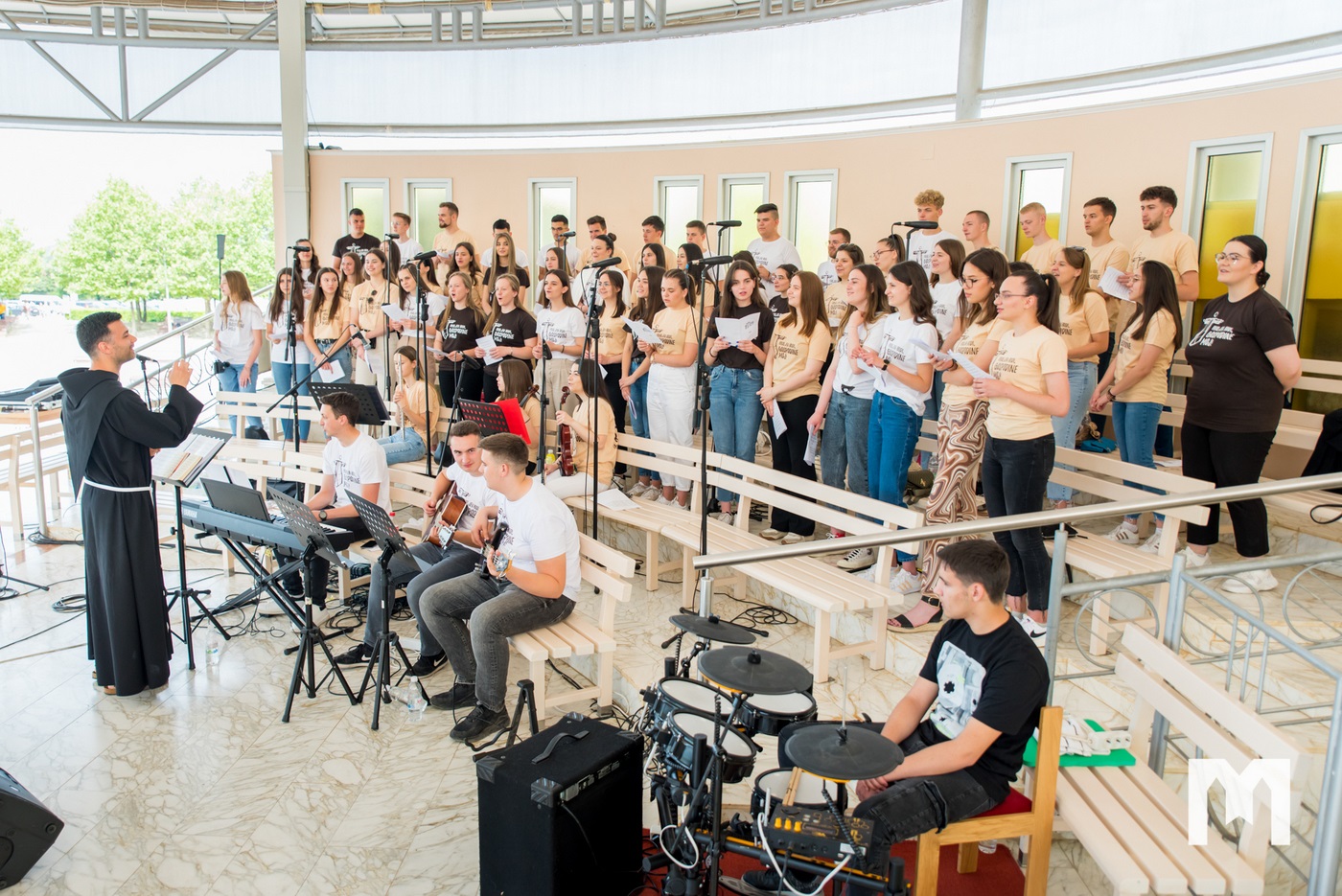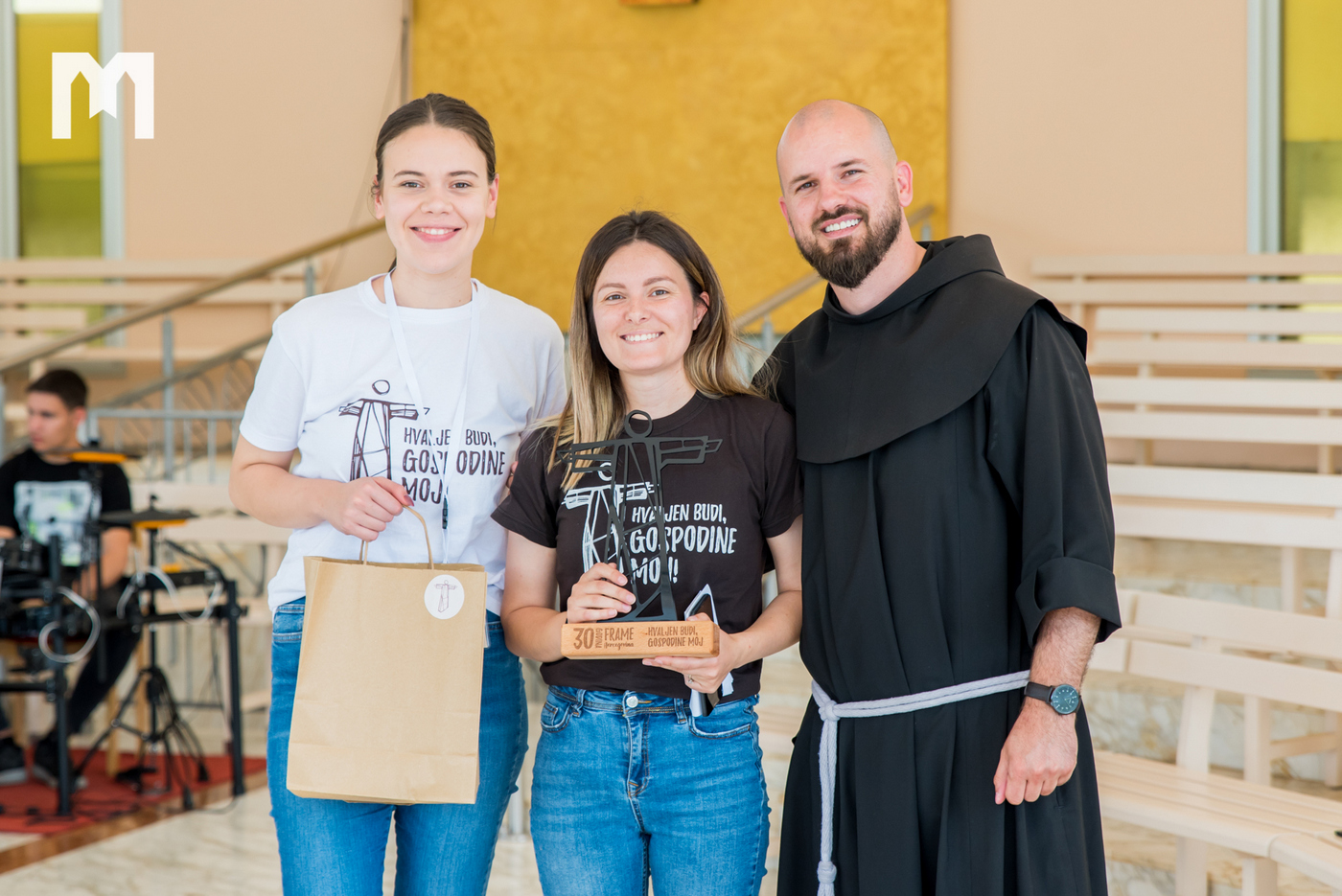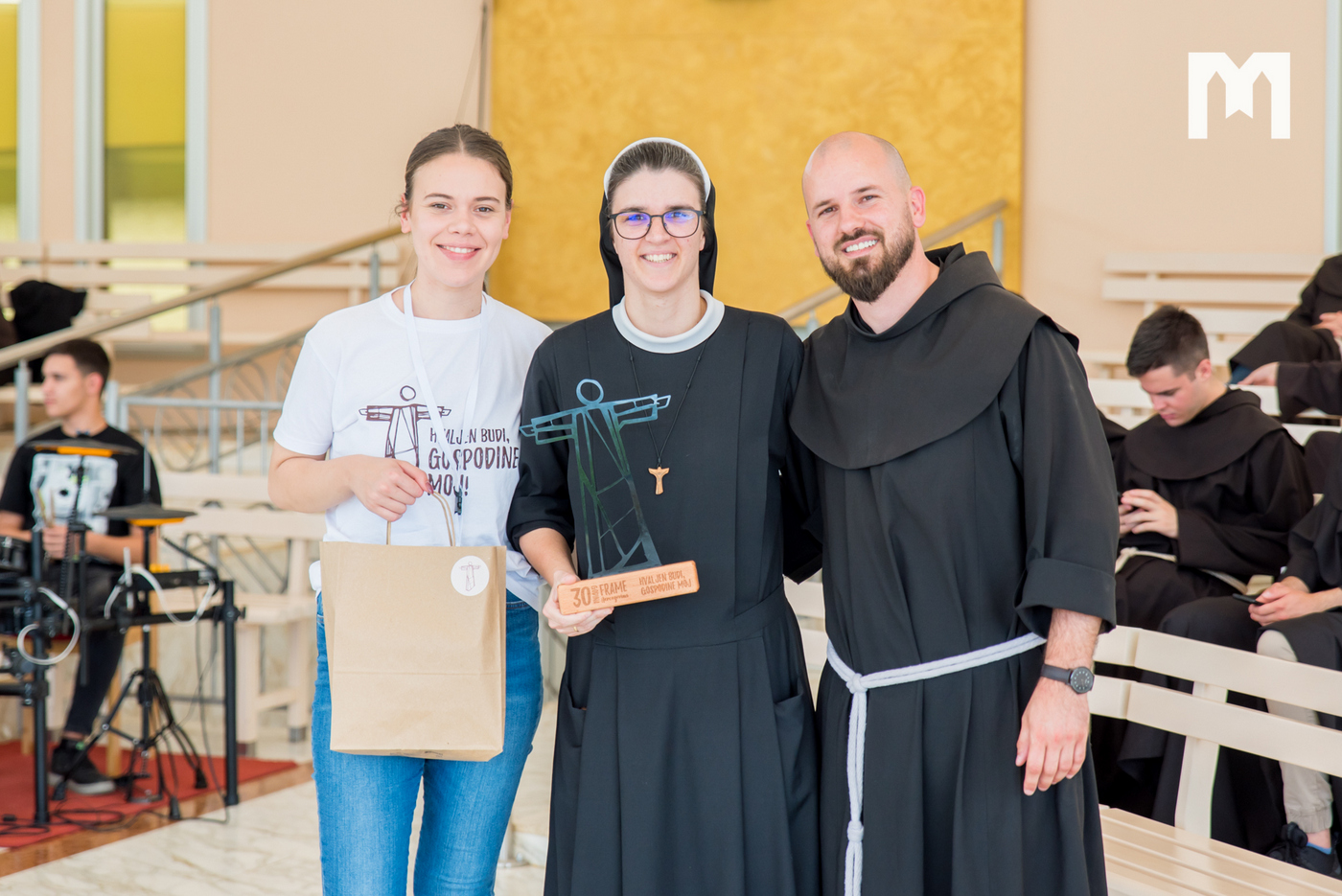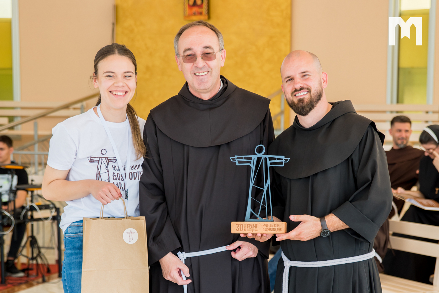 Svaka proslava je nezamisliva bez glazbenog dijela, a Frama kao tvornica talenata posebno se može pohvaliti onim glazbenim talentom. Iz tog talenta nastao je i zbor Frame Hercegovina koji je danas pod ravnanjem fra Zvonimira Pavičića animirao cjelodnevni program izvodeći himnu proslave „Hvaljen budi, Gospodine moj“ što je i samo geslo cjelokupne proslave. Majice, privjesci, bookmarkeri, monografija 30 godina Frame, te CD izdan baš za ovu prigodu su dokaz koliko su se framaši dali za organizaciju današnjeg dana, a da bi sve ovo danas bilo moguće netko je trebao i sve započeti. O početcima Frame u Hercegovini govorio je fra Mladen Vukšić koji je prvu Framu osnovao na Humcu 1992. godine i od tada gleda plodove koje mladi donose. O tim plodovima, davanju i izgaranju za Gospodina kako je to činio sveti Franjo u svojoj katehezi govorio je fra Sretan Ćurčić, nekadašnji područni asistent Frame. Nakon njega o svom putu u Frami posvjedočila je Andrea Karlović, nekadašnja međunarodna koordinatorica, ali i časna sestra Matija Pačar koja nam je približila molitvu Franjevačke mladeži s kojom je završio prvi dio programa.