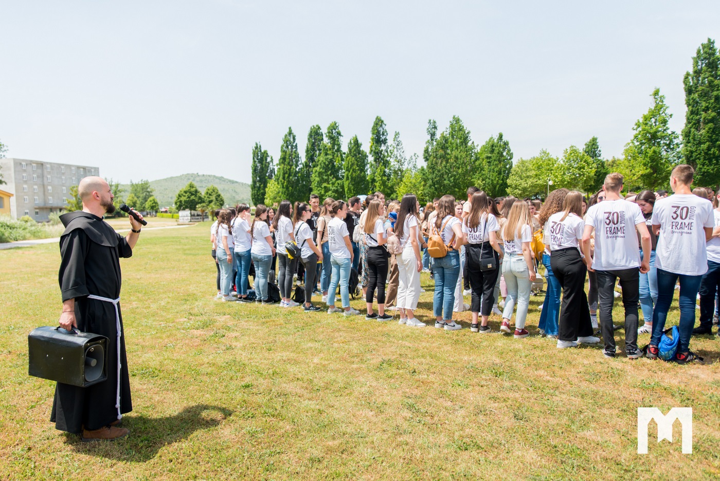 „Mir vam i dobro, i dobrodošli u Međugorje, pod Gospin plašt, na ovu jedinstvenu proslavu 30 godina postojanja Franjevačke mladeži u Hercegovačkoj franjevačkoj provinciji Uznesenja Blažene Djevice Marije“, riječi su kojima su voditelji jutarnjeg dijela programa Zdravka Šego i Josip Vasilj započeli proslavu. Prepoznatljiva franjevačka radost mlade na ovim prostorima oduševljava, okuplja i pokreće punih 30 godina, a to je postalo vidljivo već od samog jutra kad su se rijeke mladih iz cijele Hercegovine u bijelim, bež i smeđim majicama počele okupljati ispred vanjskog oltara crkve sv. Jakova. Međugorski župnik fra Marinko Šakota kao domaćin ovog susreta pozdravio je mlade, te im zaželio dobrodošlicu, a to isto su učinili i Ana Marija Nuić, područna predsjednica te fra Marin Karačić, područni duhovni asistent Frame Hercegovina. Oko jednoga su se svi složili: Sažeti sve lijepe stvari, značajne događaje, uspomene i vrijedne projekte je jako teško, zato su pozvali sve prisutne da u zajedništvu zahvale za sve što je iza njih, da se raduju i mole za sve one dane i nove ljude kojima će prepustiti Framu. Kolika je važnost ovog događaja za cijelu Hercegovinu govori i činjenica da je svoje čestitke i pozdrave videoporukom uputio i generalni ministar fra Massimo Fusarelli rekavši: „Hvaljen budi, Gospodine moj po Frami Hercegovini. Hvaljen budi po svemu dobrome u toj zemlji koja je upoznala nasilje rata i ugnjetavanje slobode; hvalimo Gospodina za sve dobro, za nadu u budućnost što je preko Frame sijao i što još sije. Hvalimo Gospodina, jer iz Frame Hercegovina, znam, dolaze mnoga zvanja: za brak, za kršćanski život i za posvećen život. Život je poziv. Želim da odgovorite i živite taj poziv s velikom radošću.”