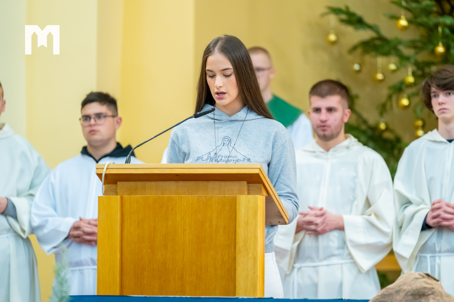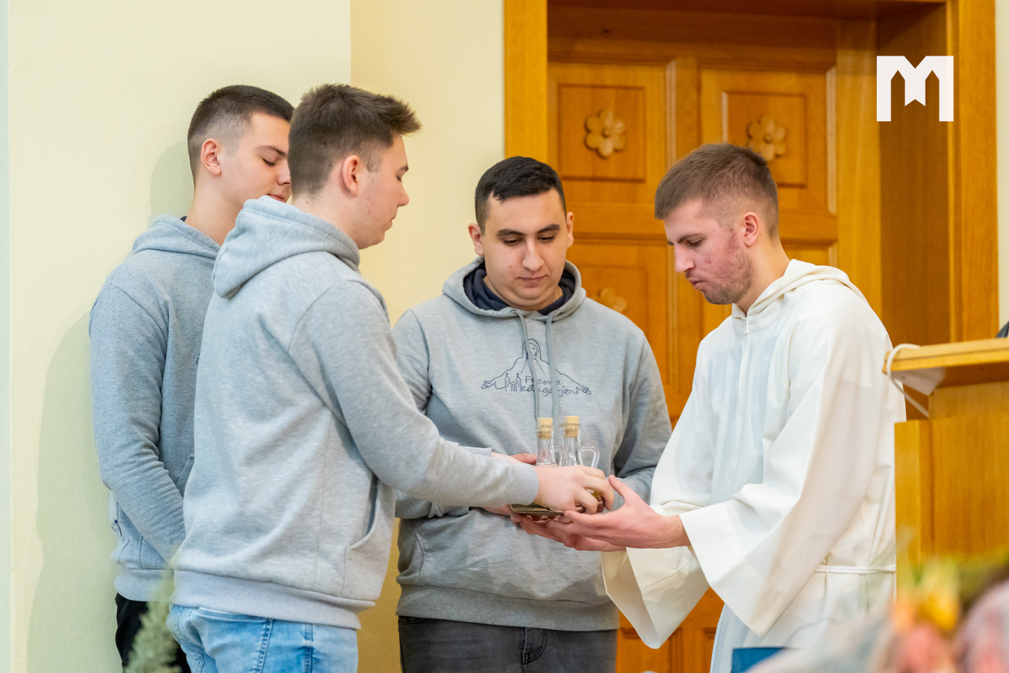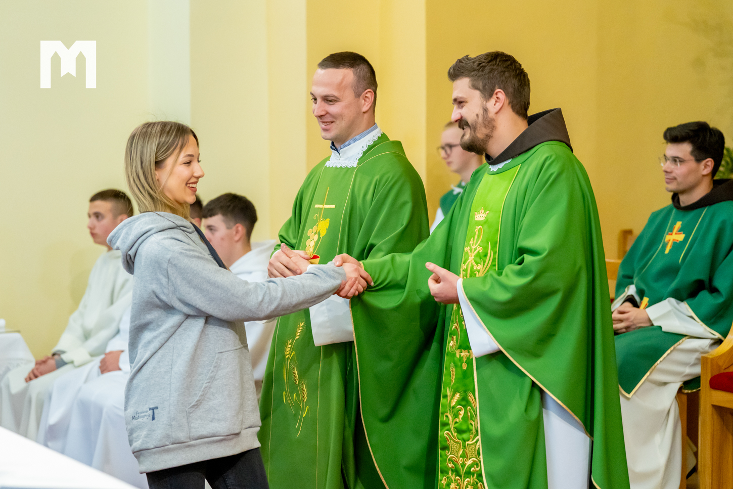 E upravo On je razlog naše radosti, upravo On je razlog našega klicanja i zato ćemo im svoja srca pripraviti za susret s njim. Otvorimo mu svoja srca, predajemo mu svoje slabosti. On je ona je koji nas može izliječiti, koji nas može ozdraviti, koji nas može osloboditi… Ali traži iskreno srce, srce koje se ne boji reći: ”Slab sam, trebam te”, kazao je na početku mise fra Jozo Hrkać, a u svojoj se propovijedi osvrnuo na kako je rekao ”četiri momenta iz evanđelja”, povezao ih sa svetim Franjom i današnjim vremenom kako bi ih približio ovim mladim ljudima.