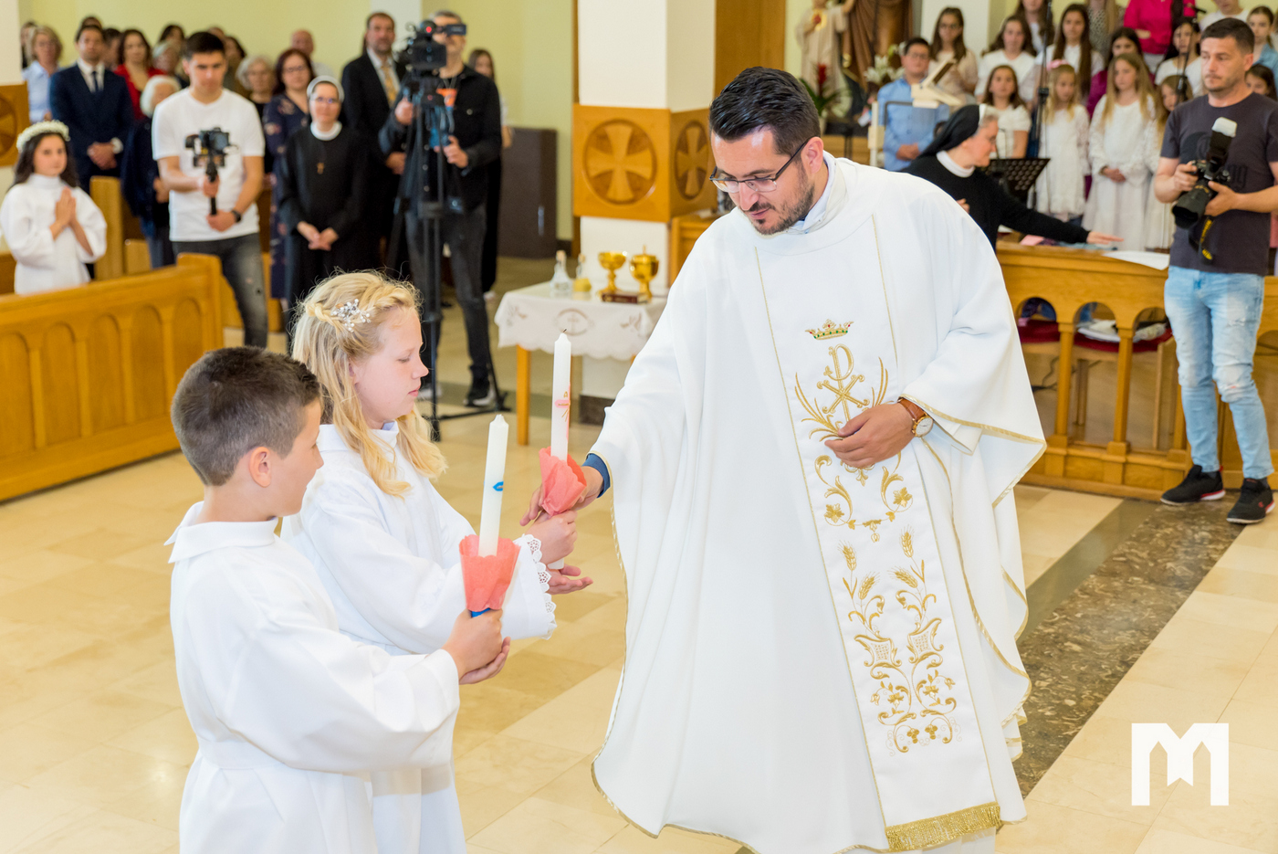 U crkvi sv. Jakova u Međugorju danas je na svetoj misi u 10 sati sakrament prve svete pričesti primilo 60 djece, 30 dječaka i 30 djevojčica. Prvu svetu pričest podijelio je fra Antonio Primorac, a u koncelebraciji je bio fra Goran Azinović, župni vikar župe Krista Kralja u Čitluku. Svečano slavlje obogatili su svojim pjevanjem članovi dječjega zbora “Golubići mira” pod ravnanjem časne sestre Irene Azinović, a u crkvi su uz prvopričesnike bili njihovi roditelji i rodbina. Fra Antonio se u kratkoj propovijedi osvrnuo na današnje evanđelje, te naglasio kako je Isus naš Dobri Pastir, a mi da smo ovce njegove. Nakon toga uslijedio je sam čin dijeljenja prve svete pričesti.