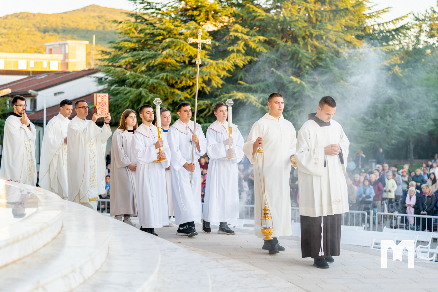 Danas Crkva slavi svetkovinu svetog Franje Asiškoga, velikog sveca i utemeljitelja triju franjevačkih redova. Tako su se danas u Međugorju slavile svete mise u 8 i 18 sati. Večernju svetu misu u 18 sati na vanjskom oltaru crkve sv. Jakova u Međugorju pred mnoštvom hodočasnika i župljana predslavio je ovogodišnji mladomisnik fra Ivan Hrkać, župni vikar u Međugorju. U koncelebraciji su bili međugorski župnik fra Zvonimir Pavičić i brojni drugi svećenici. U prigodnoj propovijedi fra Ivan Hrkać je govorio o životu i djelu sv. Franje Asiškoga, te kako je on živio i bio najveći siromah ostavivši sve poradi Krista.