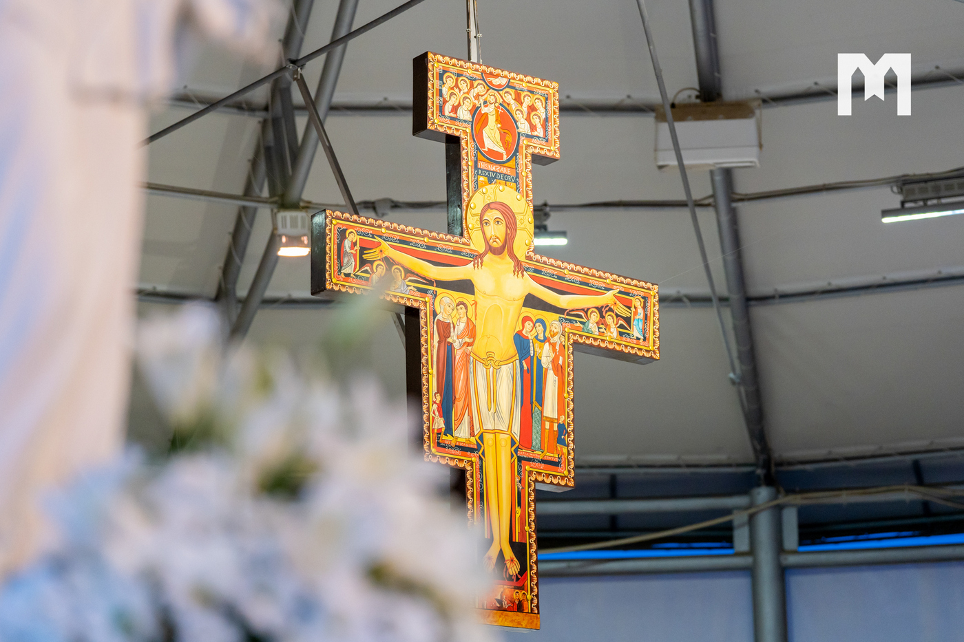 „Oči svetog Franje jednoga dana zamjećuju jednu malu crkvicu sv. Damjana koja je porušena i njegove oči dovode ga da uđe u tu crkvu. U toj crkvi nalazi se ovaj križ (kao u Međugorju na vanjskom oltaru), te se i danas u toj crkvi nalazi križ sv. Damjana. Kada je sveti Franjo svoje oči upro u Gospodina koji je na križu, začuo je glas: „Franjo, idi i popravi moju Crkvu koja se urušava”. Tek kad naše oči usmjerimo u Gospodina, kad svoju pozornost damo Gospodinu, tek tada možemo čuti koja je moja zadaća u ovom životu. I tu Gospodin progovara mom srcu i mojoj duši, tek kad sam se odmakao od svega – nepotrebnog. Tek tada Franjine oči koje su gledale gubavce, koje su znale za bolesne, tek tada primjećuje i njih. Tek tada njegove oči koje su navikle na mladenaštvo, zabave, moć i bogatstvo to primjećuju. Prvi put prilazi gubavcu, grli gubavca i ljubi ga. Njegove oči u gubavcu prepoznaju Isusa Krista, Onoga koji se toliko ponizio i postao čovjekom”, kazao je fra Ivan Hrkać, te završio propovijed riječima molitve svetoga Franje: