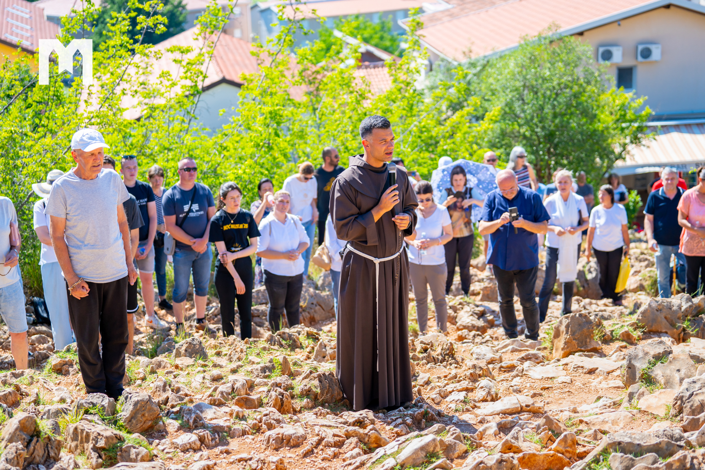 „Danas smo započeli prvi dan devetnice Kraljici Mira na Brdu ukazanja. Svaki dan molimo krunicu u 16 sati. Pozivamo sve župljane i sve vjernike koji mogu da dođu i da se odazovu. Iako je vruće, ipak možemo malo žrtve podnijeti i zahvaliti Gospodinu za sve milosti koje nam daruje u ovom svetom mjestu. U nedjelju započinjemo i devetnicu u crkvi, devetnicu Kraljici Mira, svaki dan molimo krunicu u 18 sati, a zatim slijedi euharistijsko slavlje u 19 sati. Misna slavlja će predslaviti svećenici koji su bili na službi u Međugorju ili koji su još uvijek ovdje na službi, tako da će i župljanima biti drago vidjeti one svećenike koji su nekada djelovali u ovoj župi. Odazovimo se na Gospin poziv i molimo, osobito sada u ove dane kada se pripremamo proslaviti trenutak i dan kada je Gospodin izlio obilnu milost na ovo mjesto”, kazao je fra Zvonimir Pavičić.