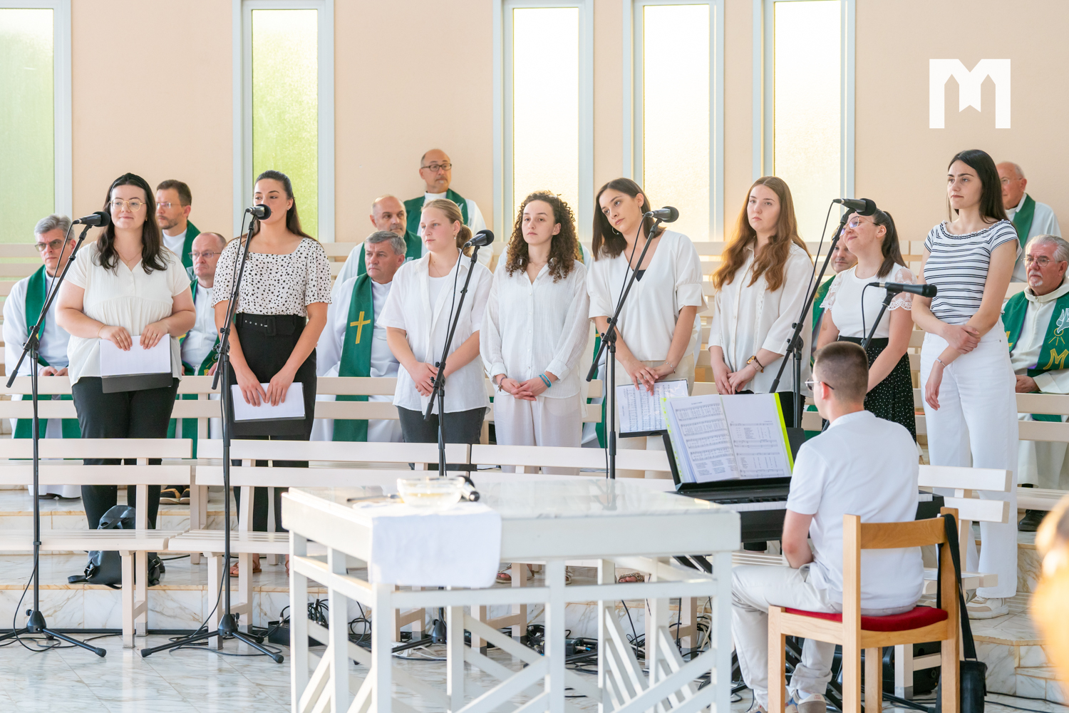 U utorak, 20. lipnja, petog dana Devetnice Kraljici Mira ususret 42. obljetnici Gospinih ukazanja u župi Međugorje, večernju svetu misu na vanjskom oltaru crkve sv. Jakova u Međugorju predslavio je fra Boris Barun uz koncelebraciju šezdesetak svećenika. Prije svete mise molitvu krunice predmolili su fra Slavko Soldo i župljani iz Međugorja, a pod svetom misom pjevali su članovi ženske klape „Mir” iz Međugorja. Osvrnuvši se na današnje evanđelje, fra Boris Barun je kazao kako svi mi znamo da nas Isus poziva da ljubimo jedni druge i općenito se slažemo lako sa takvom zapovijedi. Međutim, danas Isus želi da uđemo dublje u to otajstvo ljubavi.