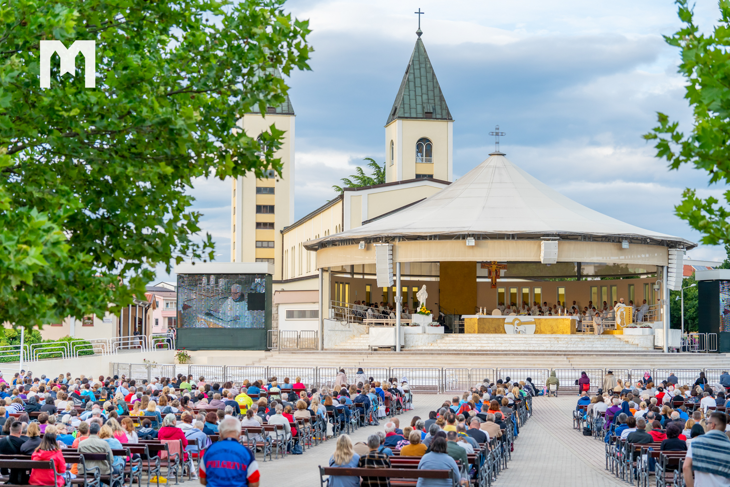 Danas na blagdan Presvetog Srca Isusova u crkvi sv. Jakova započela je devetnica Kraljici Mira ususret skorašnjoj proslavi 42. obljetnice Gospinih ukazanja u župi Međugorje. Od 18 sati molitvu krunice prije svete mise predmolili su fra Karlo Lovrić i župljani iz Miletine, a večernju svetu misu u 19 sati na vanjskom oltaru crkve sv. Jakova u Međugorju pred mnoštvom vjernika predslavio je fra Ivan Dugandžić, uz koncelebraciju brojnih svećenika, dok su svetu misu svojim pjevanjem uveličali članovi velikog župnog zbora “Fra Grga Martić” iz Posušja. Na početku svete mise fra Ivan Dugandžić podsjetio je vjernike da je današnja svetkovina Presvetog Srca Isusova ujedno i prvi dan Devetnice u čast Kraljice Mira o 42. obljetnici ukazanja.