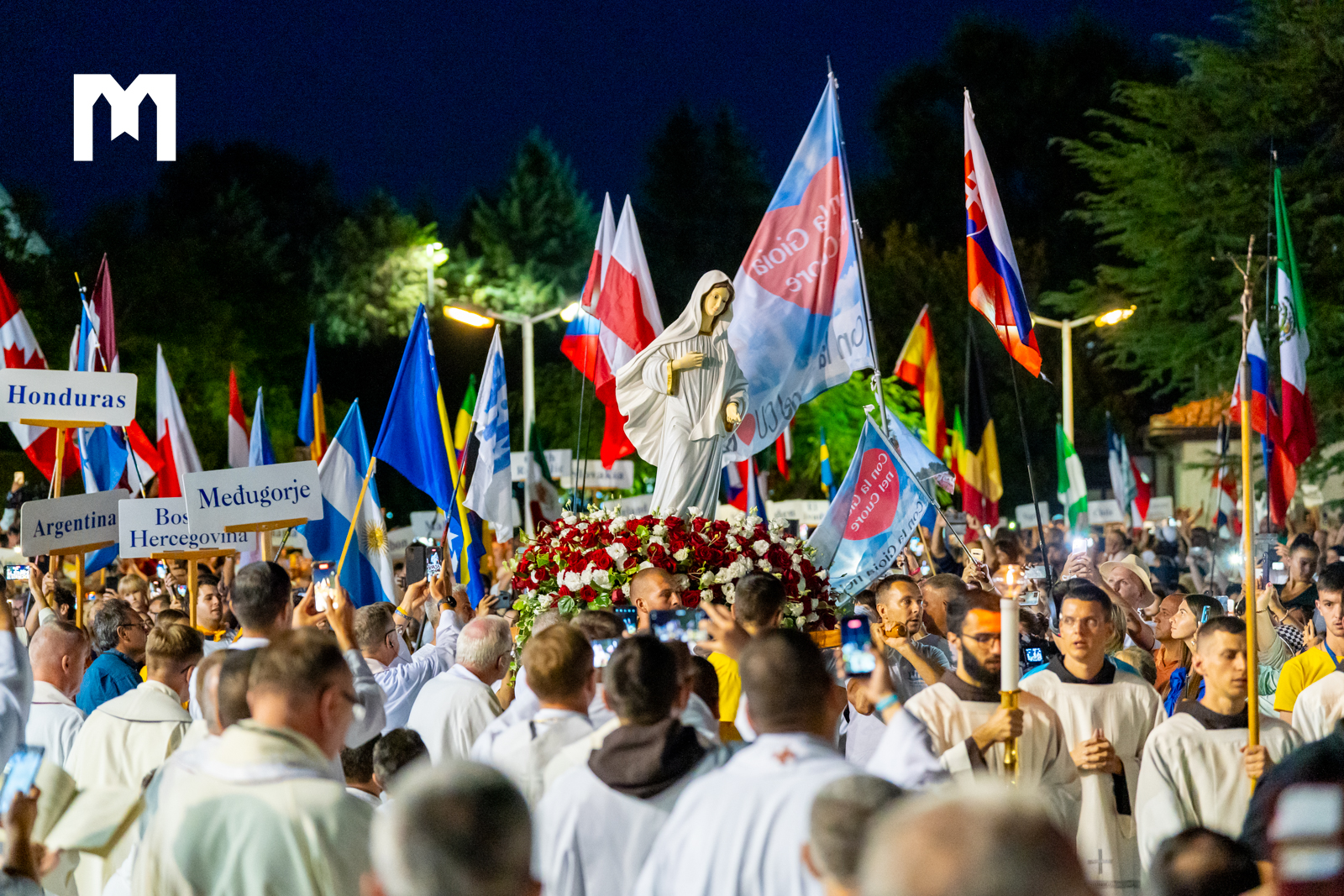 Drugi dan 34. Međunarodnog susreta mladih završen je procesijom s Gospinim kipom i klanjanjem pred Presvetim.