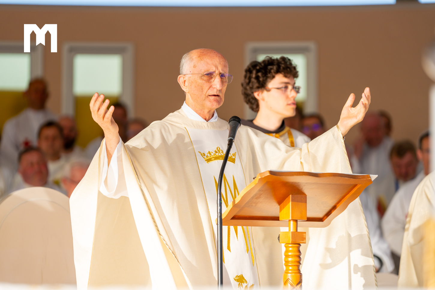 On je u Međugorju posljednjeg dana Devetnice Kraljici Mira, 24. lipnja na uočnicu 43. obljetnice Gospinih ukazanja i na svetkovinu Rođenja sv. Ivana Krstitelja predslavio večernju svetu misu na vanjskom oltaru crkve sv. Jakova pred tisućama župljana te domaćih i stranih hodočasnika i uz koncelebraciju 252 svećenika. Krunicu je od 18 sati predmolio fra Karlo Lovrić.