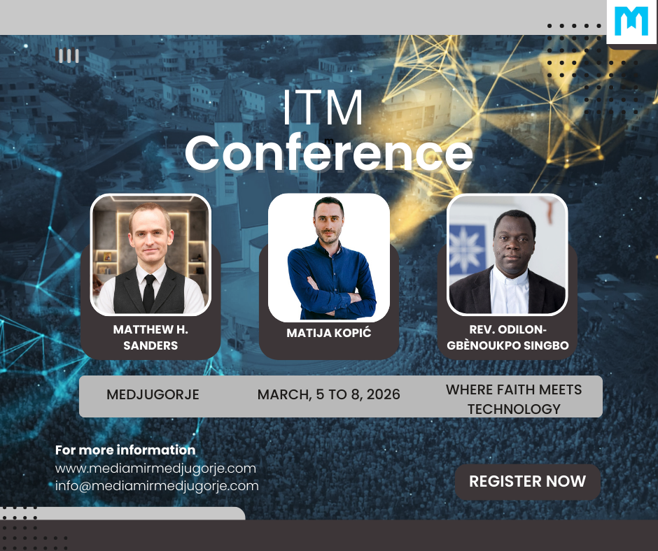 Međugorje će od 5. do 8. ožujka 2026. biti domaćin međunarodnog ITM Kongresa, jedinstvenog događaja koji okuplja stručnjake, inovativce i developere iz cijelog svijeta. Ovaj kongres spaja tehnologiju i duhovnost, istražujući kako suvremene tehnologije mogu služiti čovjeku i njegovom dostojanstvu u digitalnom dobu. Svi predavači već su potvrdili svoj dolazak, a mi zasad otkrivamo samo neka imena.