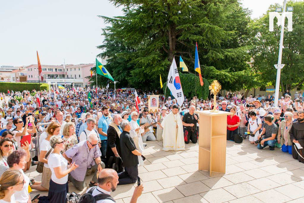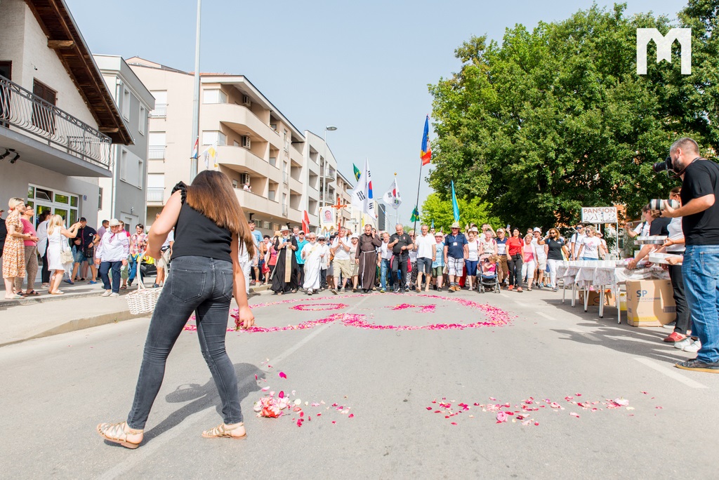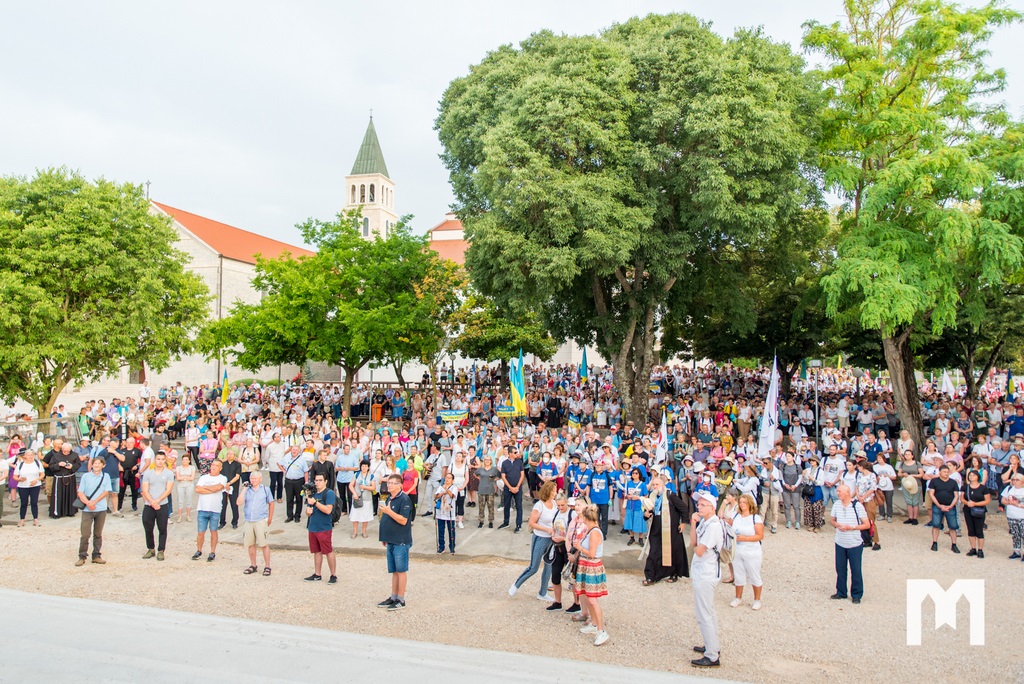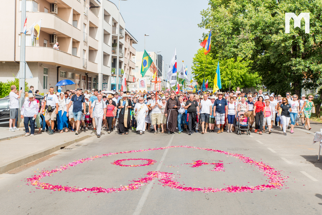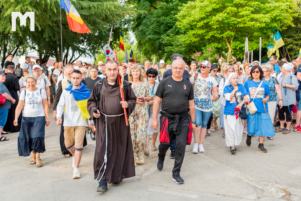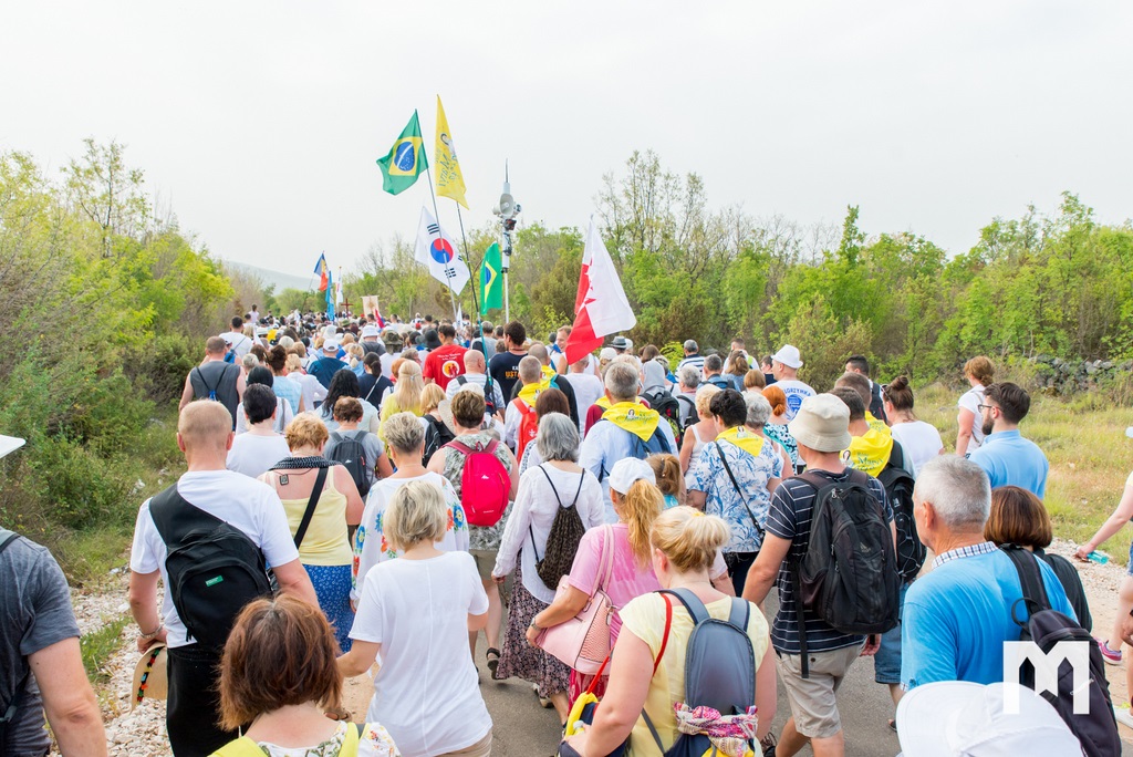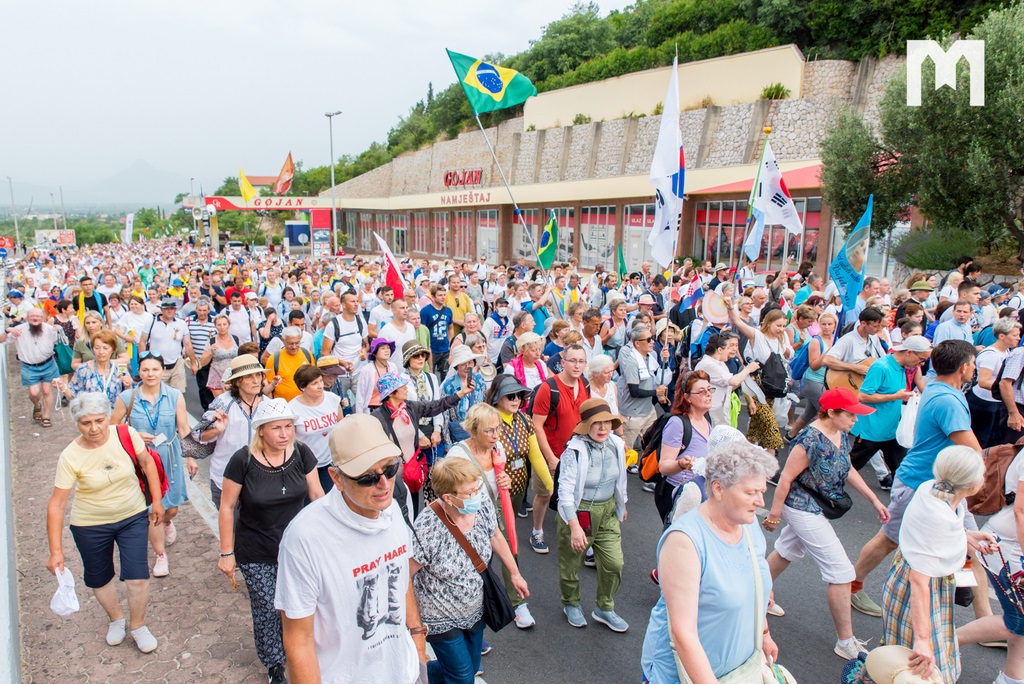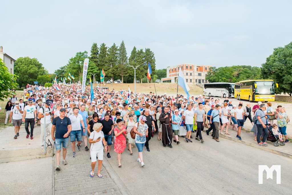 Tisuće hodočasnika iz cijeloga svijeta kao i župljani Međugorja i okolnih župa u impresivnoj koloni stigli su pred crkvu sv. Jakova u Međugorju u Hodnji mira koja je šest krenula ispred crkve sv. Ante na Humcu. Hodočasnike sa zastavama Brazila, Ukrajine, Hrvatske, Koreje, Francuske, Rumunjske, Austrije, Španjolske… na polasku je blagoslovio humački gvardijan fra Dario Dodig, kroz hodnju ih je vodio međugorski župnik fra Marinko Šakota, a pred crkvom sv. Jakova u Međugorju dočekao fra Zvonimir Pavičić, koji je na kraju Hodnje mira predvodio blagoslov s Presvetim oltarskim sakramentom.