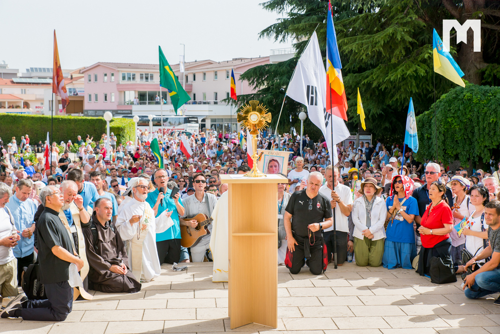 Sutra (25. lipnja) je 40. godišnjica Gospinih ukazanja u Međugorju. Svete mise na hrvatskom jeziku su u župnoj crkvi u 6, 7, 8, 9, 11 sati i središnja svečana sveta misa u 19 sati. Kao i svakog 25. u mjesecu, odmah nakon mise bit će zajedničko klanjanje Isusu u Presvetom Oltarskom Sakramentu, zatim se nastavlja u tišini do 7 ujutro.