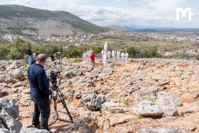 Kamenitom stazom kojom se prije gotovo 40 godina penjalo šestero vidioca kada im se prvi put ukazala Gospa, danas se na Podbrdo popela klapa ”Sveti Juraj” Hrvatske ratne mornarice kako bi snimili kadrove videospota za pjesmu ”Ostani s nama Kraljice Mira”. Pjesmu ”Ostani s nama Kraljice Mira” za koju je glazbu i tekst je napisao Franjo Kraljević, a vokalni aranžman Mario Božić snimili su nedavno, a naći će se na novom CD-u kojeg će povodom 40. obljetnice Gospina ukazanja u Međugorju izdati Informativni centar Mir Međugorje.